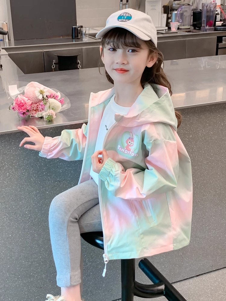 Детская куртка для девочек весна 2025, новый стиль, весенне-осенняя куртка с капюшоном, мультяшный дизайн