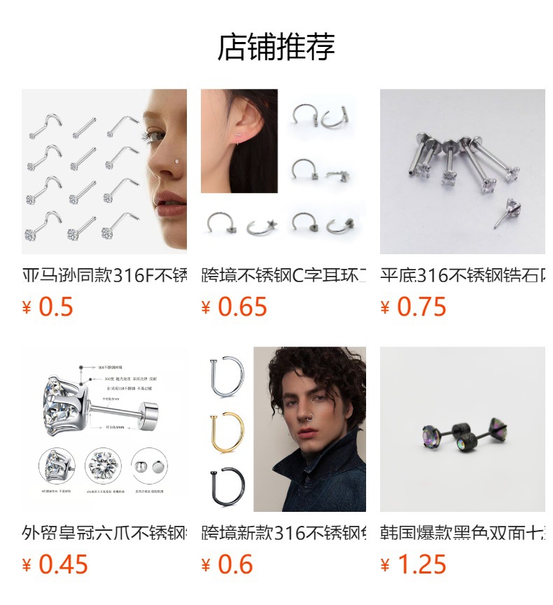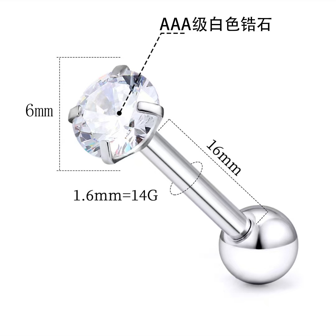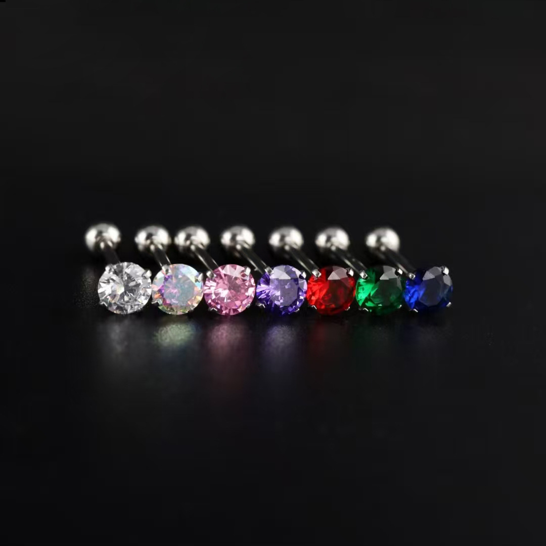 Трансграничная нержавеющая сталь с четырьмя когтями циркон язычные гвозди титановая сталь противоаллергические ушные гвозди женские пирсинг ювелирные изделия прямые продажи