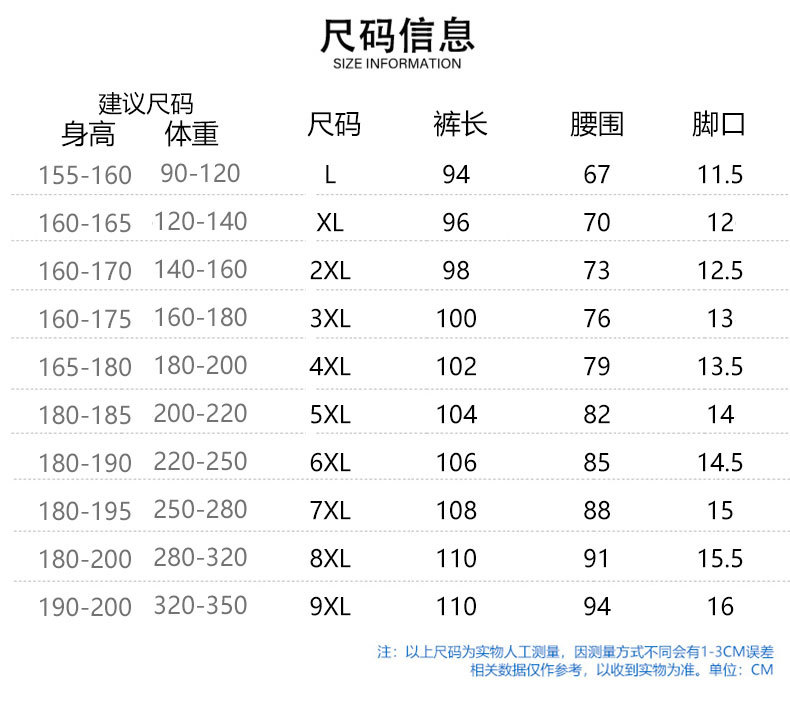 L; XL; 2XL; 3XL; 4XL; 5XL; 6XL; 7XL; 8XXL; 9XL