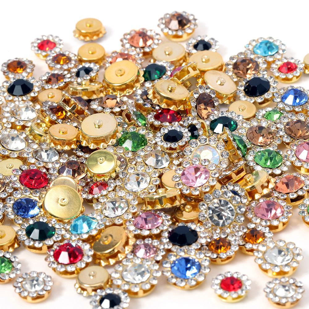 Двухслойный цветок стразы подсолнух цветочный цветок пряжка diy бант ручной работы ювелирные аксессуары для волос оптом