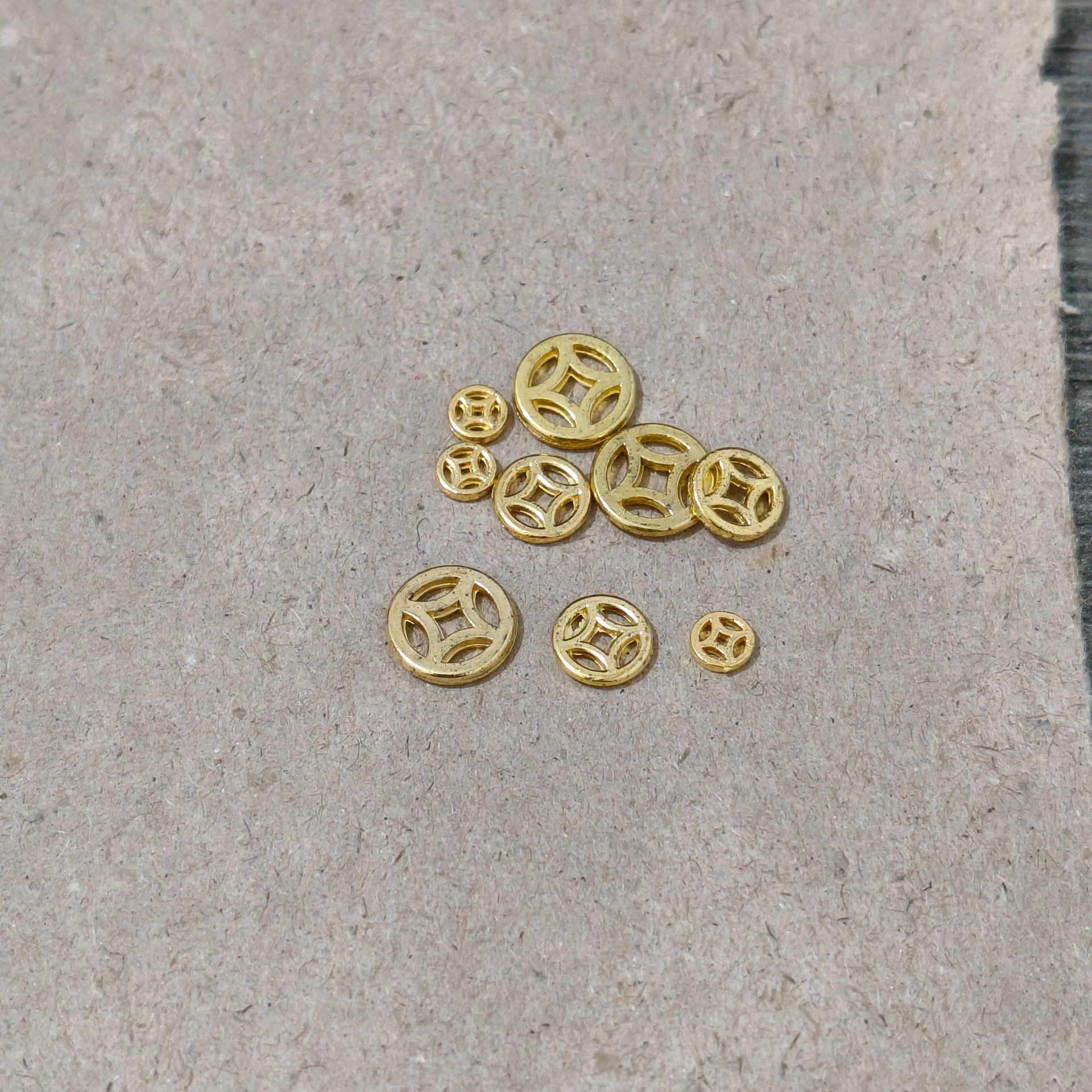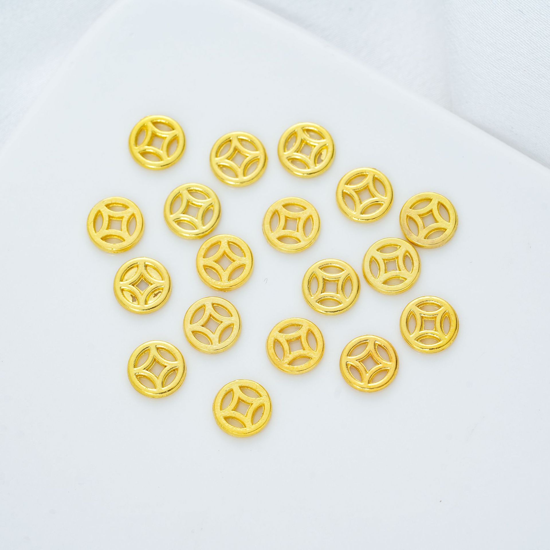 5 мм, толщина 1,2 мм [вес около 0,08 г] глянцевая полая медная монета-разделитель; 7 мм, толщина 1,3 мм [вес около 0,20 г] глянцевая полая медная монета-разделитель; 9 мм, толщина 1,4 мм [вес около 0,39 г] глянцевая полая медная монета-разделитель; Проставка для медной монеты диаметром 6 мм; 8 мм, толщина 1,4 мм [вес около 0,35 г] резиновая прокладка для медных монет с рисунком