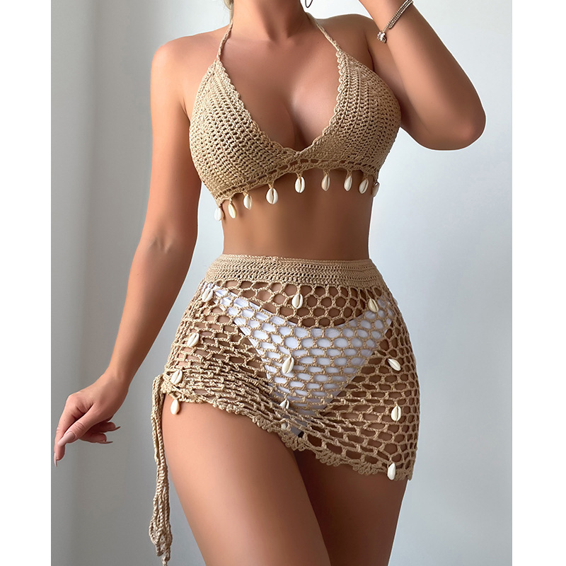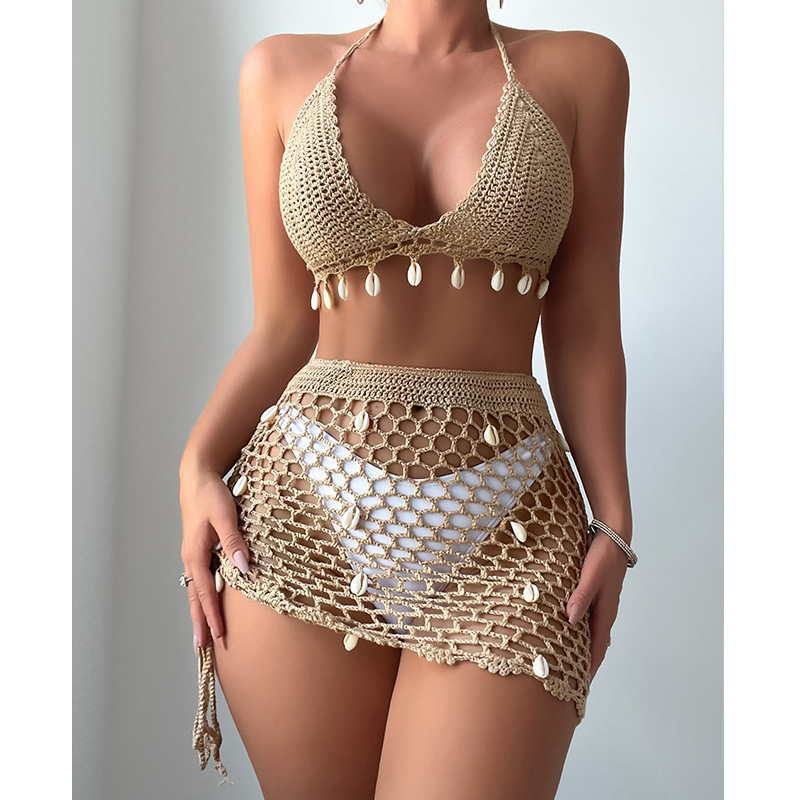 Европейский и американский пляжный крючок ракушки с полой сексуальной шеей с ремешком на пляжном купальнике бикини
