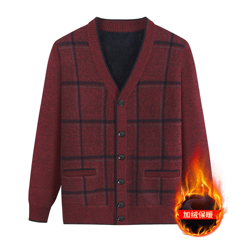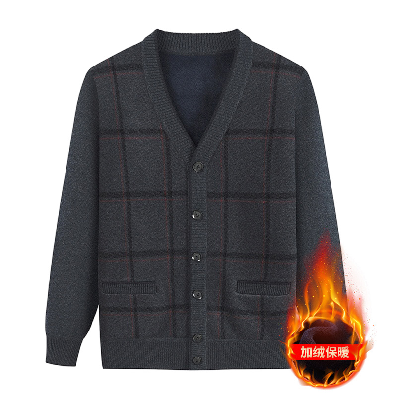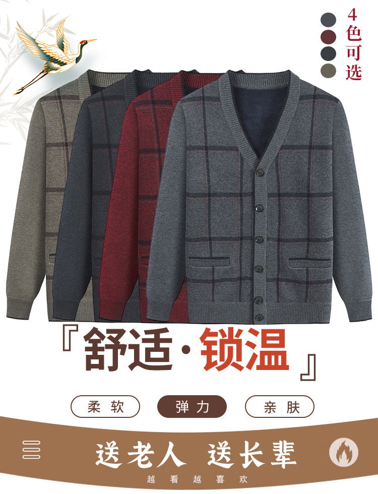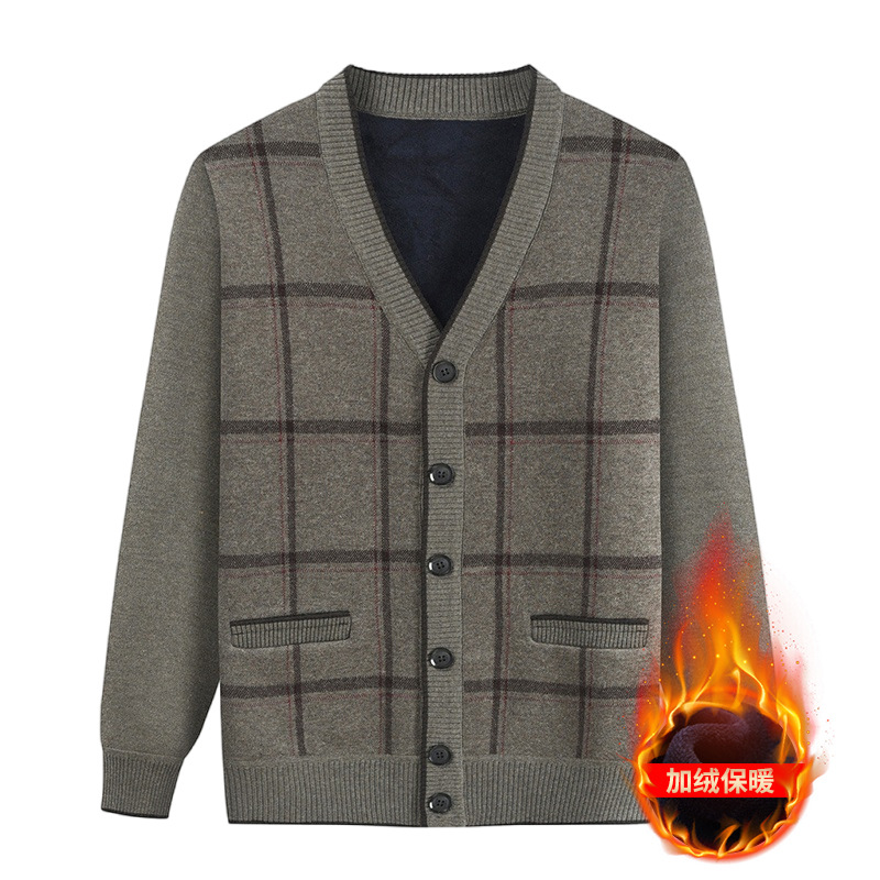 Распродажа: Кардиган для папы, вязаная куртка на флисовой подкладке для мужчин среднего и старшего возраста, теплая осенне-зимняя кофта для дедушки.