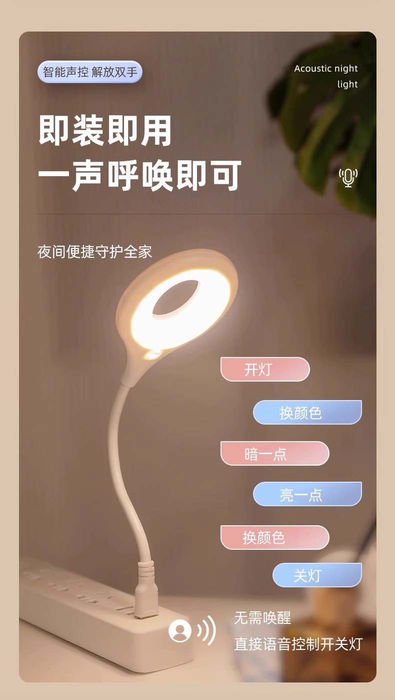 Умный универсальный голос usb голосовой свет ночник индукционный маленький настольная лампа светодиодное кормление для защиты глаз
