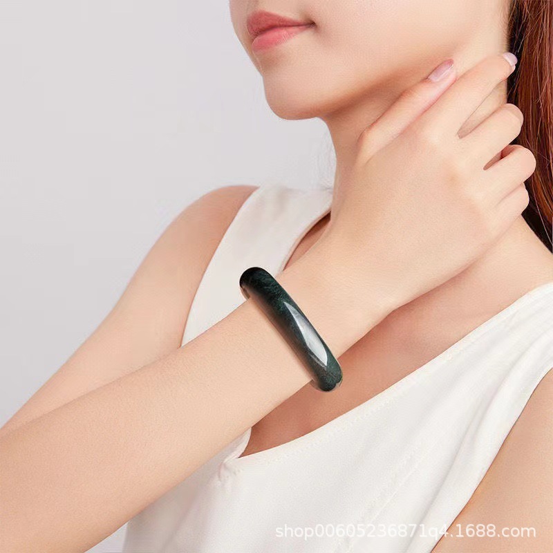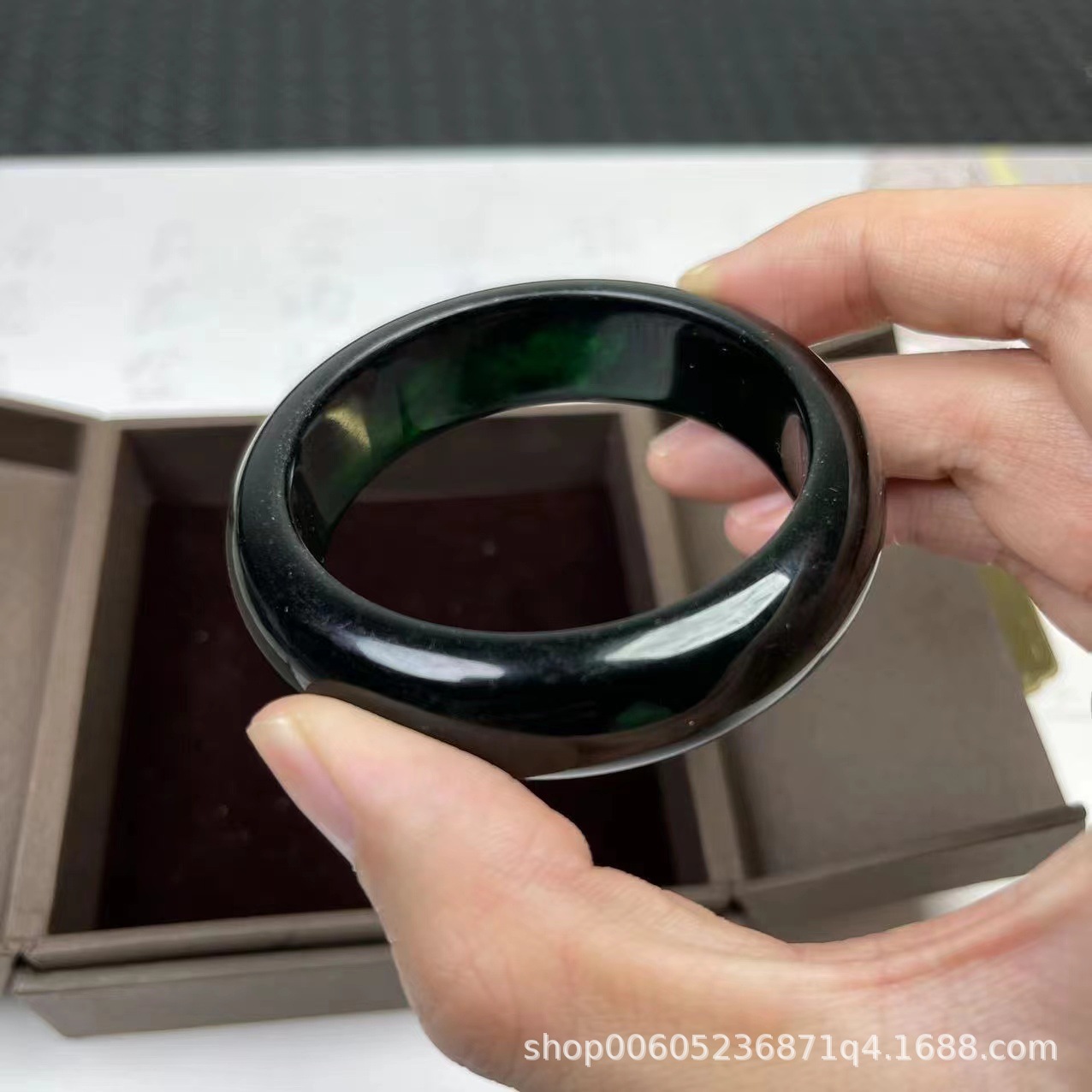 厂家批发仿缅甸墨翠手镯翡翠手镯打灯发绿玛瑙手镯石英岩手镯批发