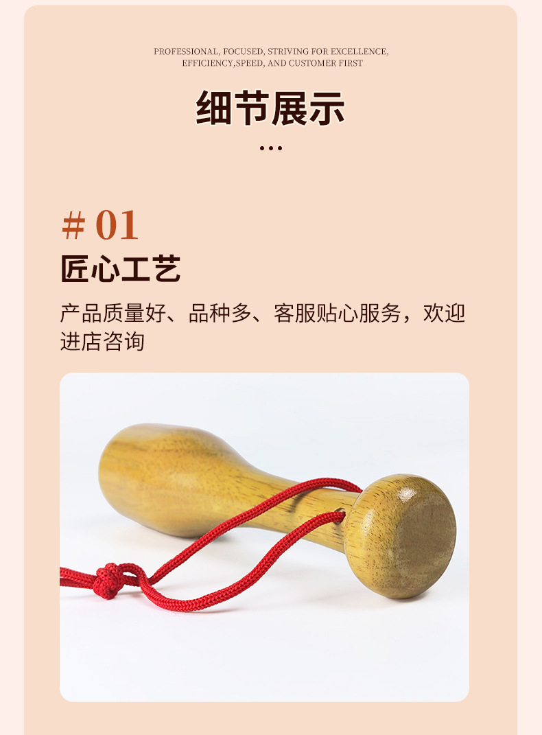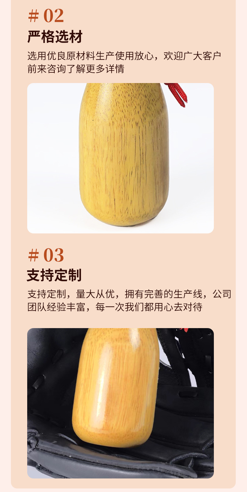 Изготовлен из дерева, диаметр большой головки составляет 63,5 см, вес 220 ~ 300 г, поставляется с красной веревкой, 48 штук в коробке.