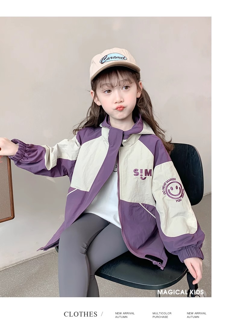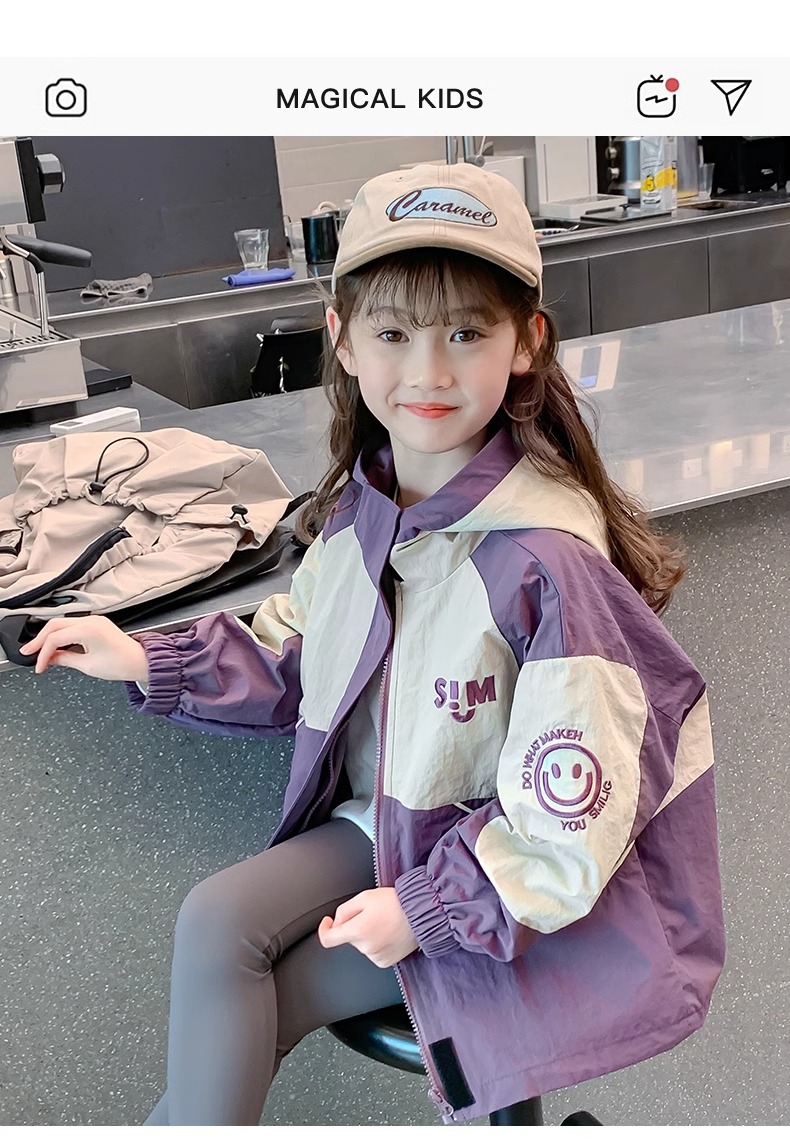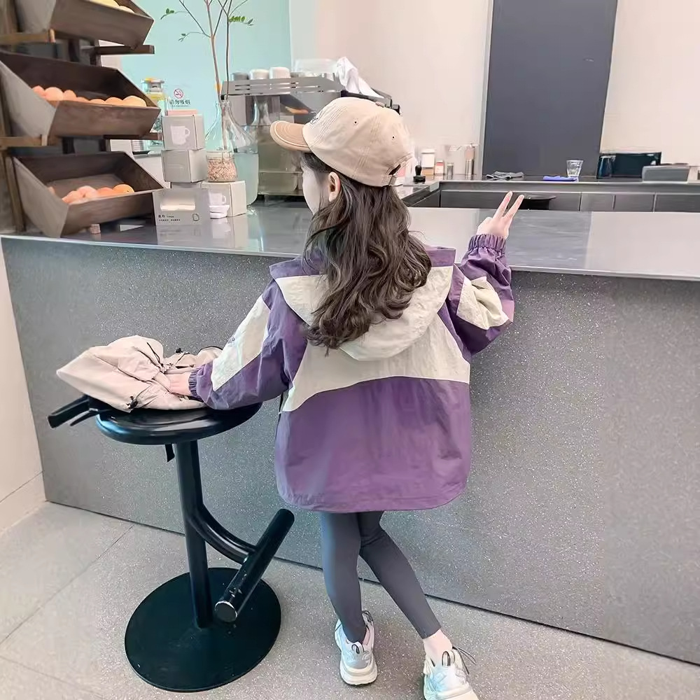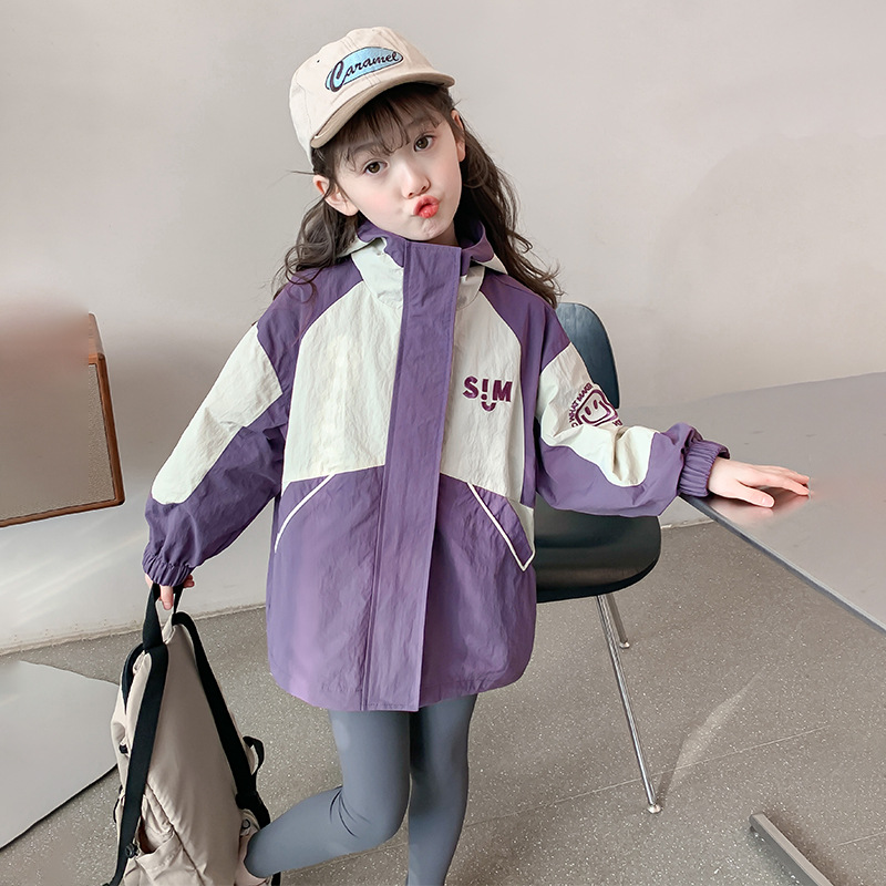 Куртка для девочек весна и осень 2024 новый стиль иностранная детская весенняя одежда спортивная одежда маленькая девочка весенний топ
