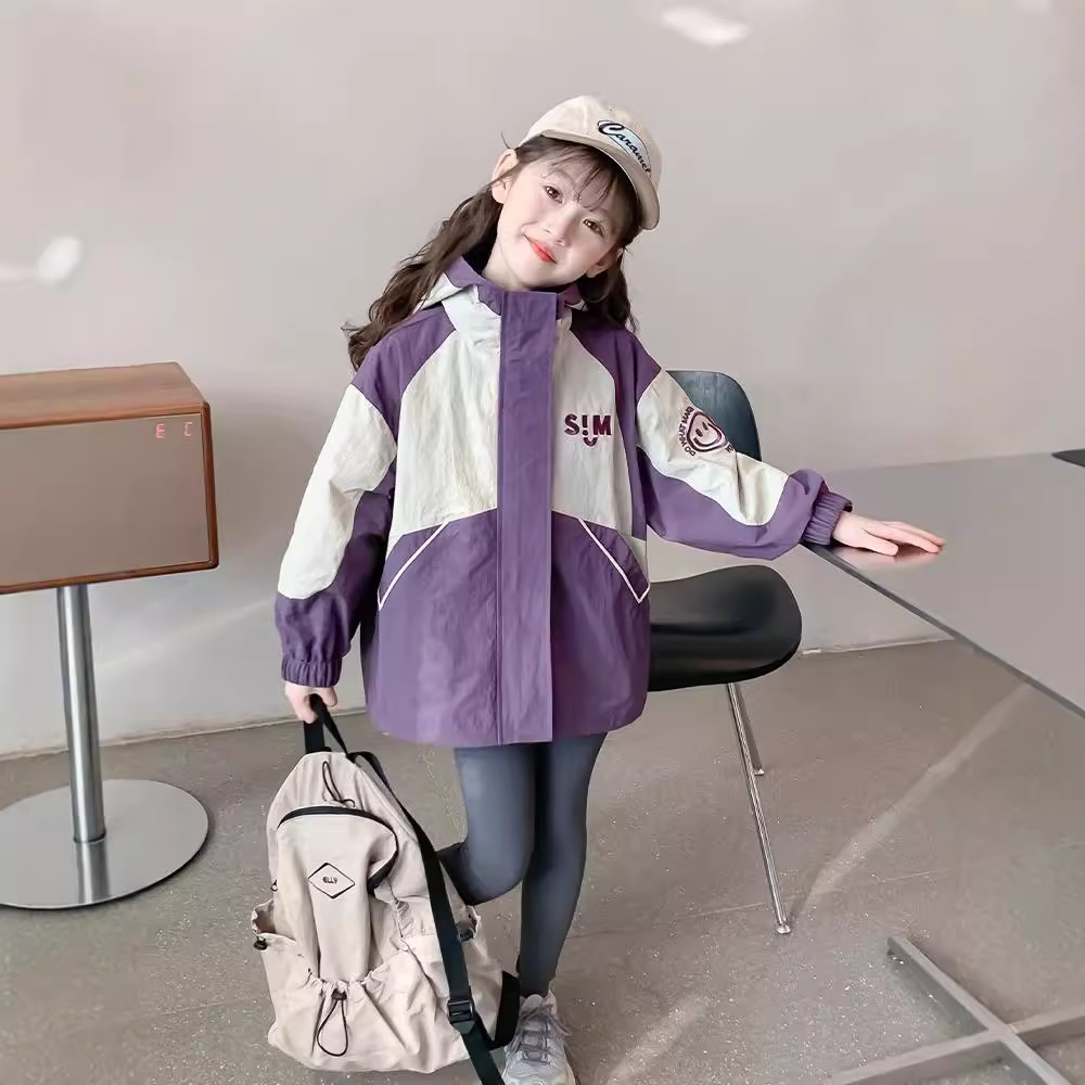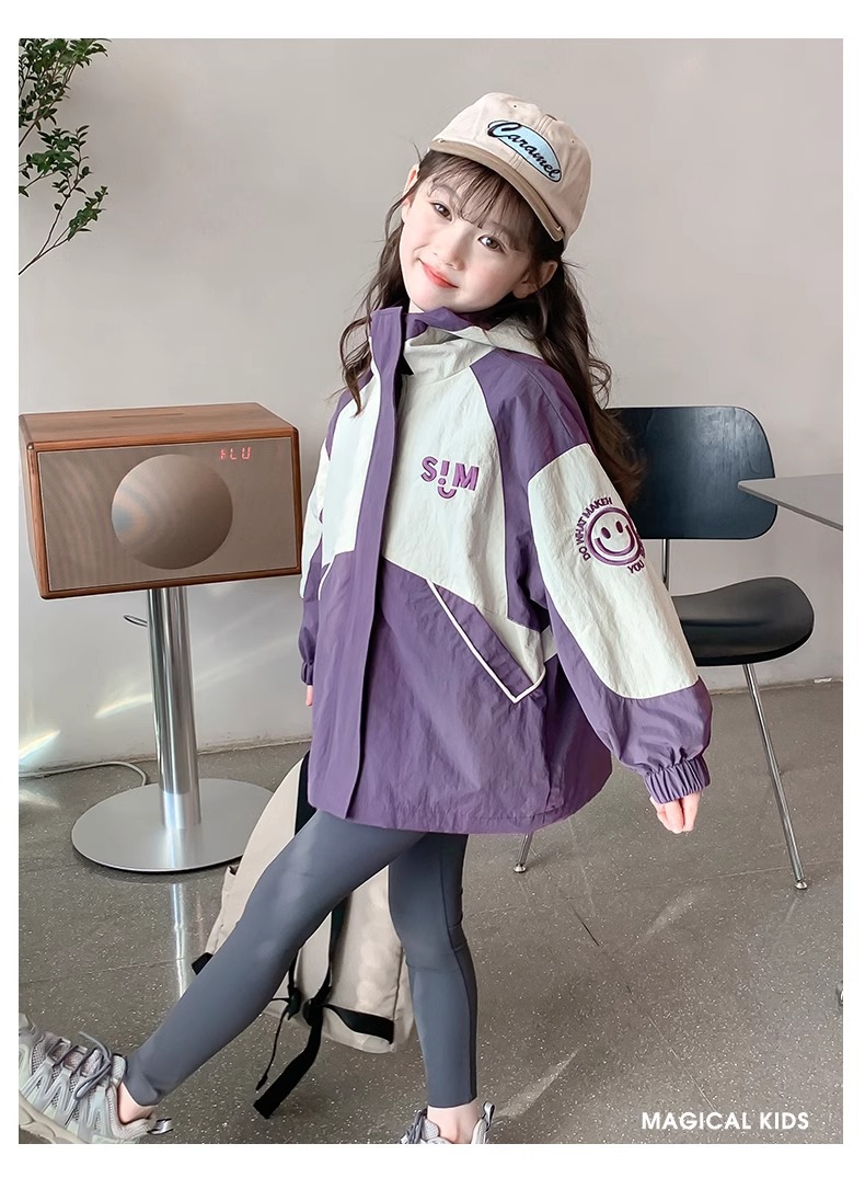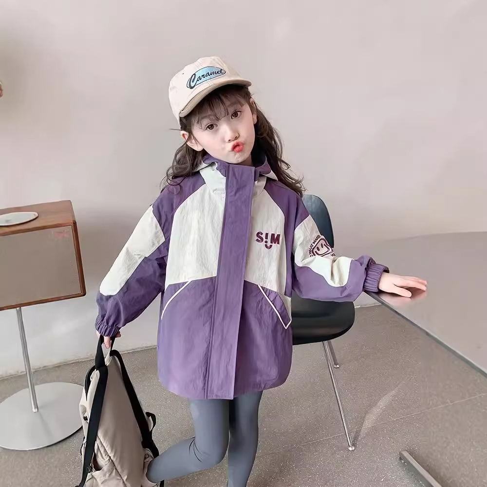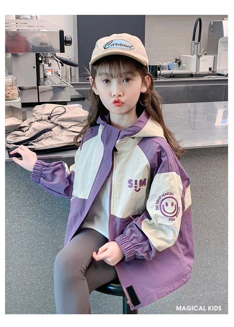 Куртка для девочек весна и осень 2024 новый стиль иностранная детская весенняя одежда спортивная одежда маленькая девочка весенний топ