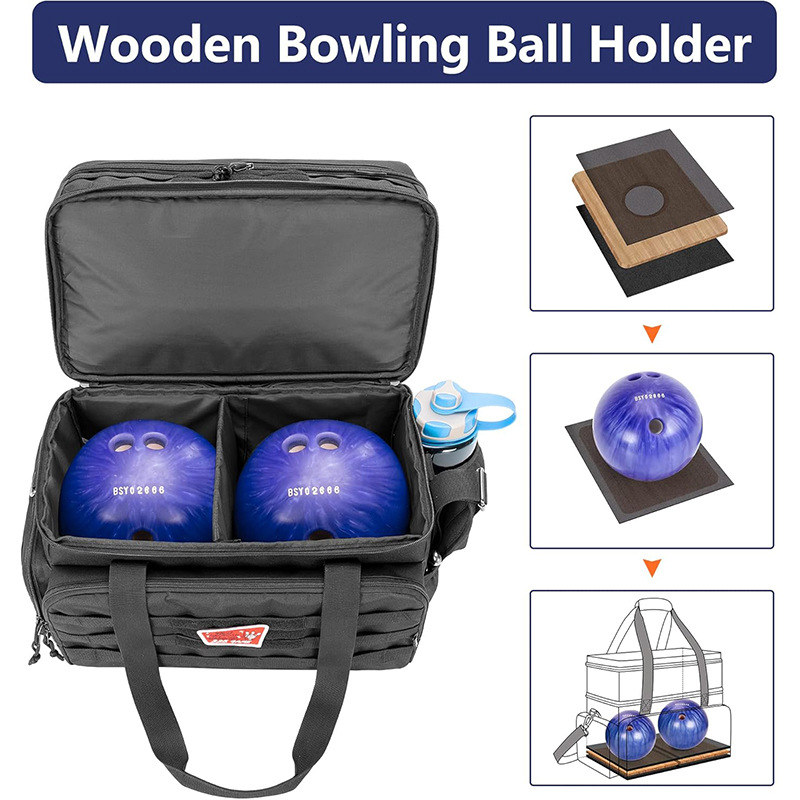 Сумка для боулинга на 2 шара с деревянным держателем для шаров, мягкая сумка для переноски боулинга с разделителем