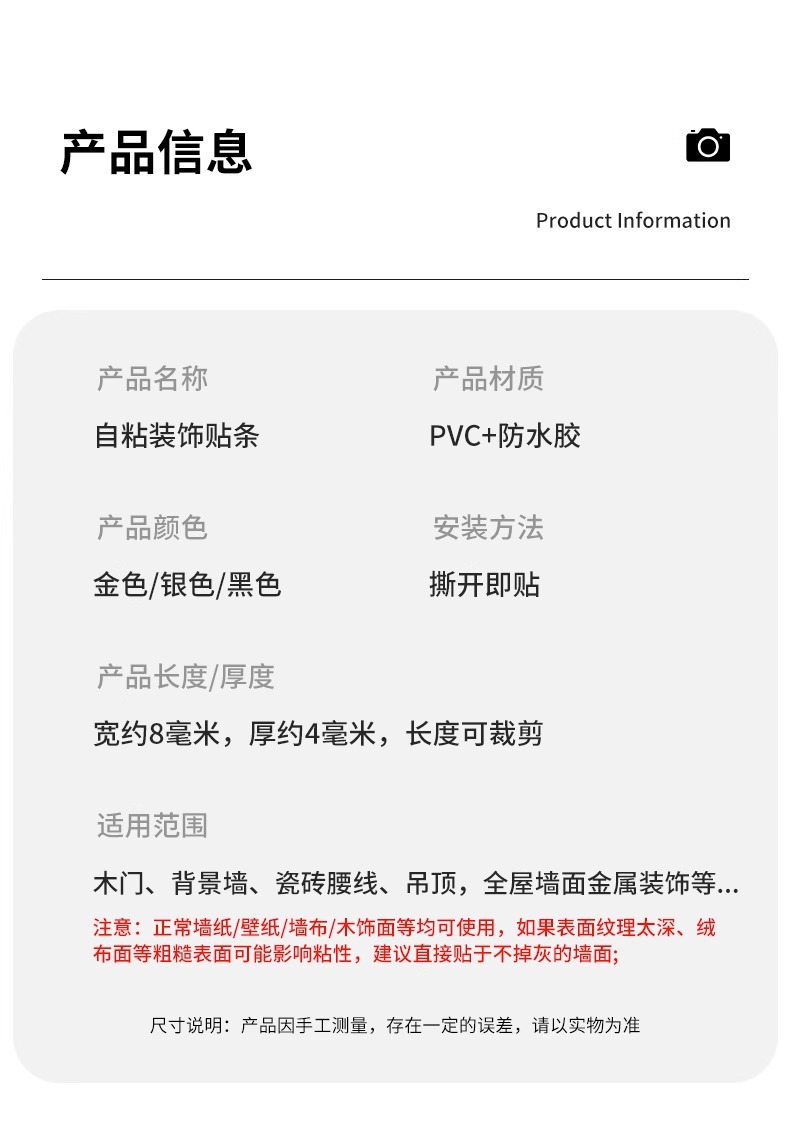 Яркая серебряная самоклеящаяся декоративная полоска [длина 1 метр, ширина 8 мм]; Ярко-черная самоклеящаяся декоративная полоска [длина 1 метр, ширина 8 мм]; Ярко-золотая самоклеящаяся декоративная полоска [длина 1 метр, ширина 8 мм]
