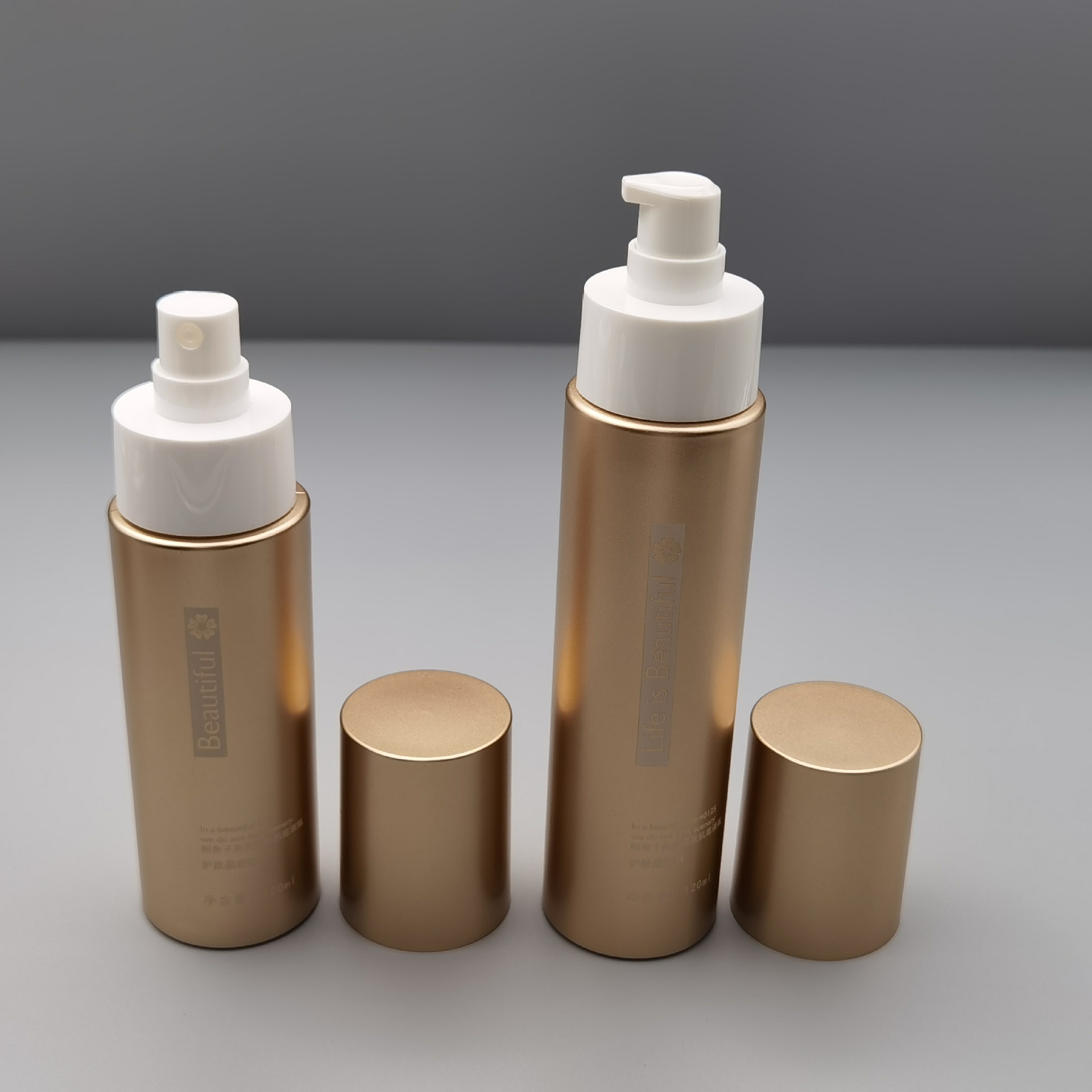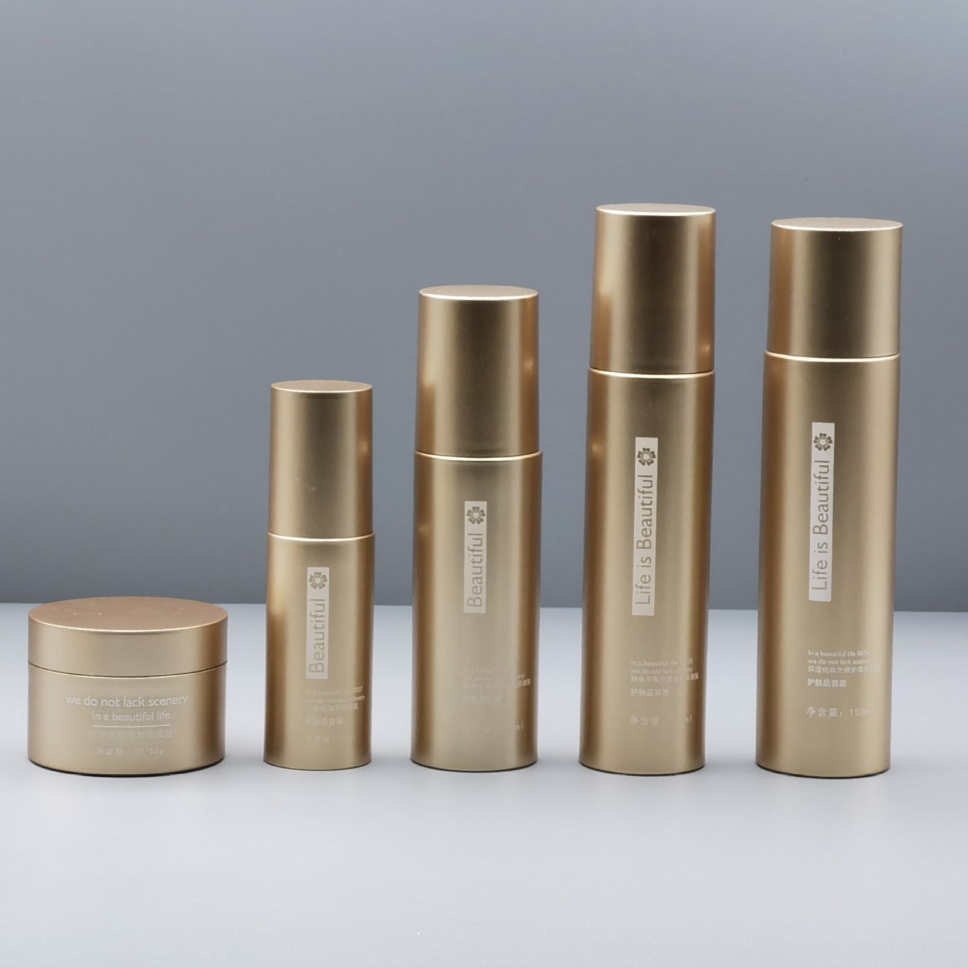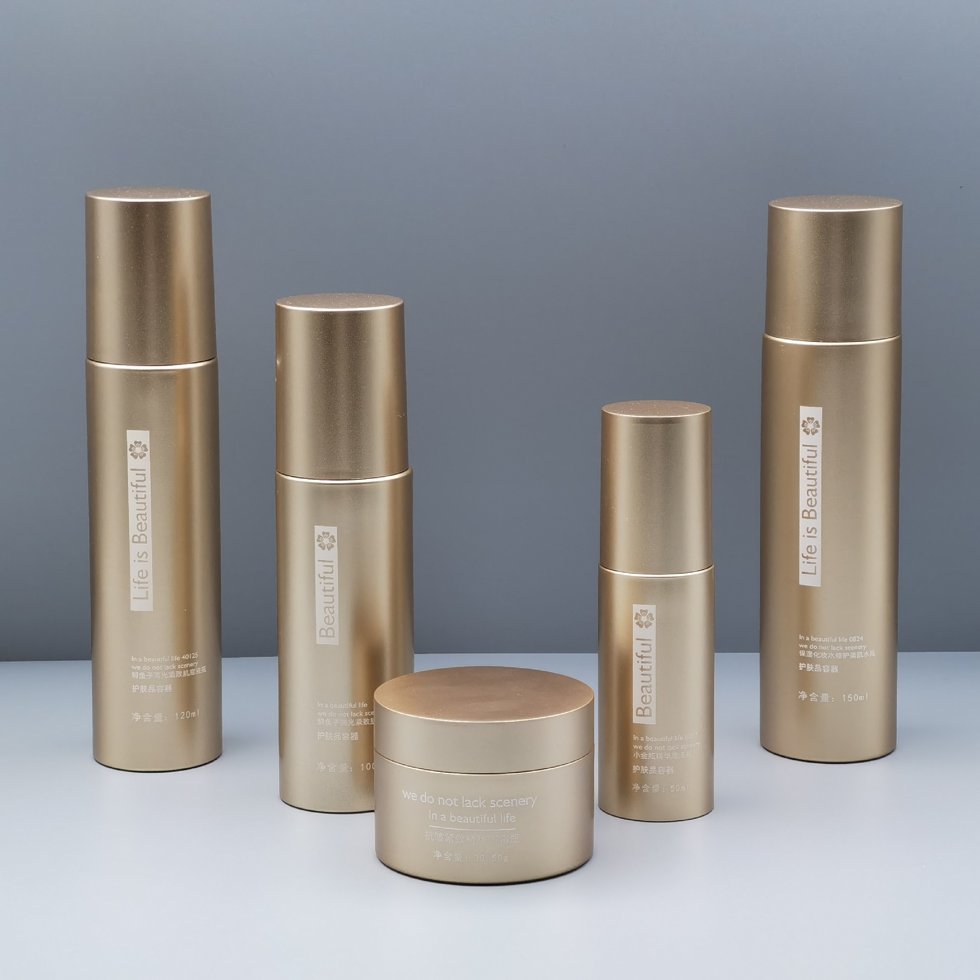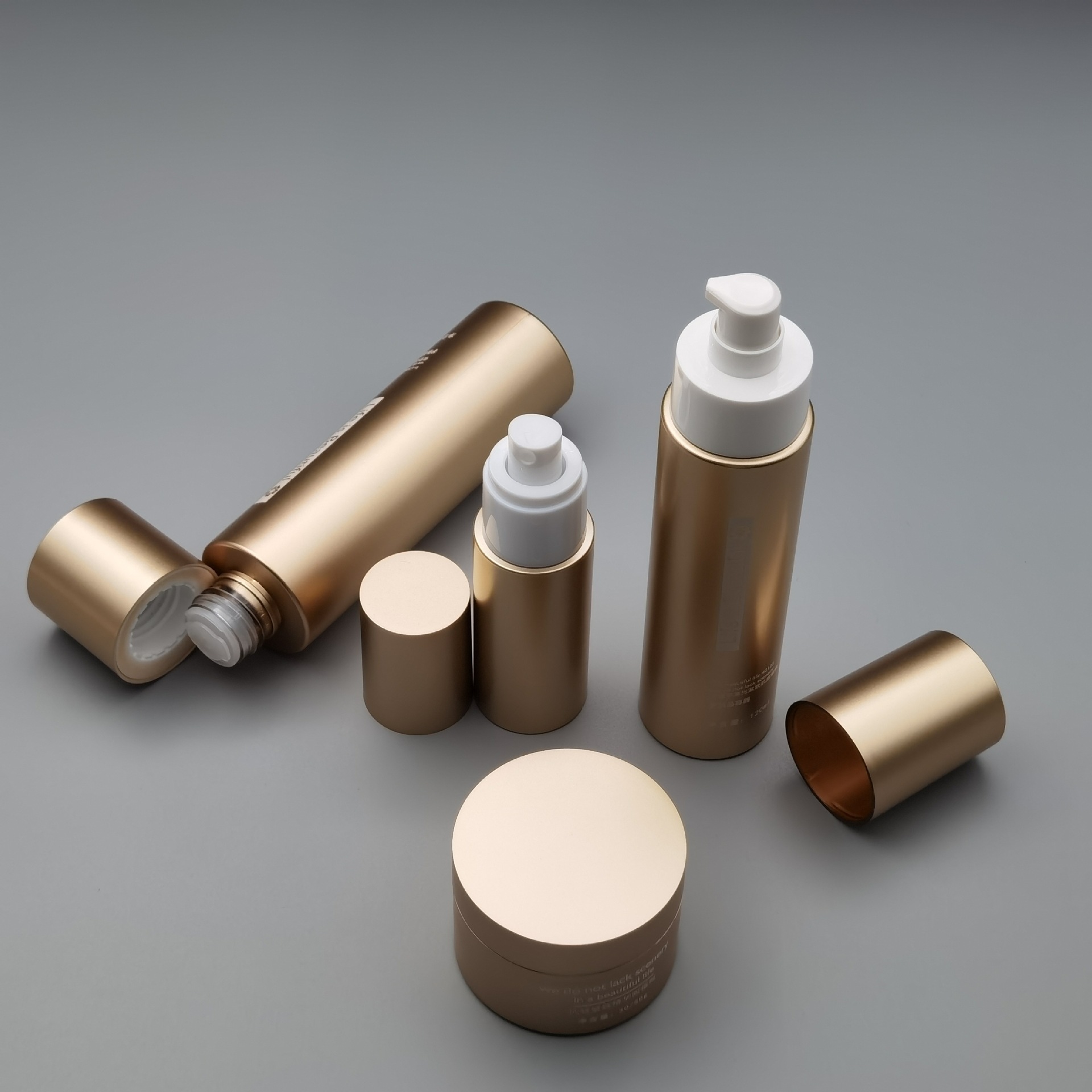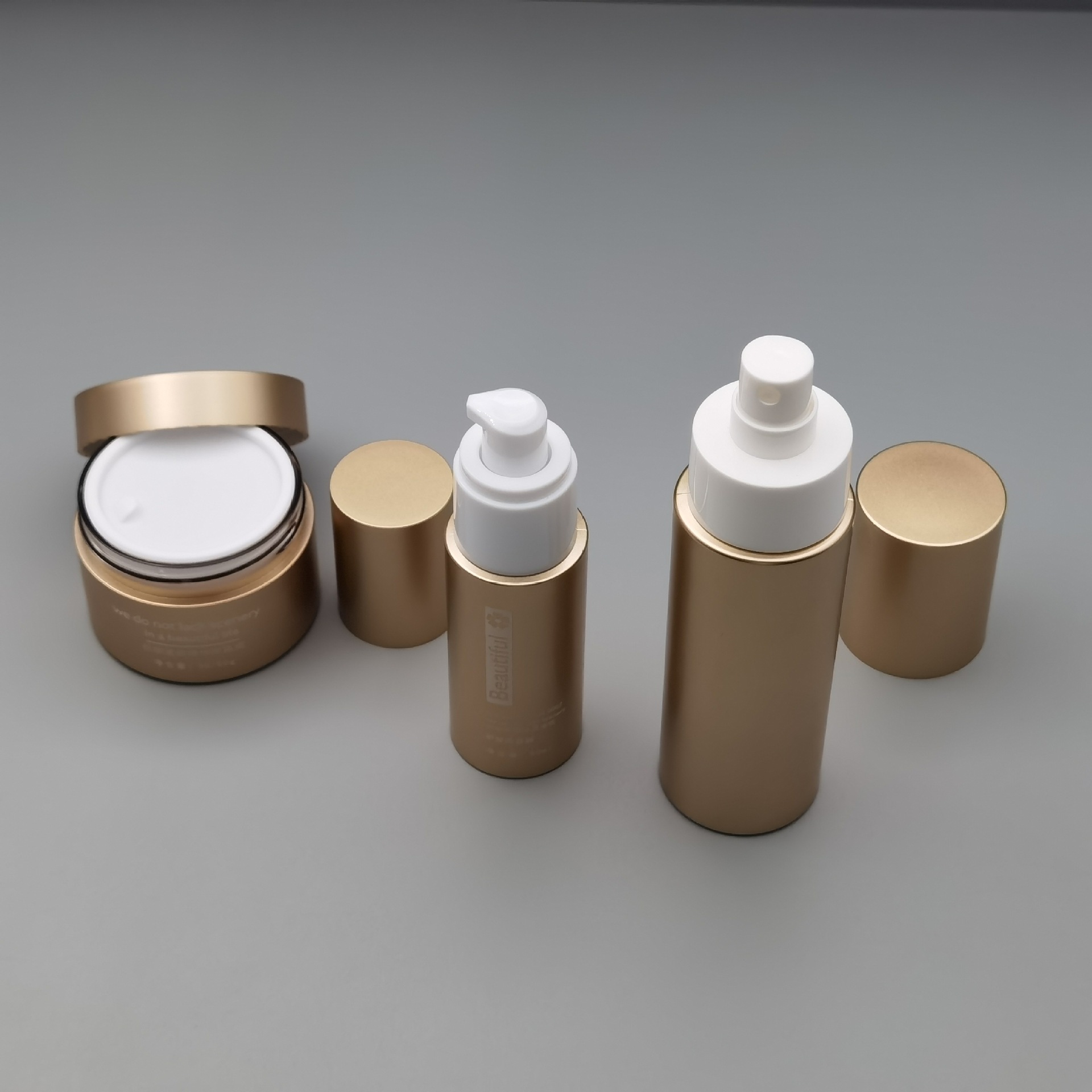 Набор флаконов для крема для лица из ПЭТ-пластика с золотым напылением, 50 мл, 100 мл, 120 мл