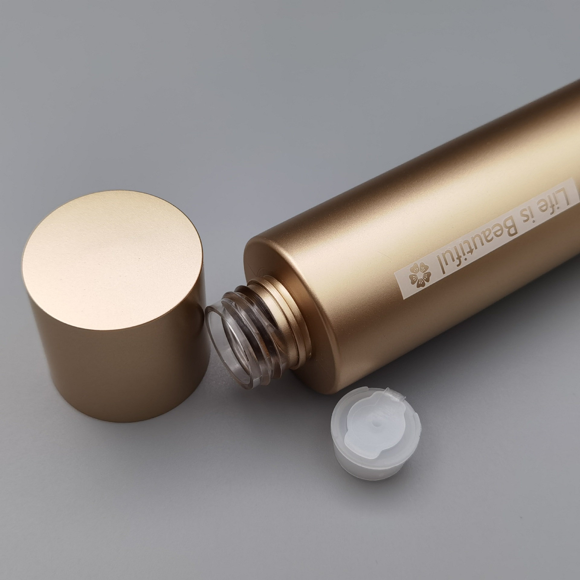 Небольшая золотая бутылочка для ухода за кожей:
