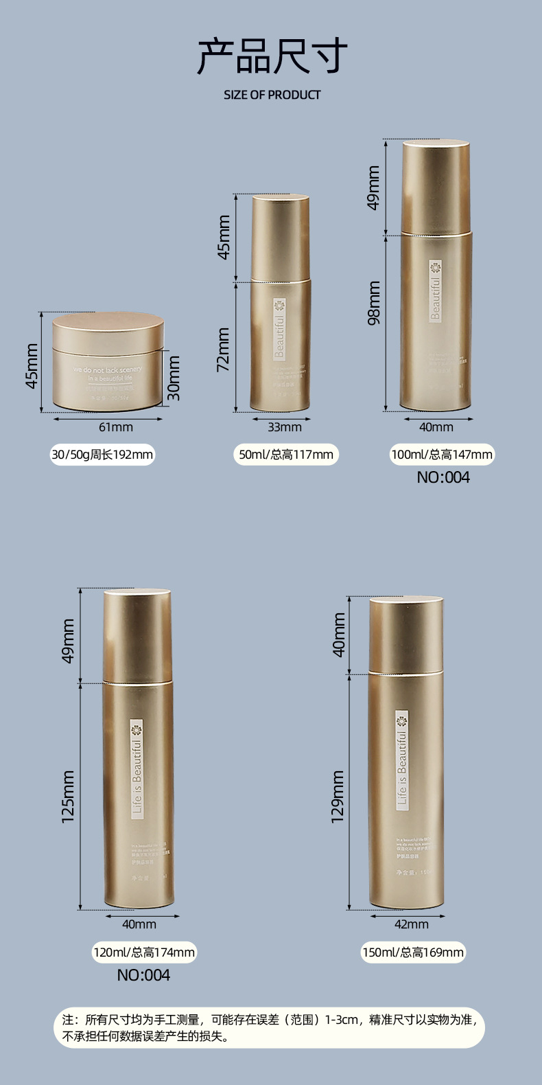 30G/50G; 50ML; 100ML; 120ML; 150ML