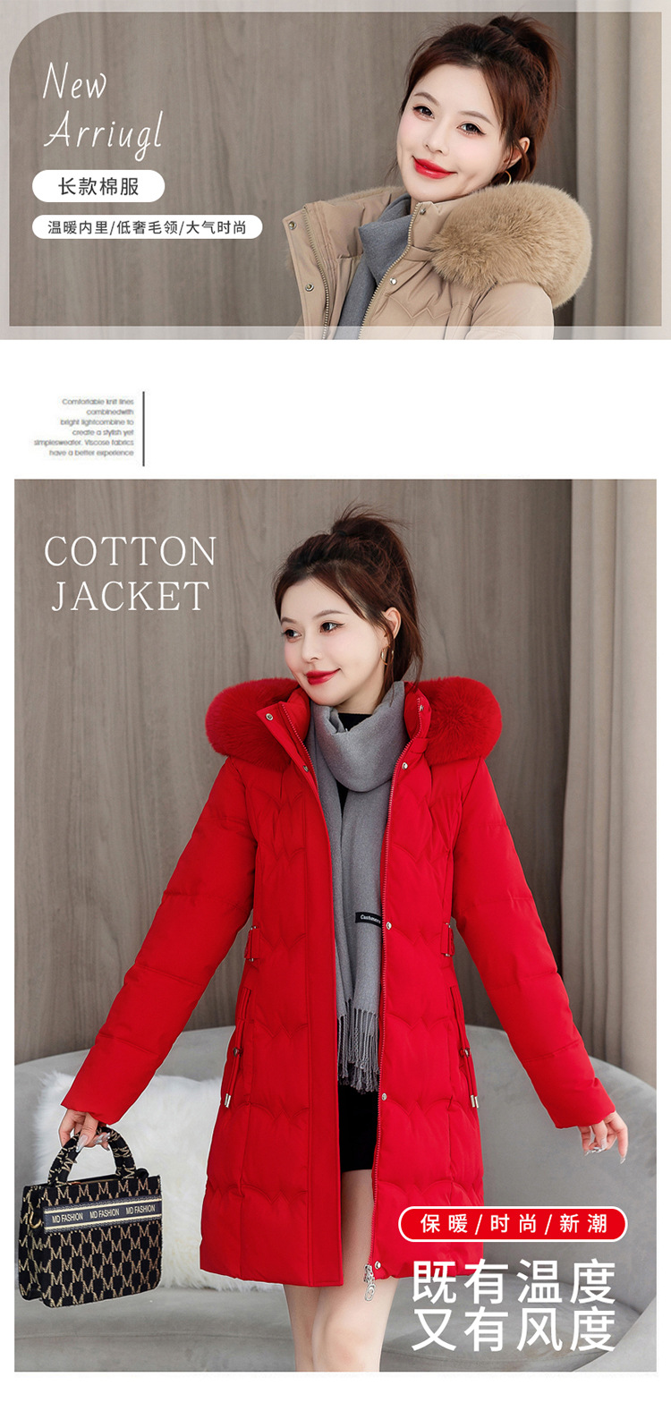 Большой шерстяной воротник новый хлопчатобумажный куртка 2024 зимняя куртка с капюшоном