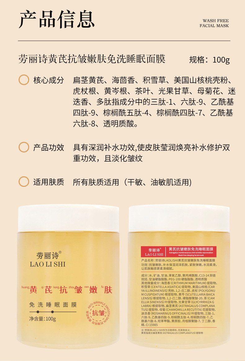 Лао Лиши Астрагал против морщин омолаживает кожу Омойная маска для сна