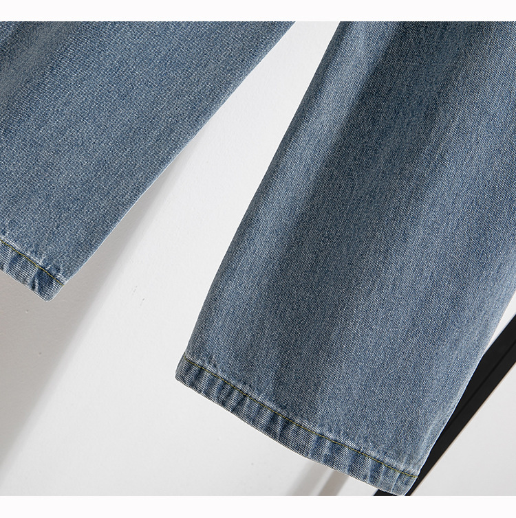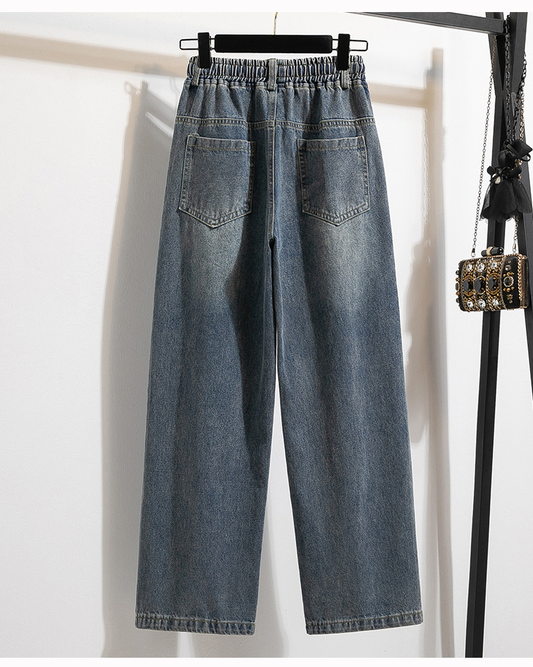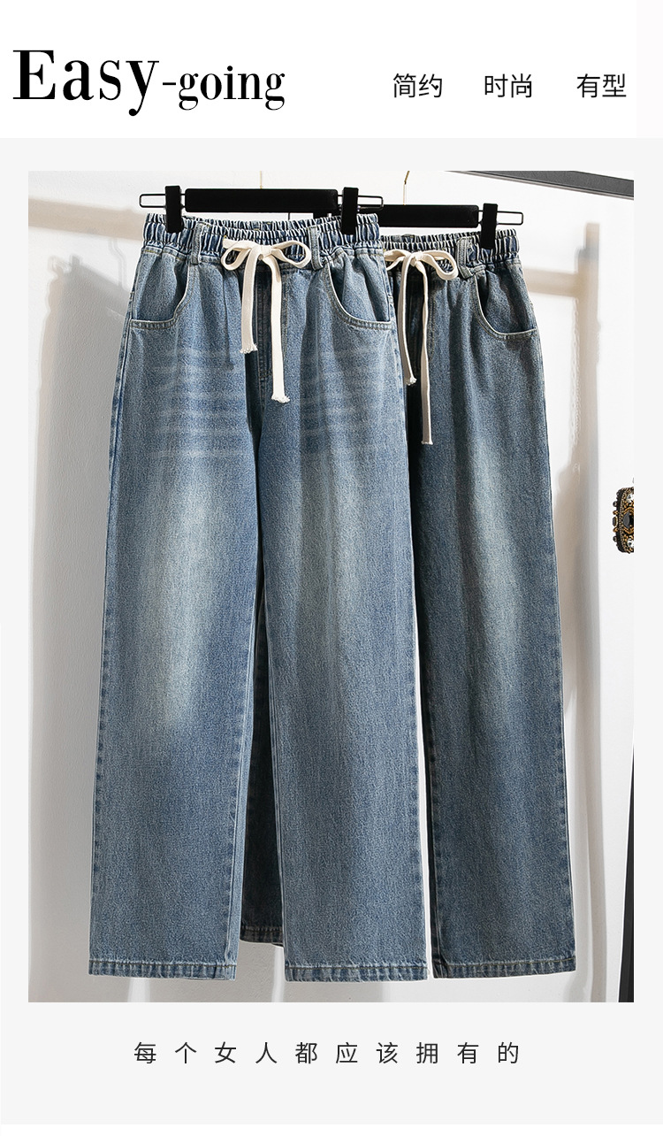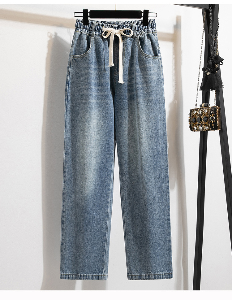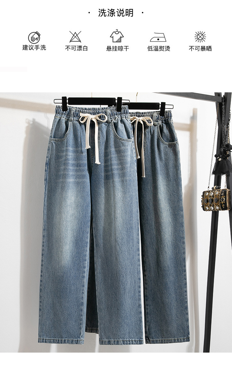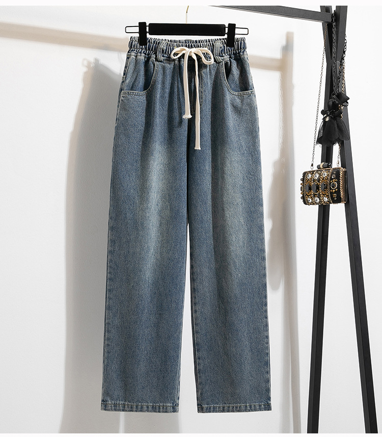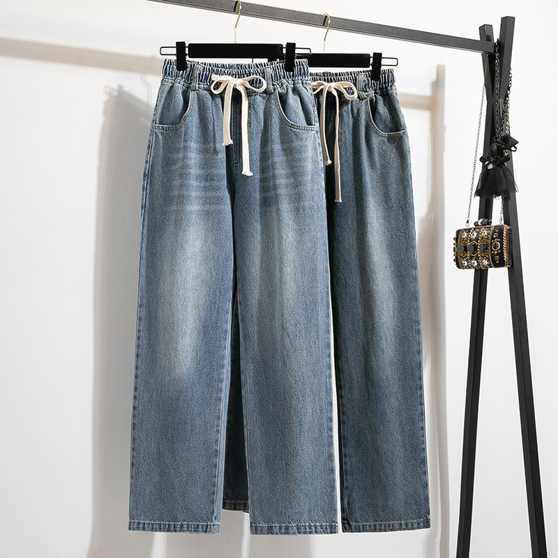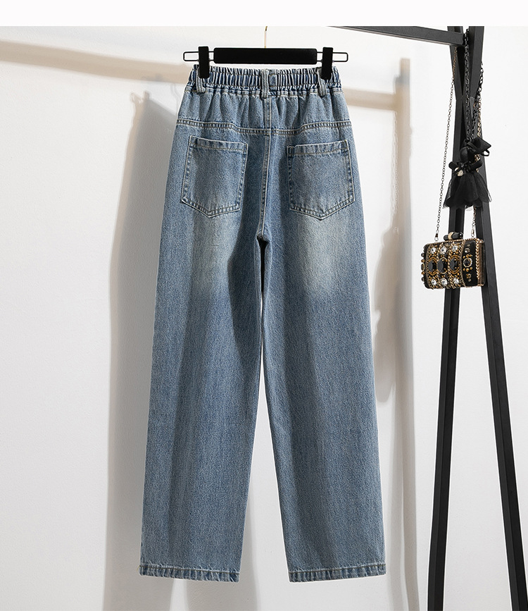 Легкий выстрел с жесткой талией джинсовые хлопчатобумажные брюки женские осенние новые большие размеры с высокой талией и прямой трубкой свободные широкие брюки