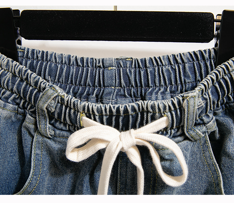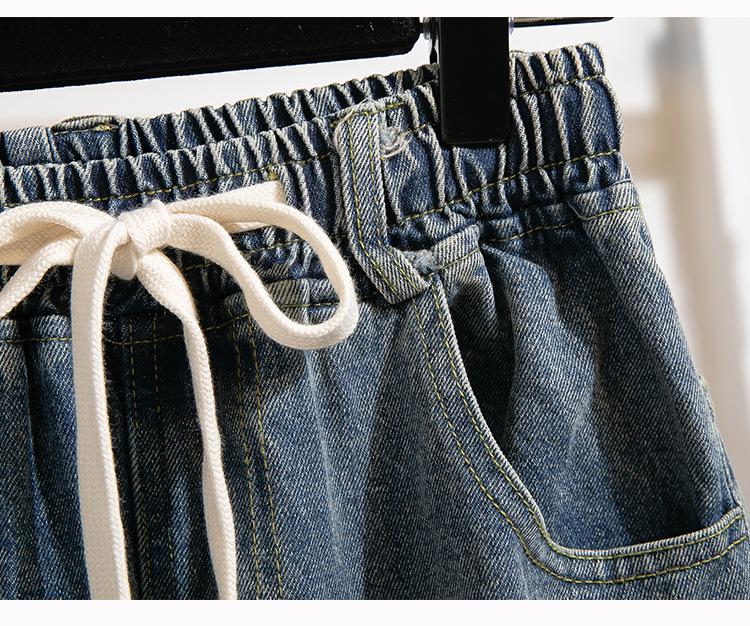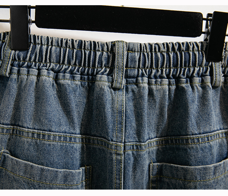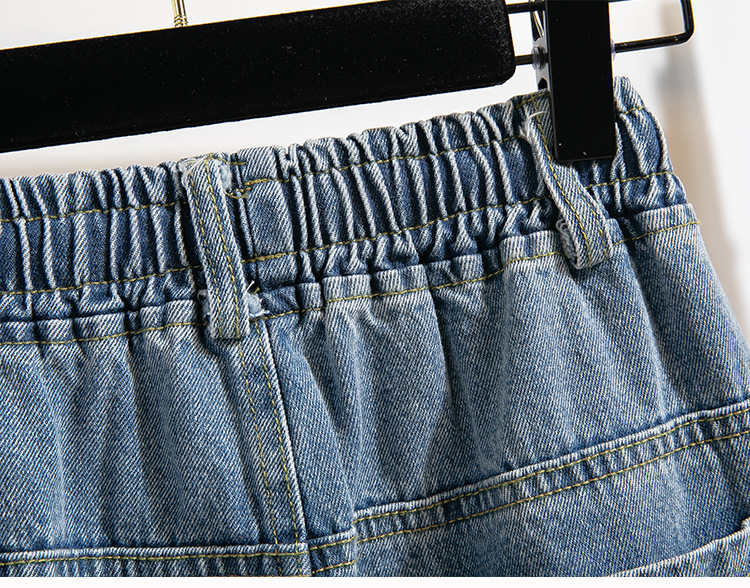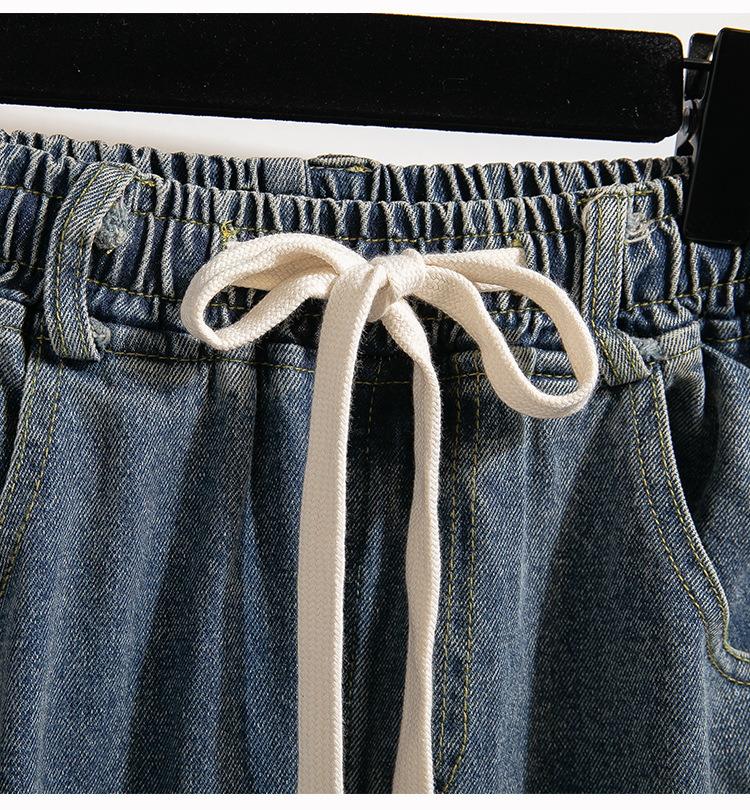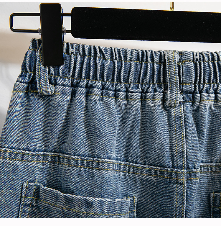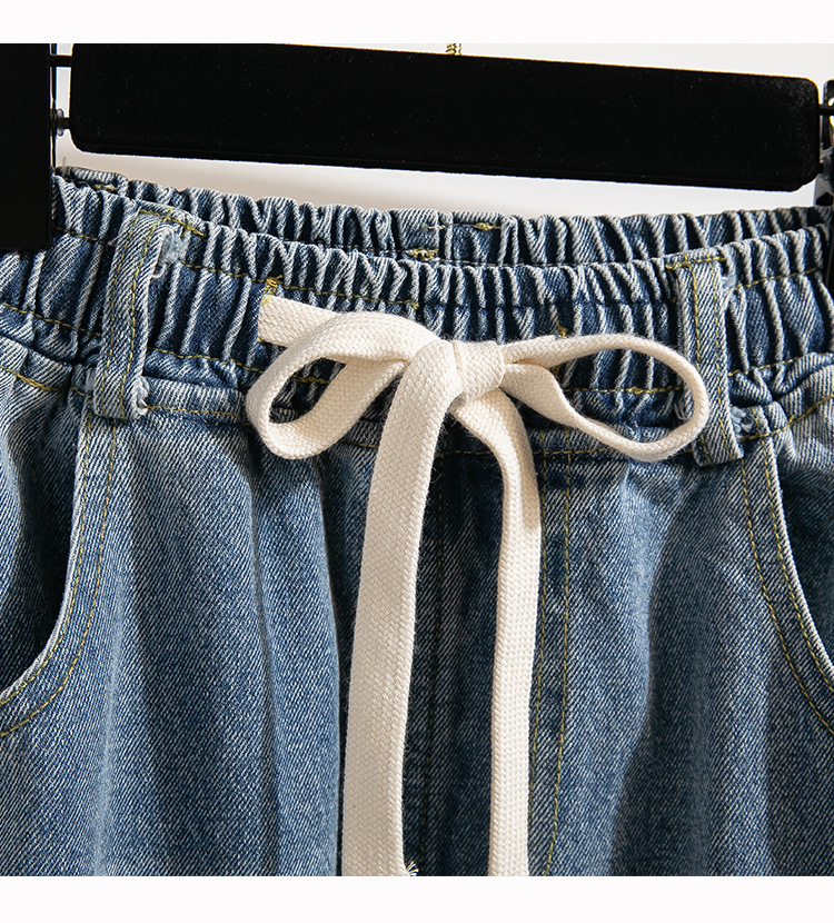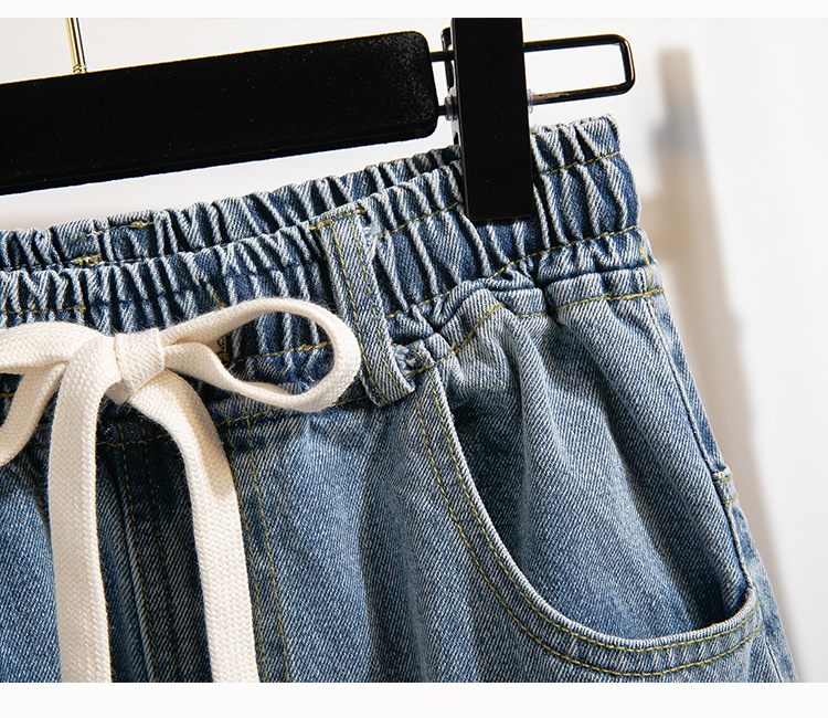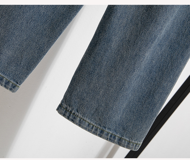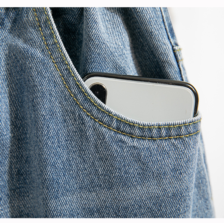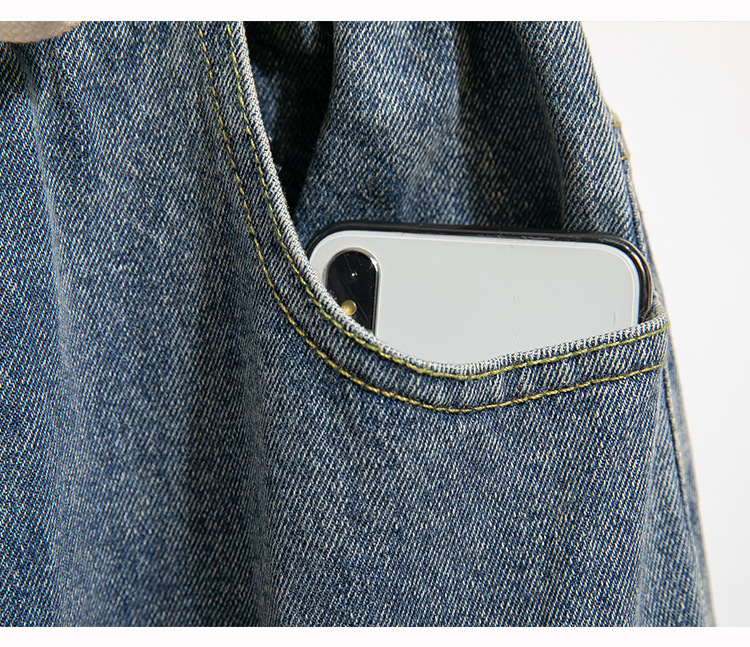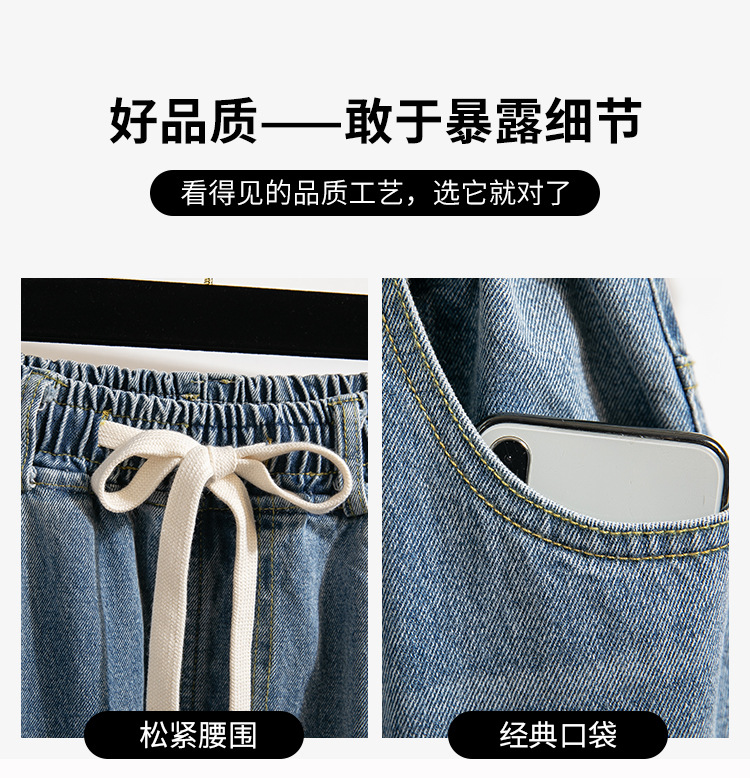 Легкий выстрел с жесткой талией джинсовые хлопчатобумажные брюки женские осенние новые большие размеры с высокой талией и прямой трубкой свободные широкие брюки