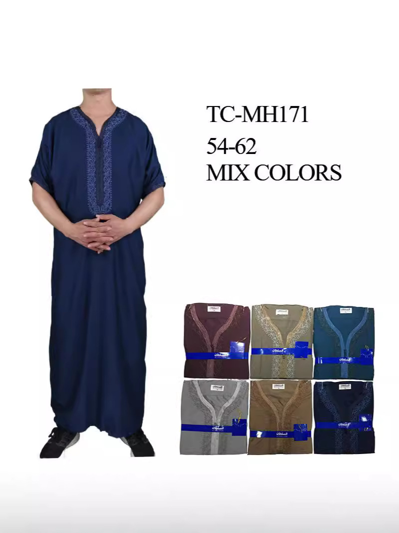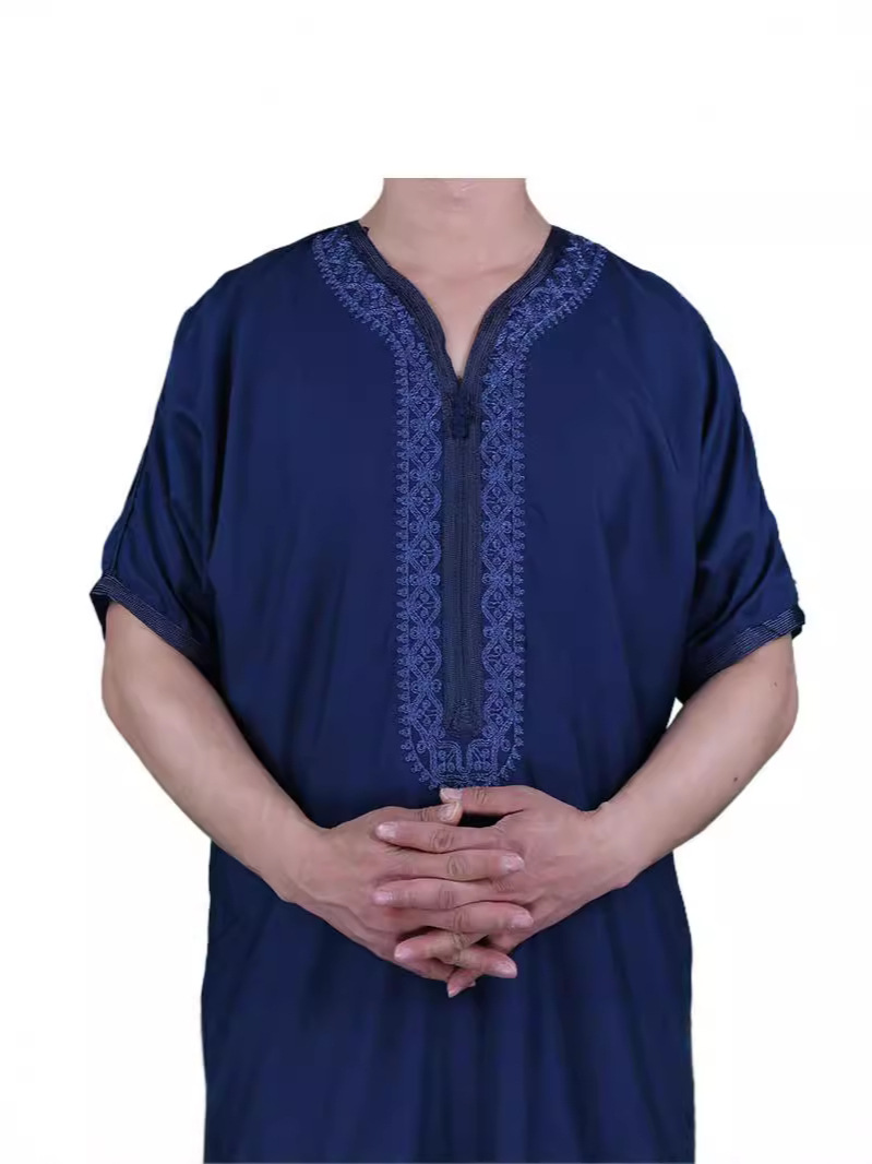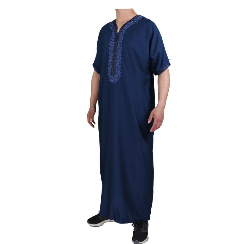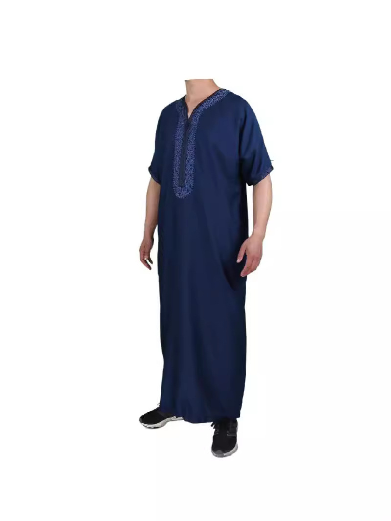 Высококачественный халат из смесового хлопка и льна с изысканной вышивкой, короткий рукав, из арабской серии, популярен за границей и можно носить на выход.