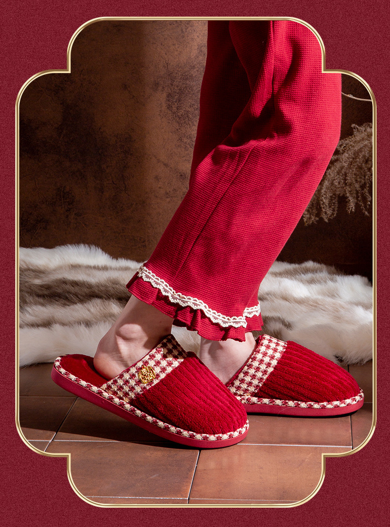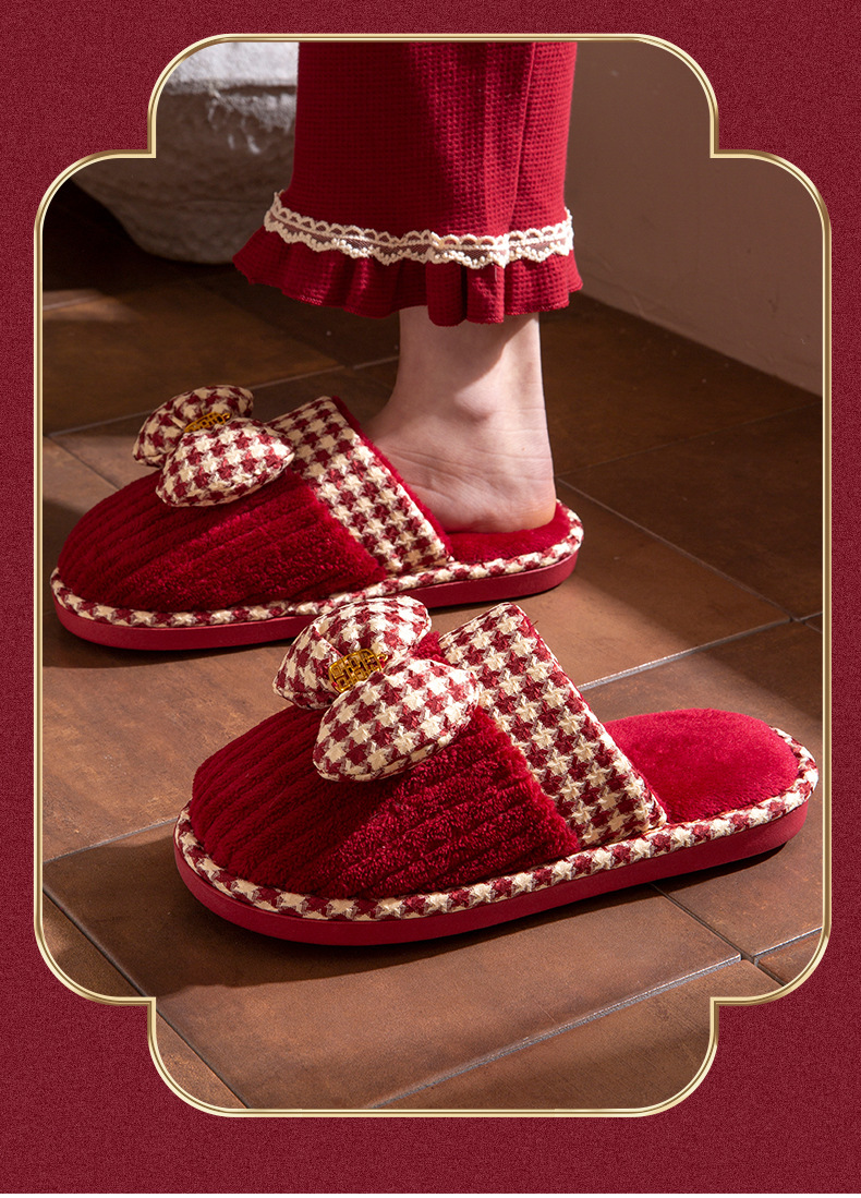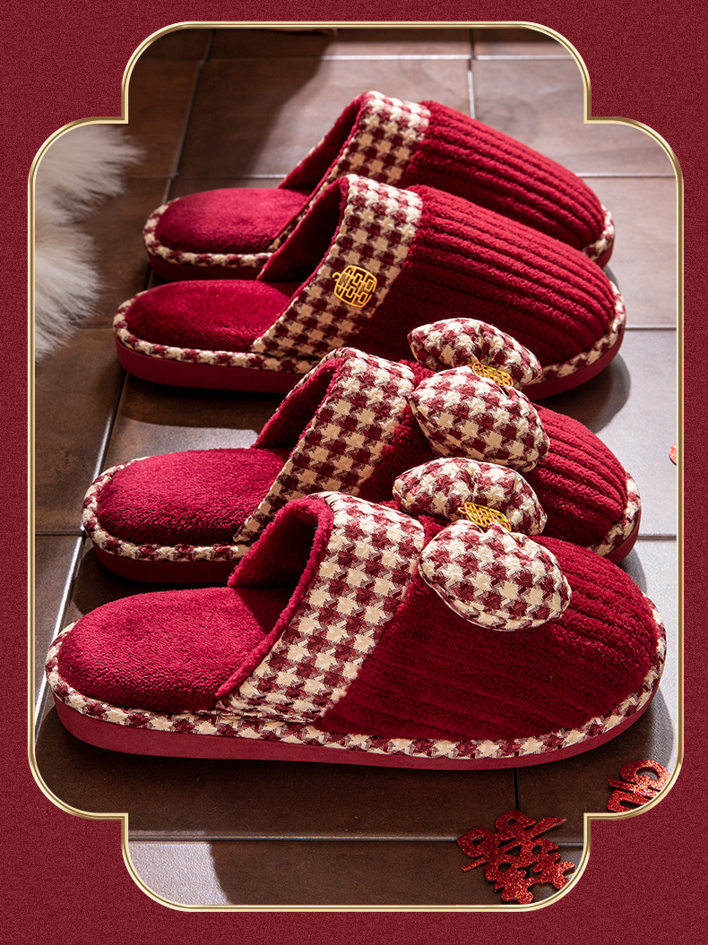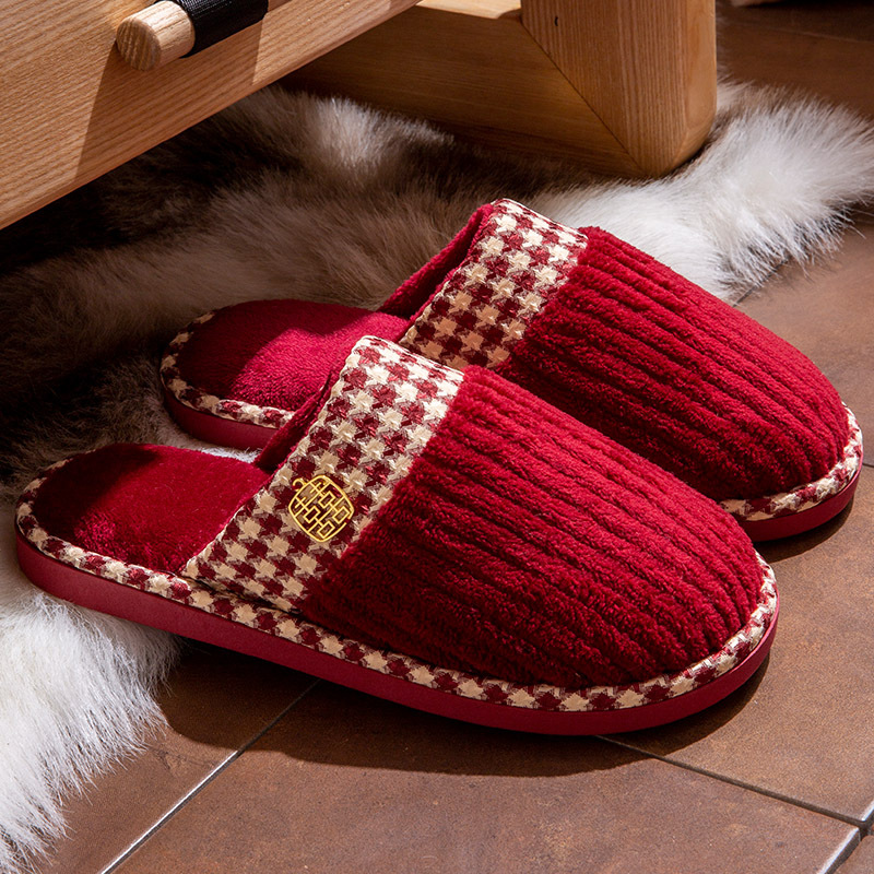 Свадебные тапочки праздничный красный пара 2024 новый зимний дом для приданого свадебной пары хлопчатобумажные тапочки