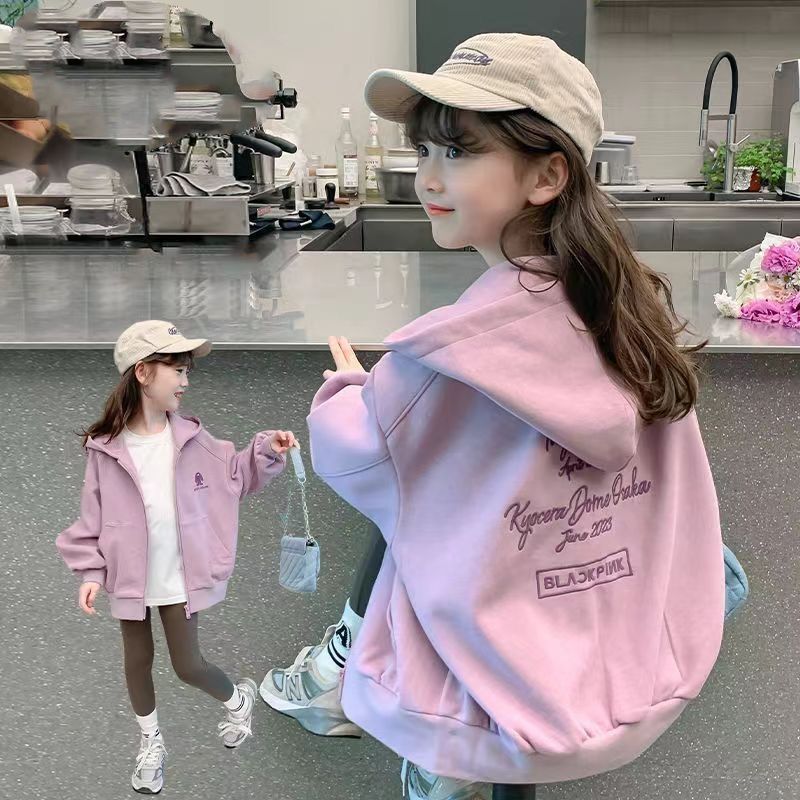 Верхняя одежда для девочек популярны весной и осенью, модные и стильные детские толстовки с капюшоном, топы интернет-знаменитостей для маленьких девочек ранней осени для верхней одежды.