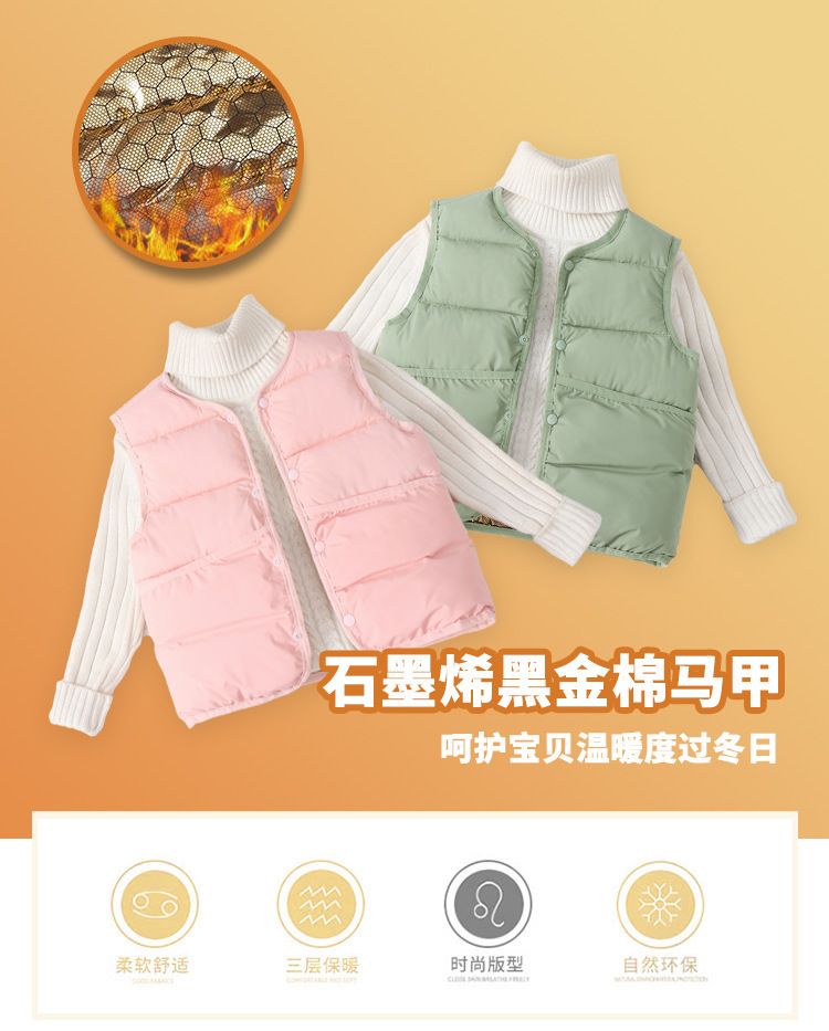 Внешняя торговля, трансграничная торговля, 858, детский графеновый хлопковый жилет из черного золота, однотонный жилет, жилет для детей маленького и среднего размера, прямая продажа с фабрики
