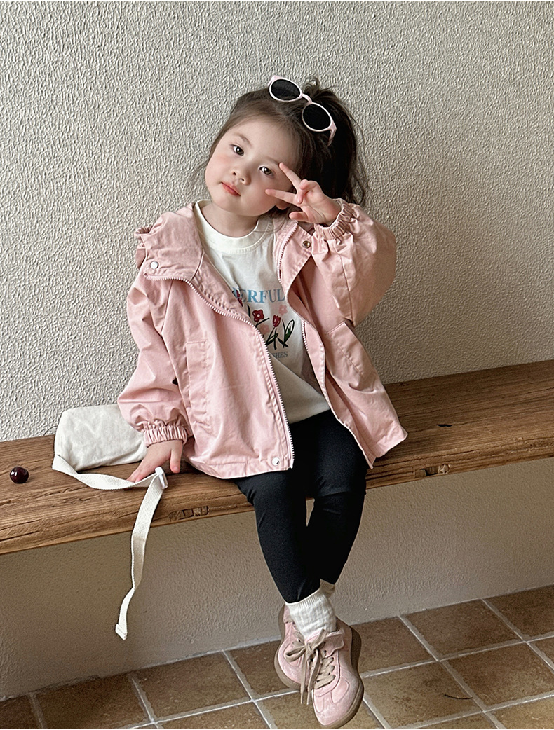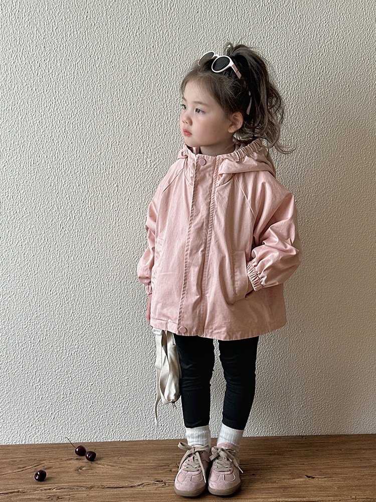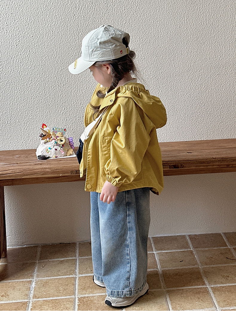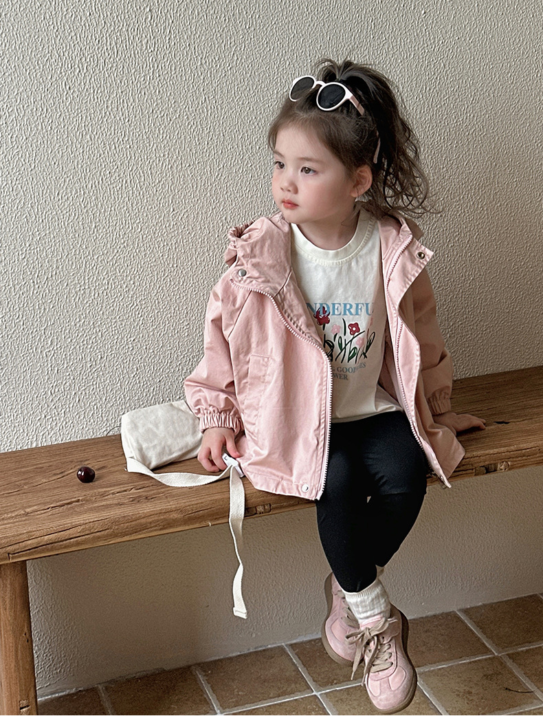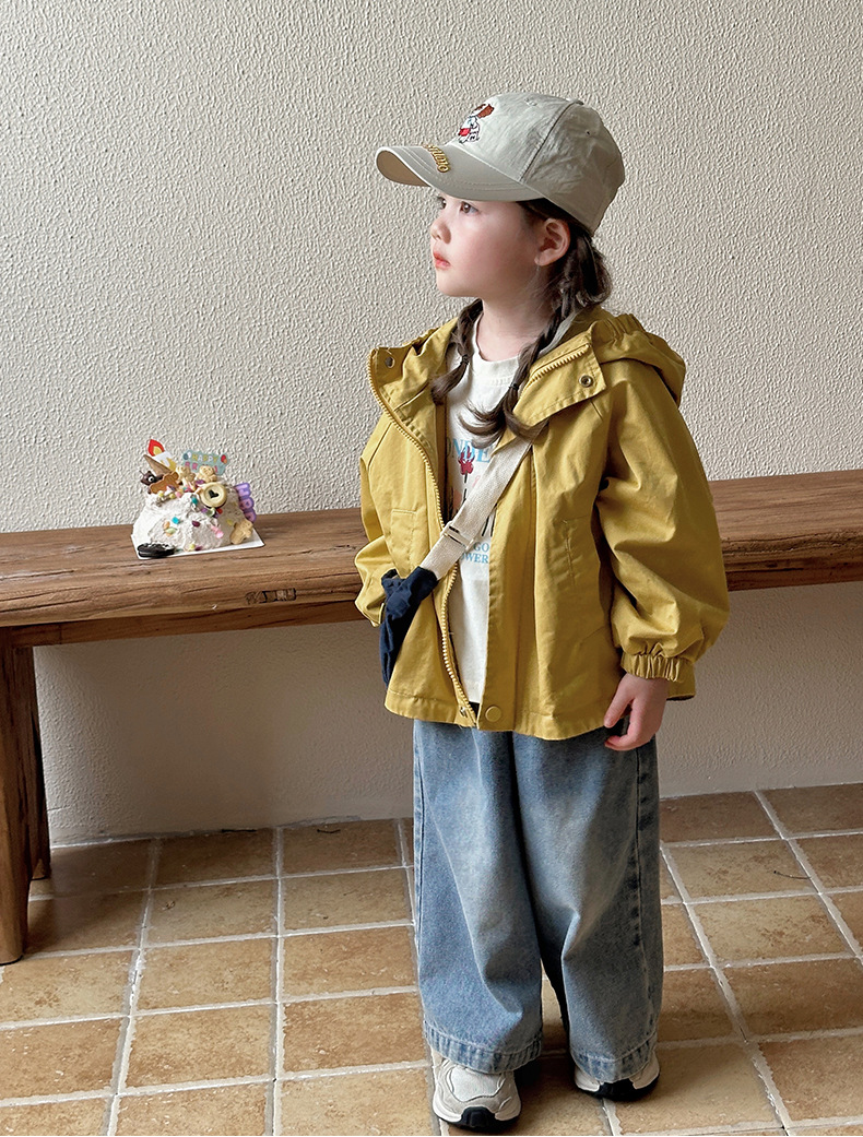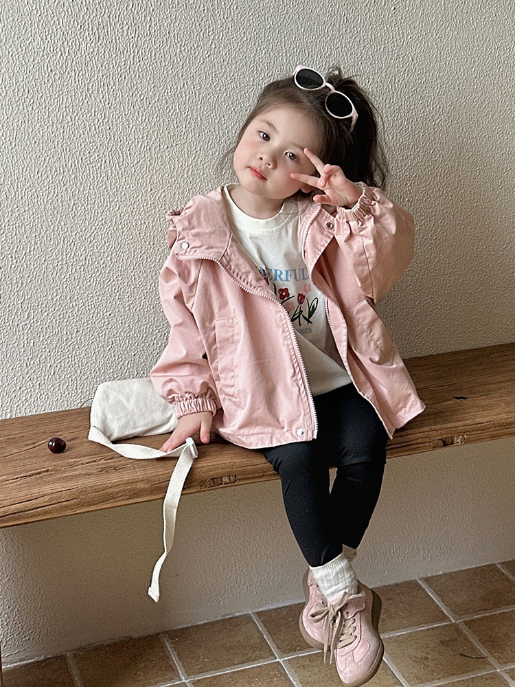 Тренч средней длины для девочек, весенне-осенний стиль, детский осенний кардиган с капюшоном, детская осенняя куртка, повседневный и универсальный вариант.