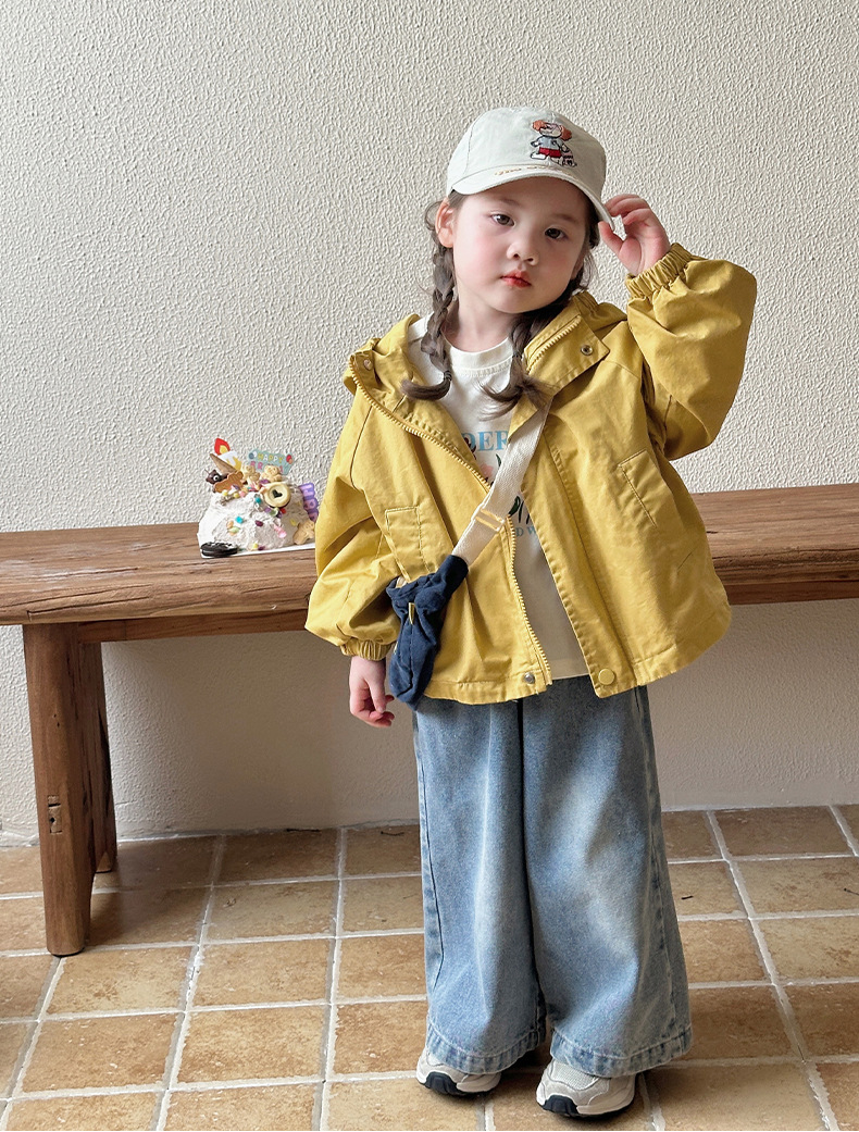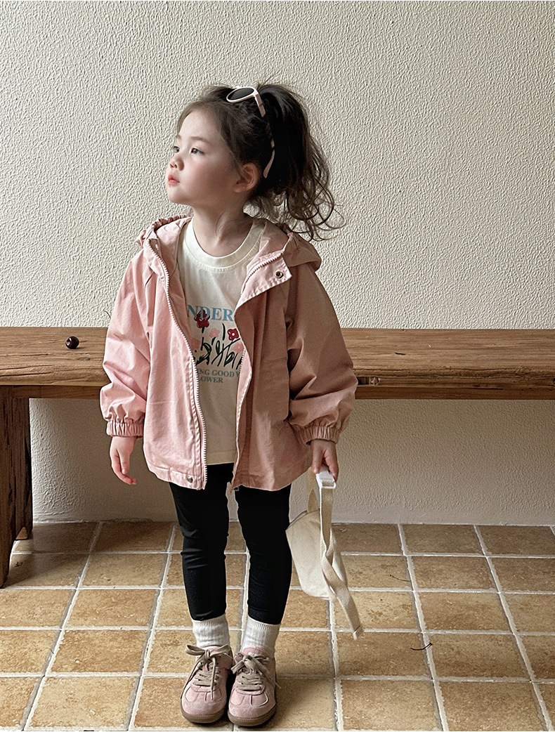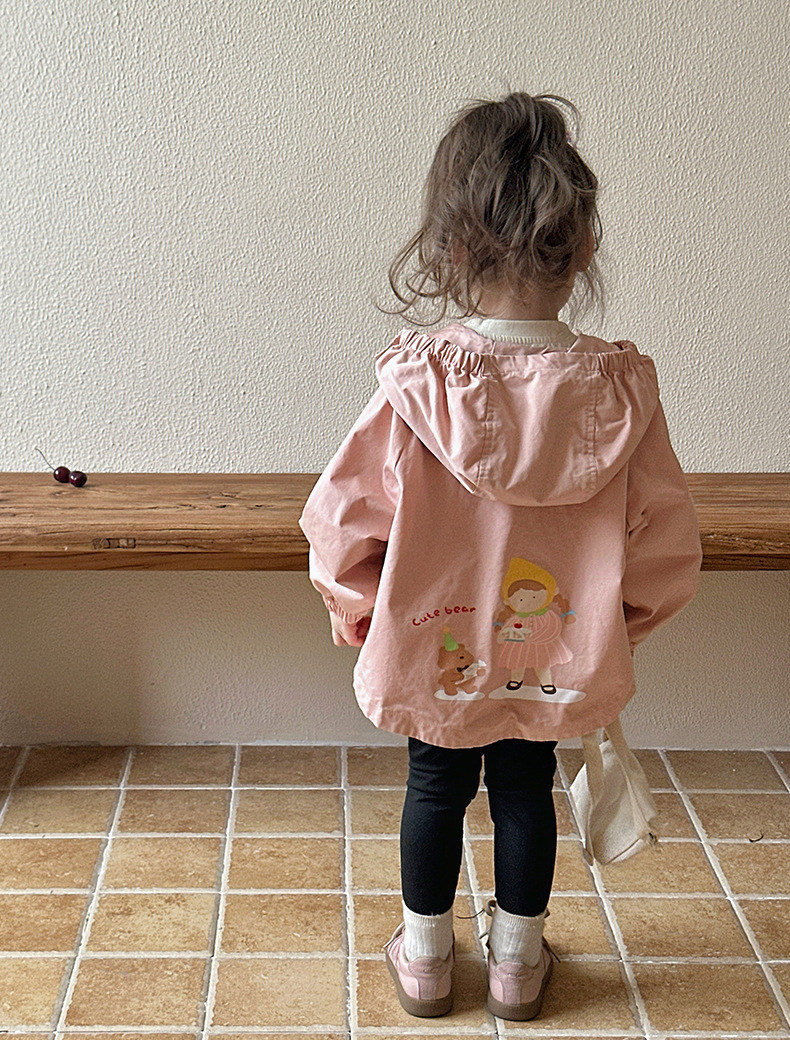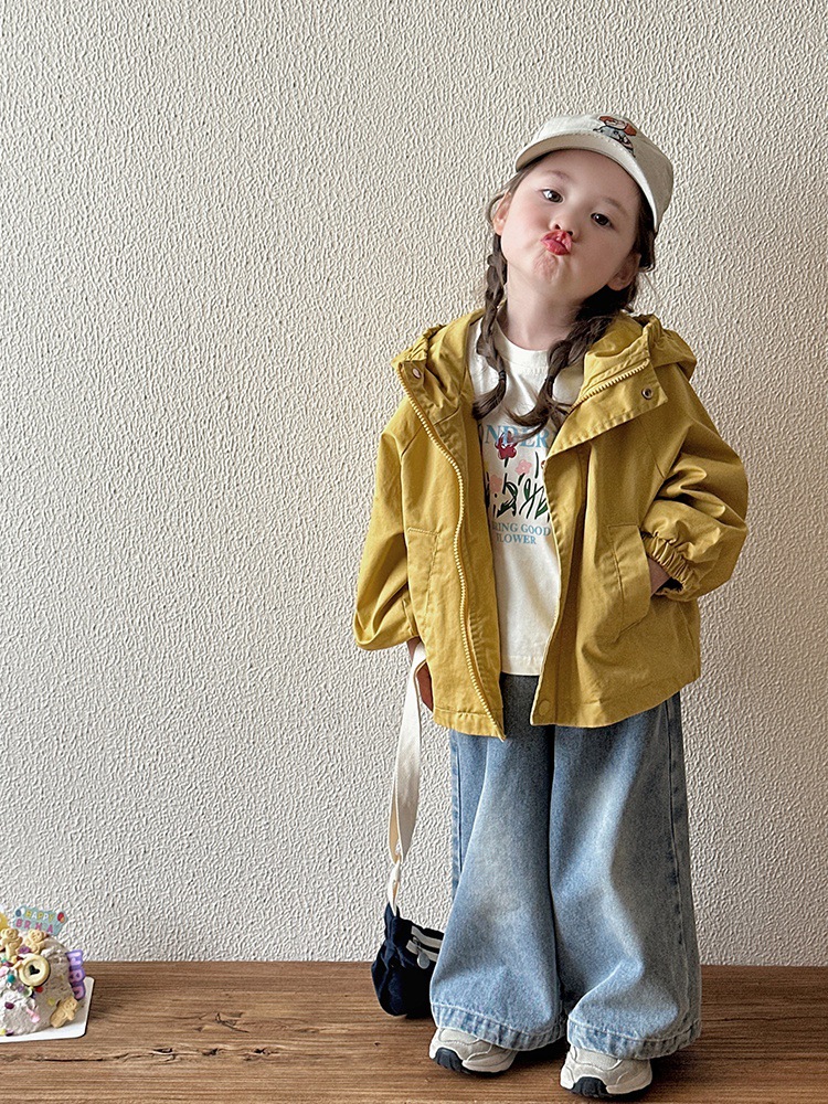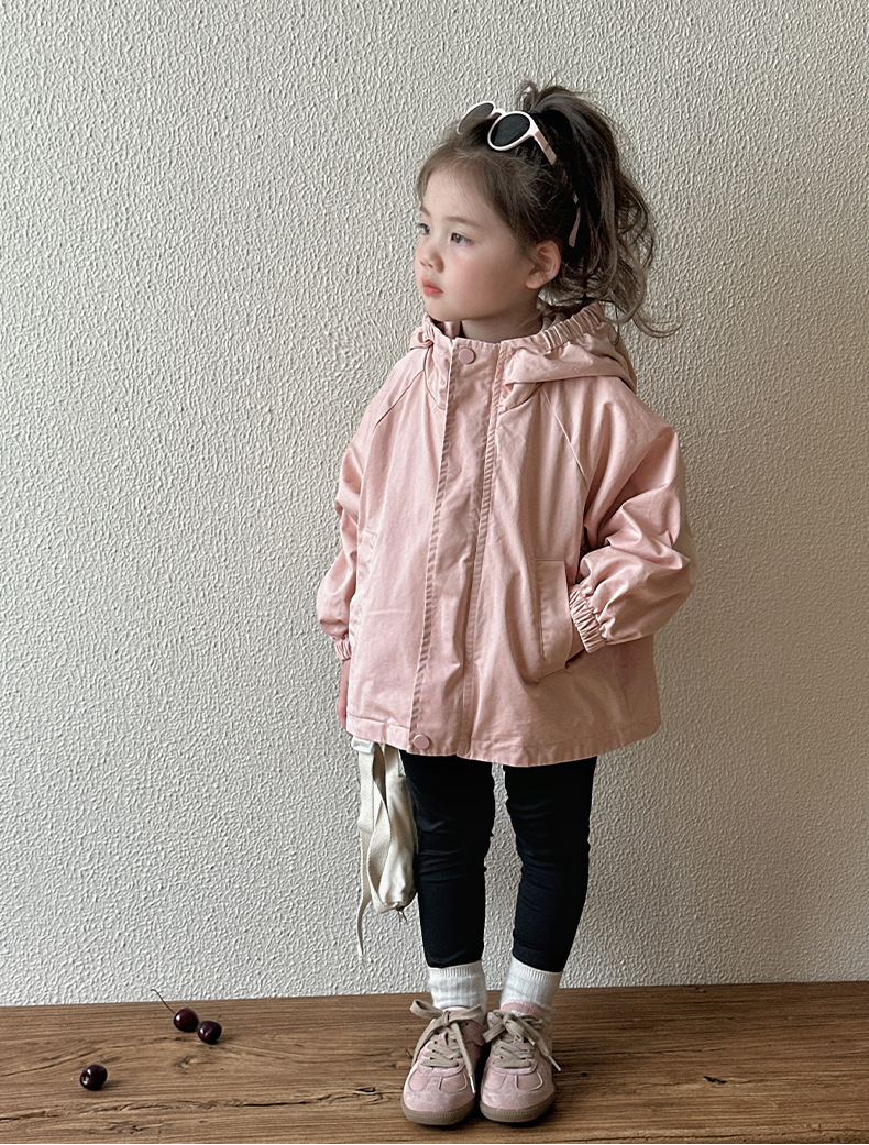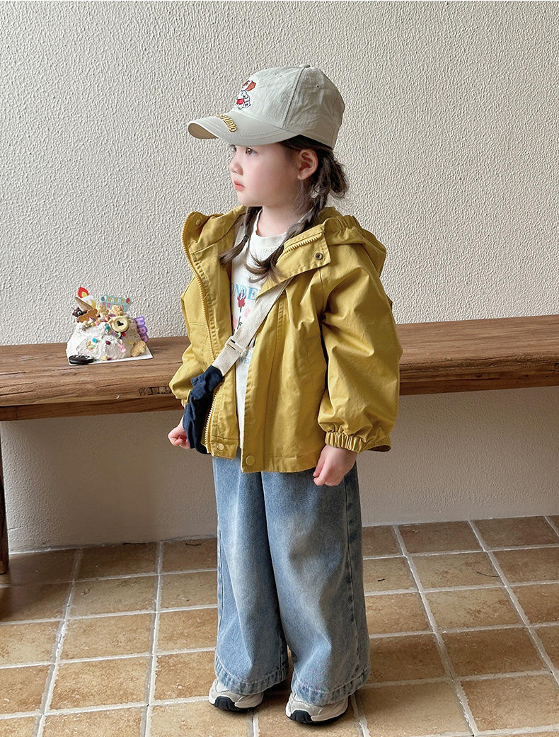 Тренч средней длины для девочек, весенне-осенний стиль, детский осенний кардиган с капюшоном, детская осенняя куртка, повседневный и универсальный вариант.
