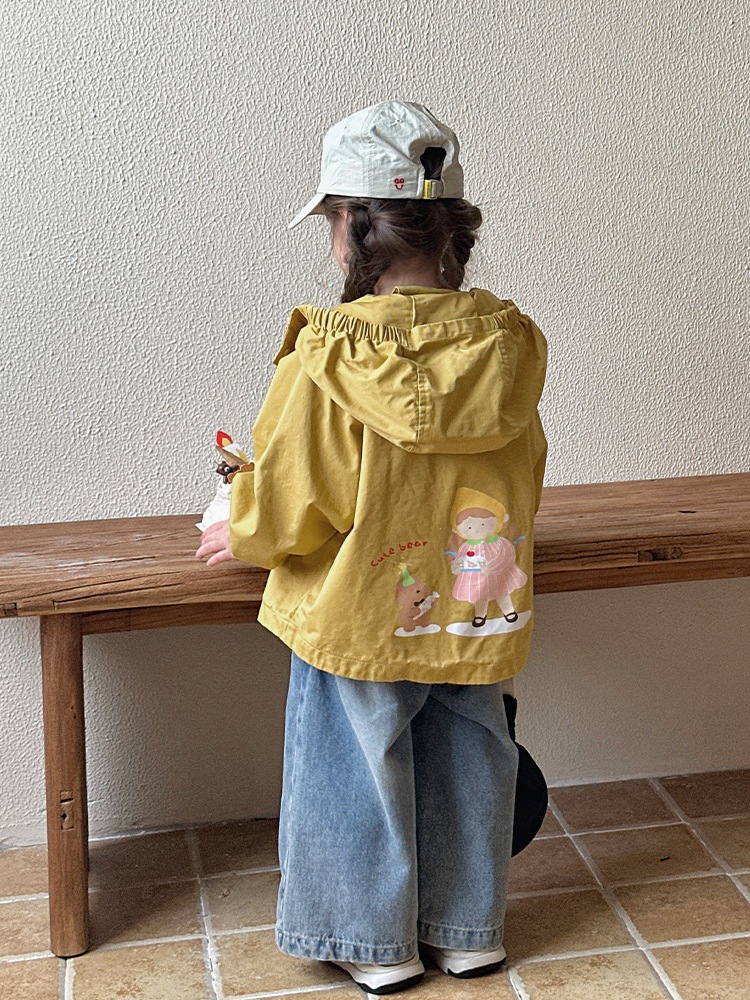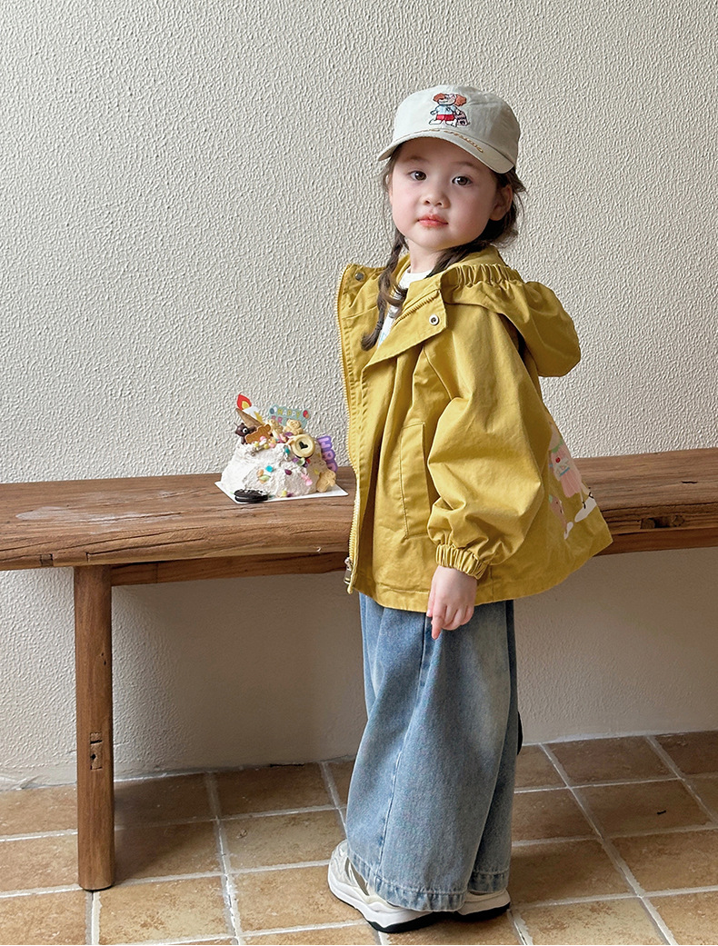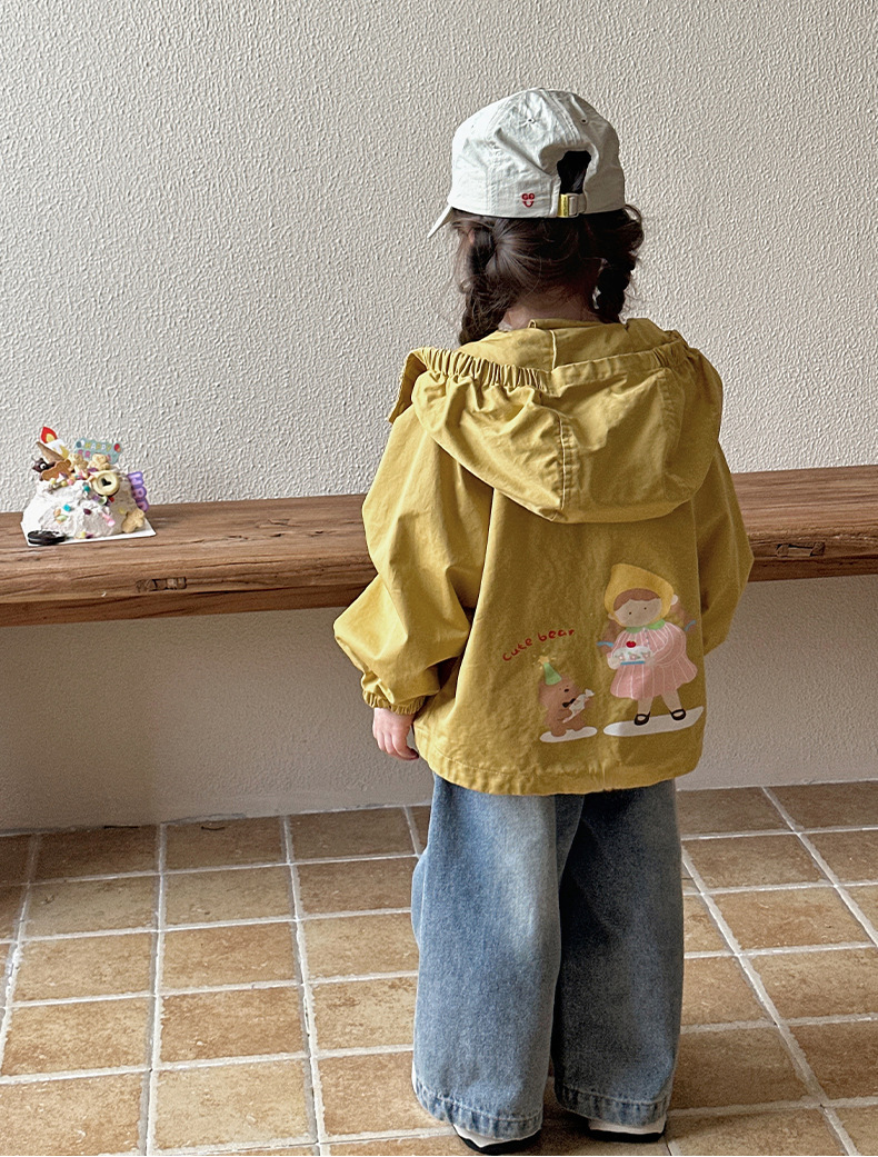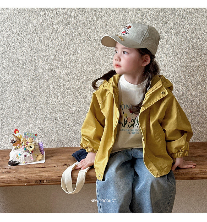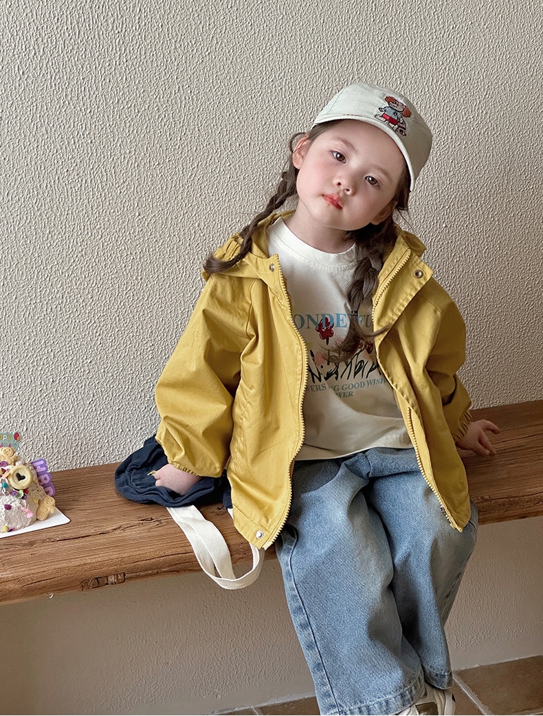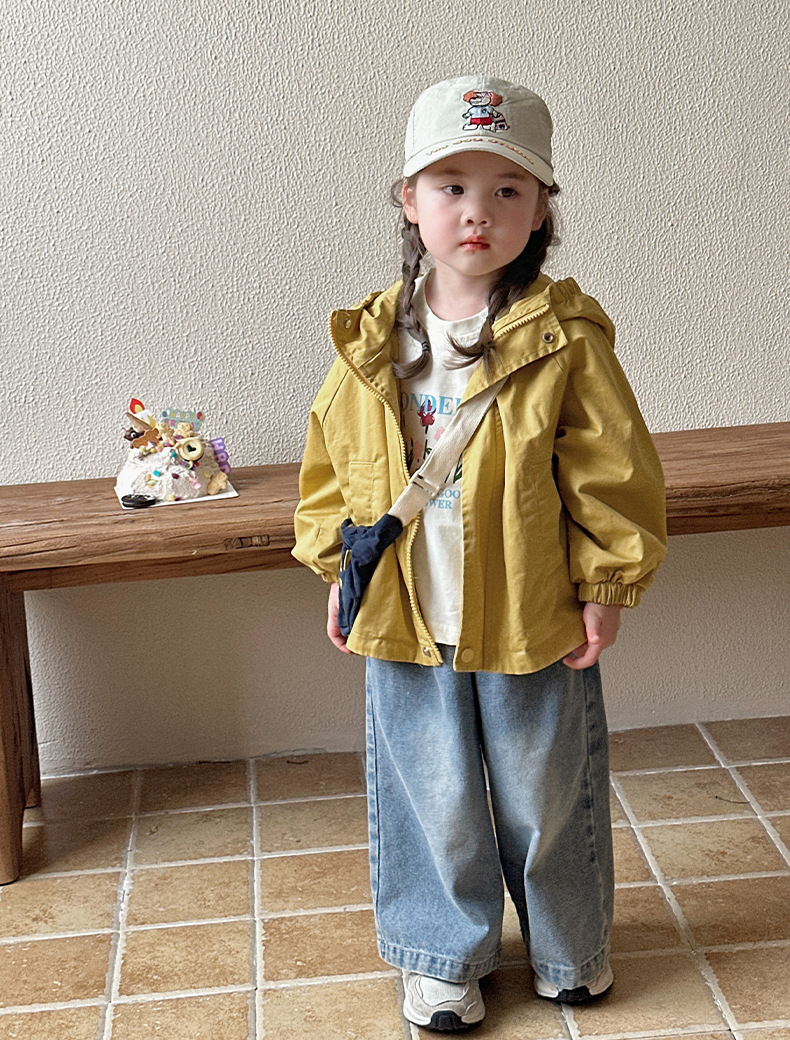 Тренч средней длины для девочек, весенне-осенний стиль, детский осенний кардиган с капюшоном, детская осенняя куртка, повседневный и универсальный вариант.