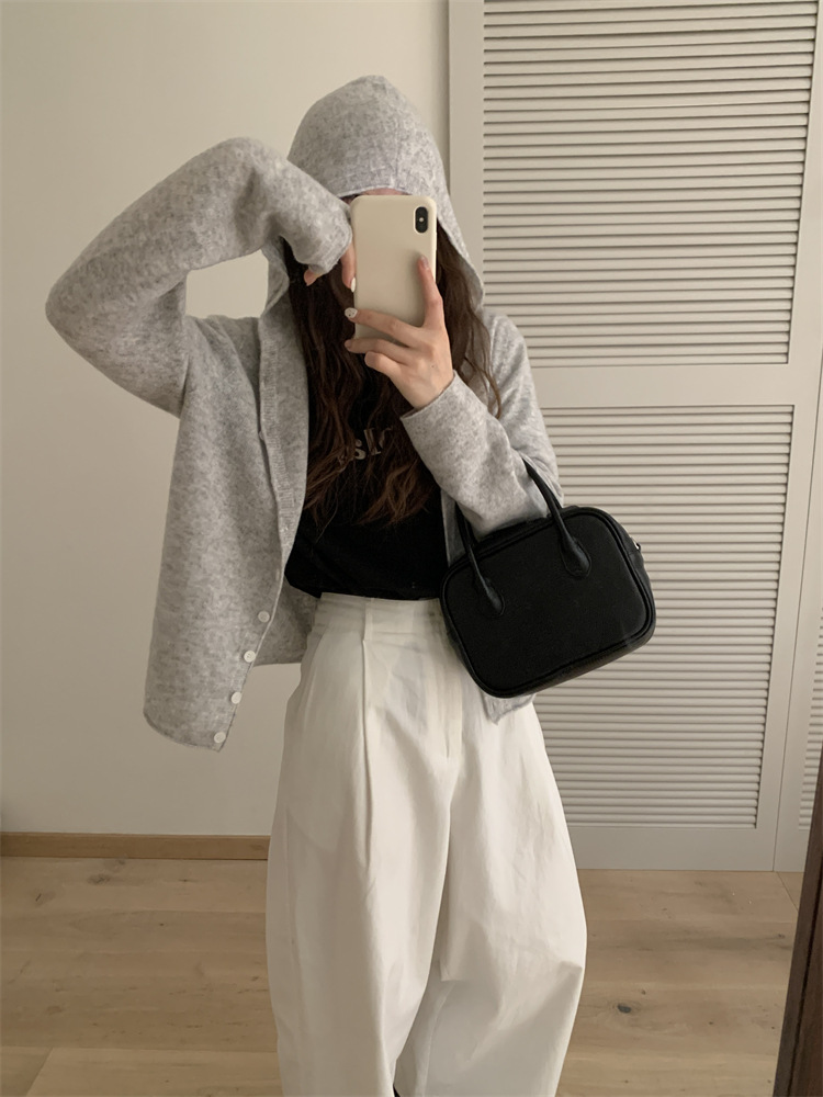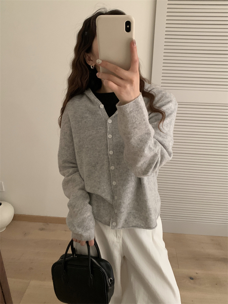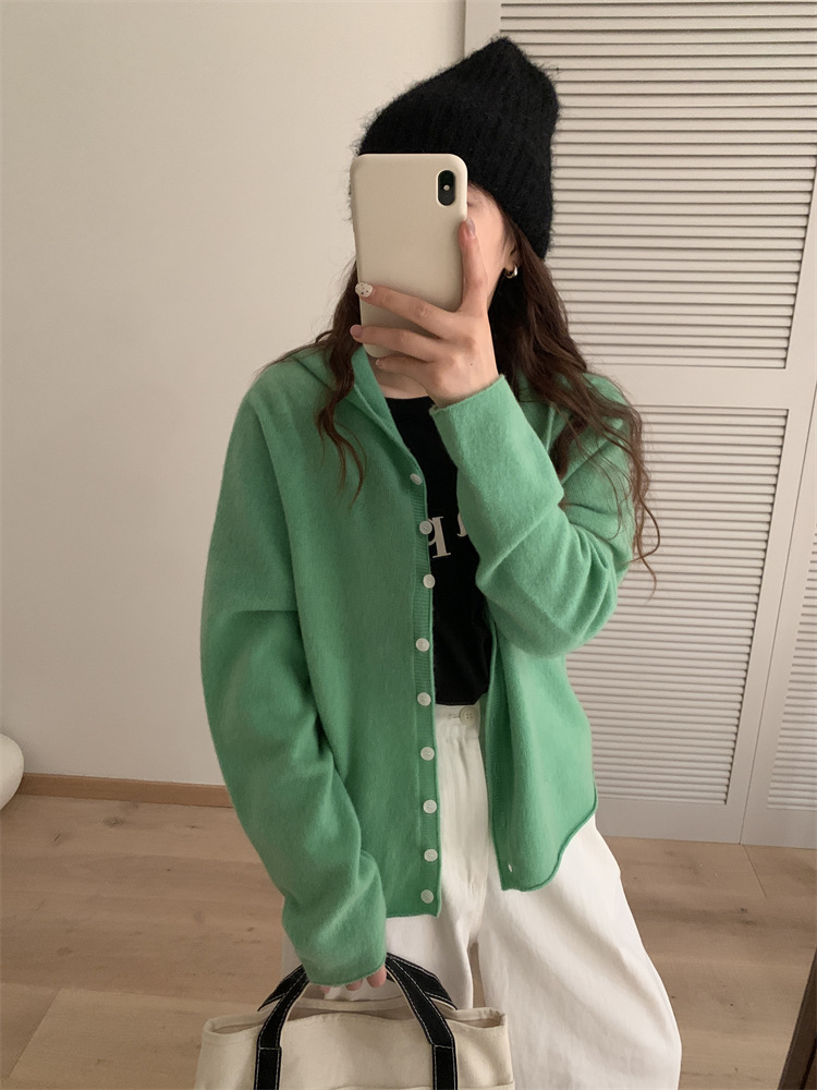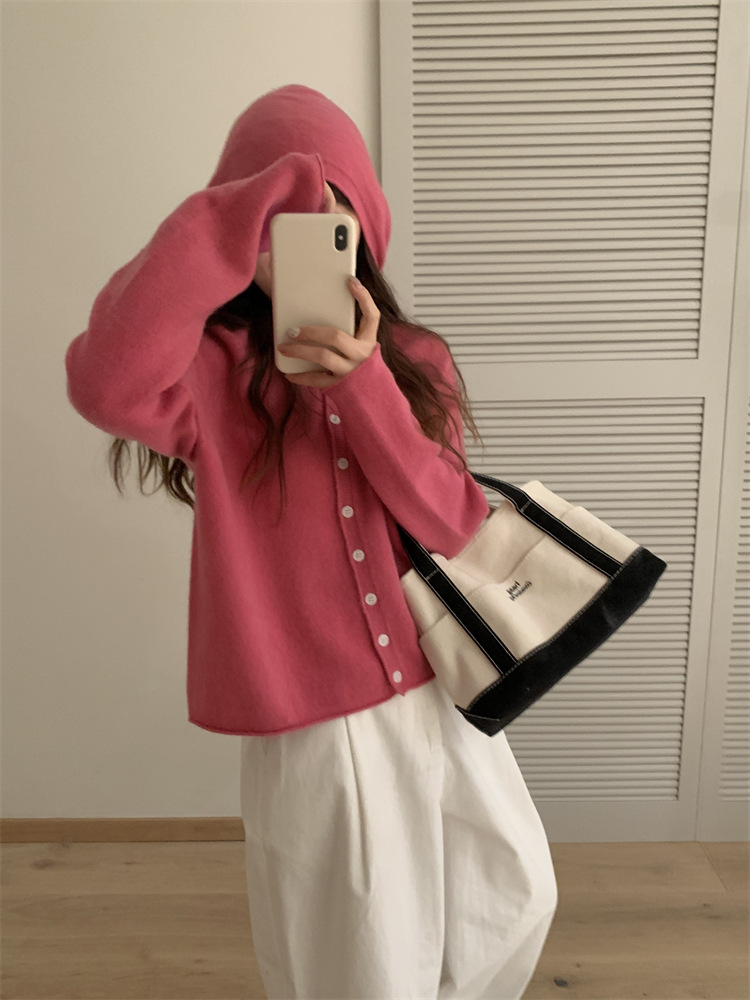 Вязаный шерстяной свитер с капюшоном для женщин, кардиган из чистой шерсти, короткое пальто, женский свитер, модный и универсальный, в художественном ретро-стиле.