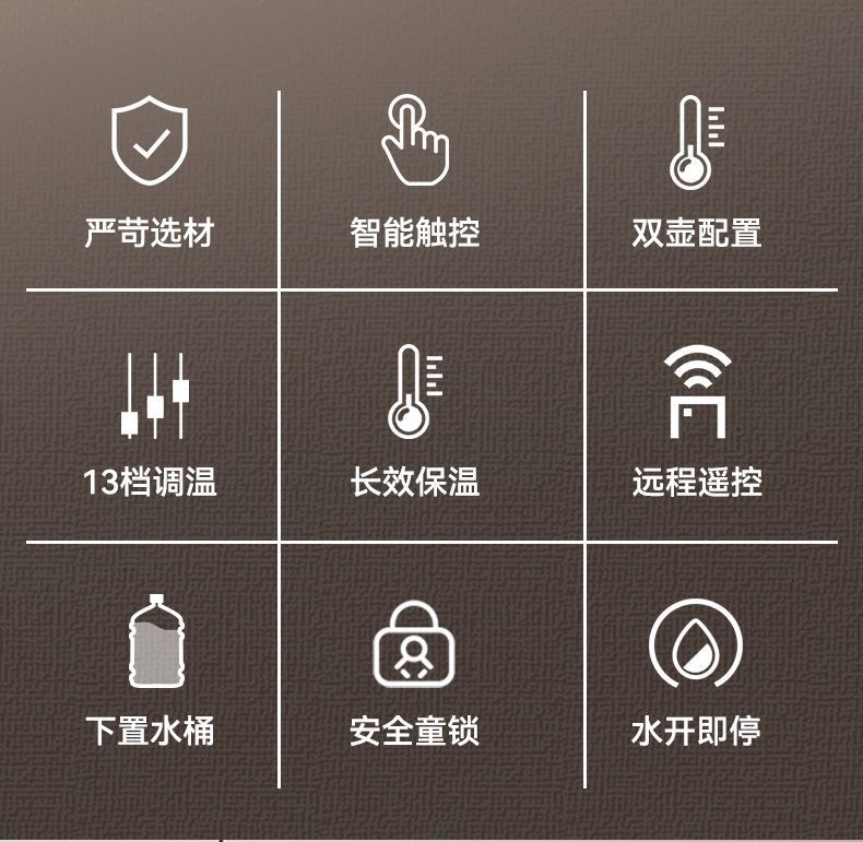 Яоян Черный (вращающийся кран-стеклянная столешница); Шампанское золото (вращающийся кран-двойная дверца-регулировка температуры); Полосатое золото (экран с цветной этикеткой + железные боковые панели + двойной цифровой дисплей); Полосатый черный (цветной экран этикетки + железные боковые панели + двойной цифровой дисплей); Morandi серый (5 больших предустановленных регулировок температуры + большой цифровой дисплей); Обсидиан Черный (большая модель не требует установки + цветная этикетка + регулировка температуры); Morandi серый (двойной выпуск воды + утолщенные боковые панели + дальний пульт дистанционного управления)