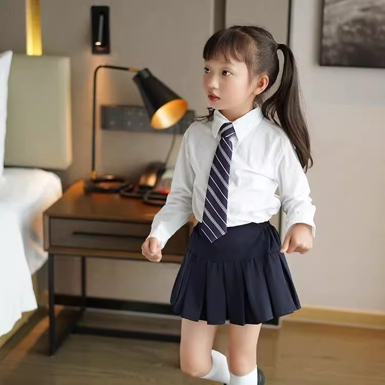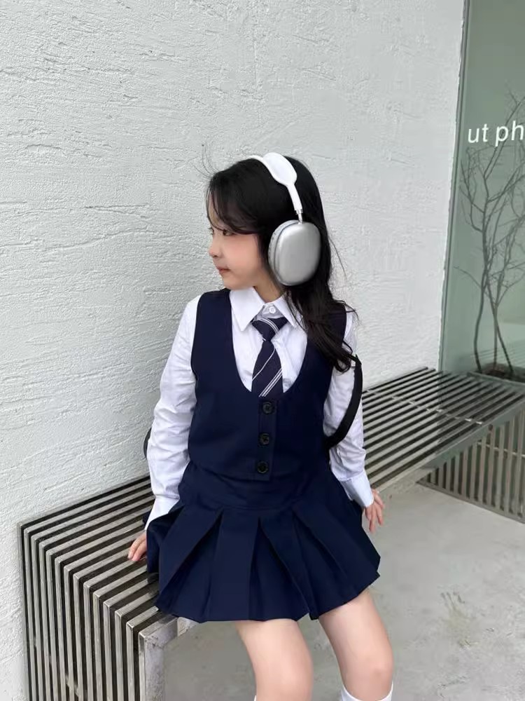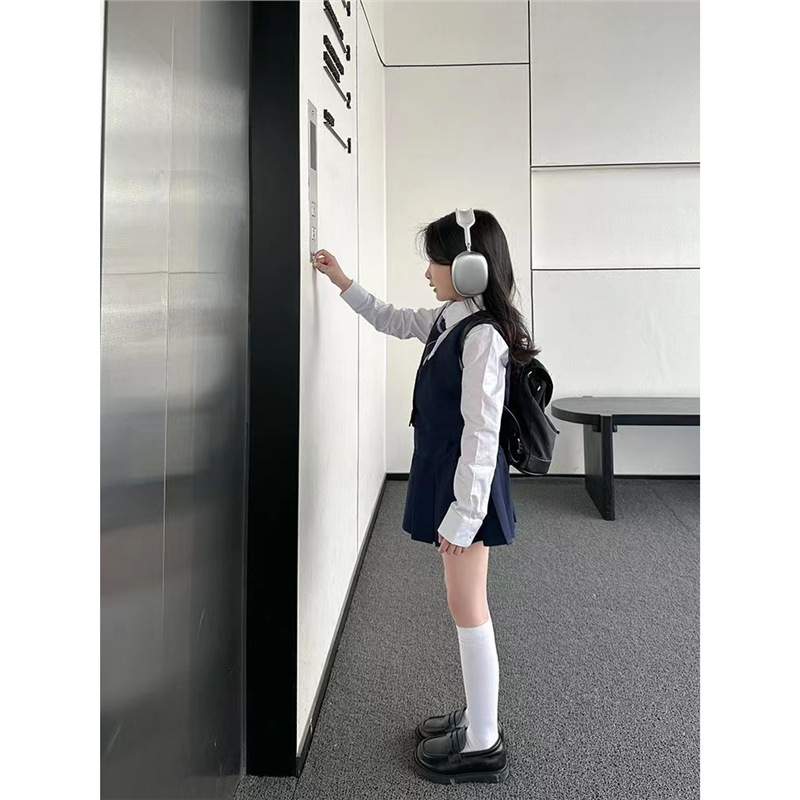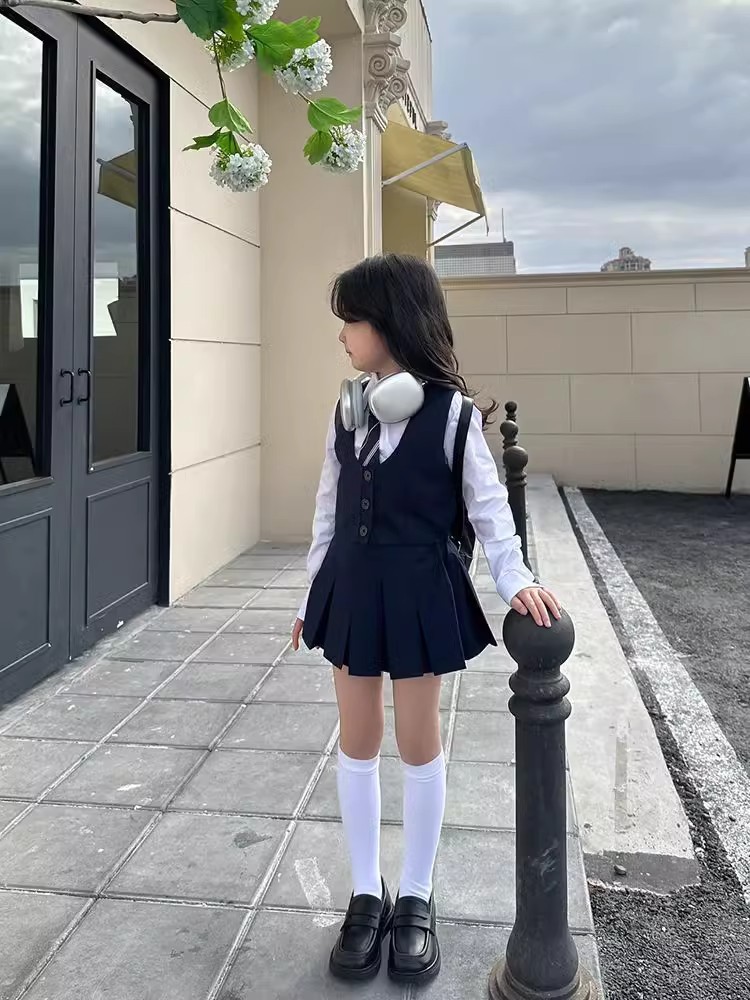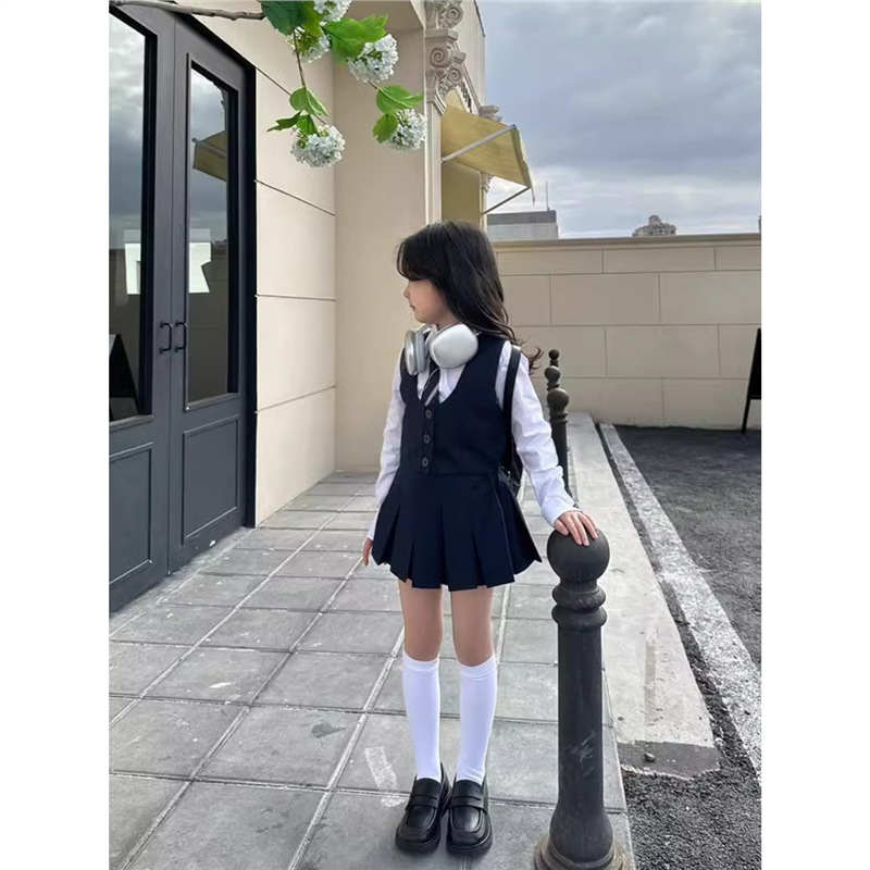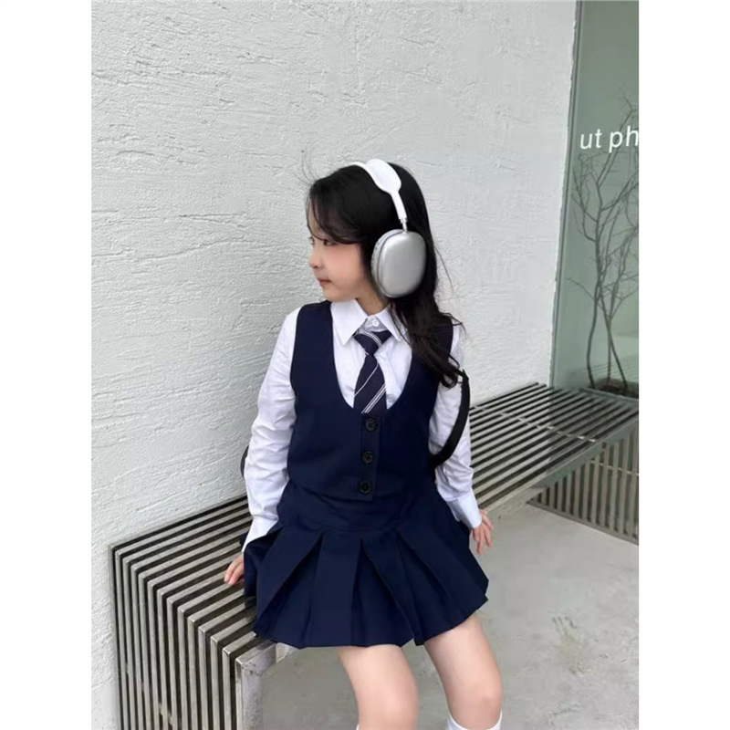 Девушки весенне-осенний жилет белая рубашка плиссированная юбка набор из трех частей 2024 новая детская школа ветрокостюм юбка
