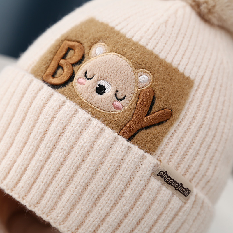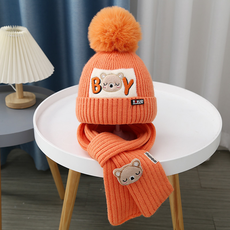 Осенняя и зимняя детская шапка мальчик медведь шерстяная шапка для девочек вязание и хлопок теплая детская шапка шарф из двух частей