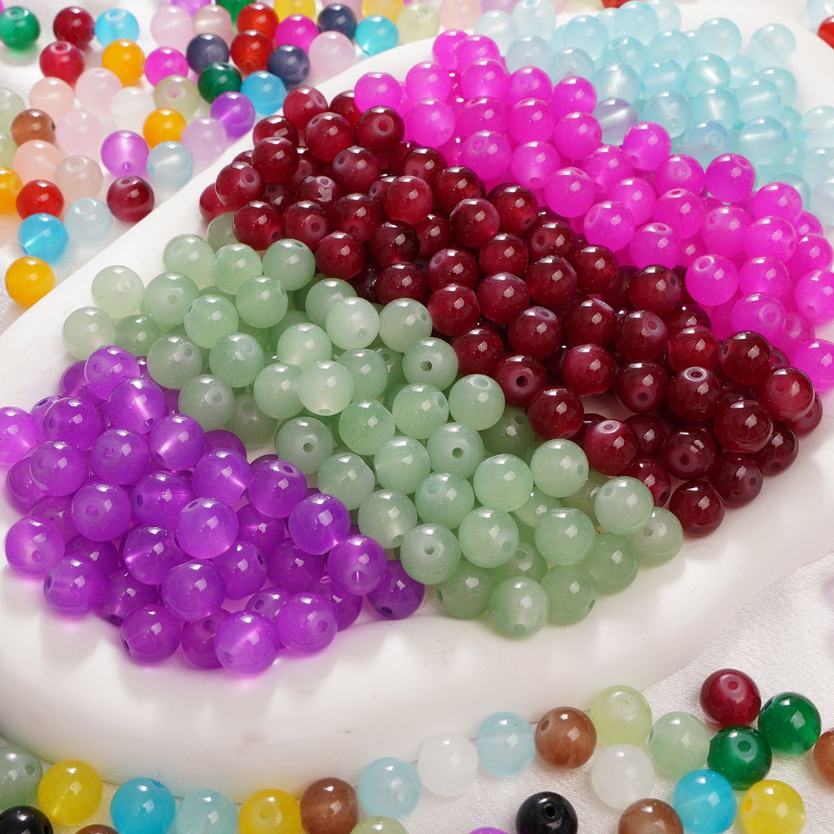Бусины из имитации нефрита и халцедона 8 мм/10 мм, хрустальные бусины, стеклянные бусины для штор, материалы для рукоделия, бусины для браслетов и ожерелий