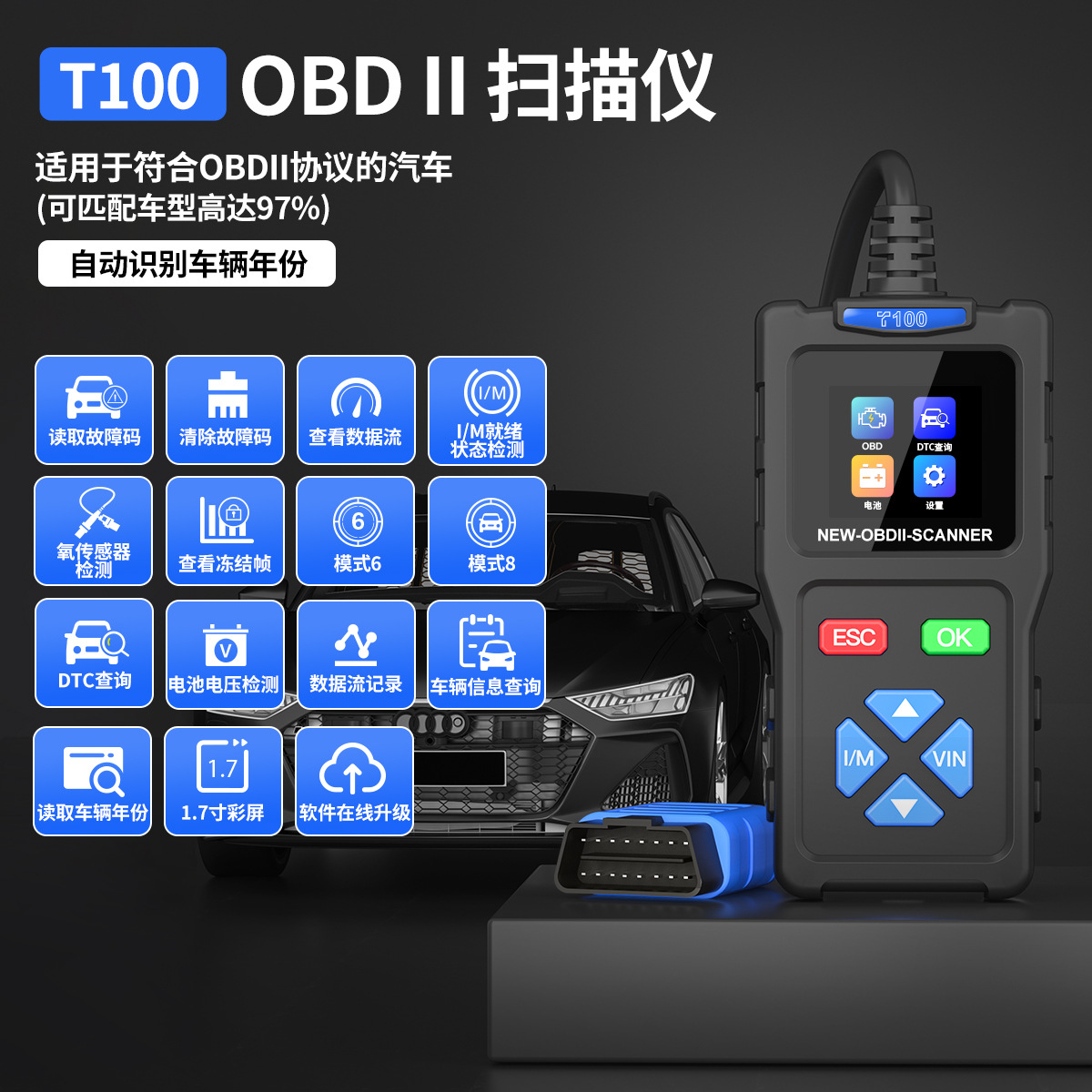 Трансграничный специально для T100 автомобильный неисправность диагностика obd2 автомобильный двигатель детектор elm327 сканер