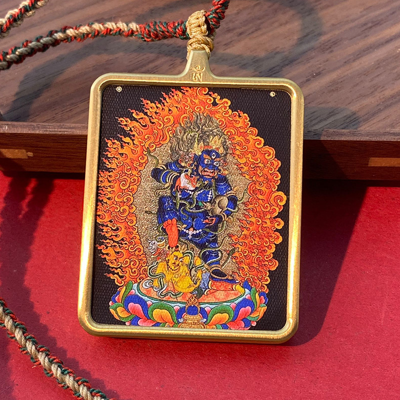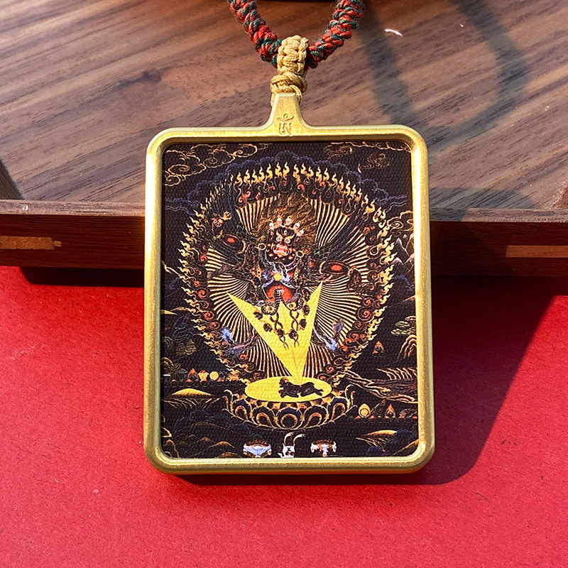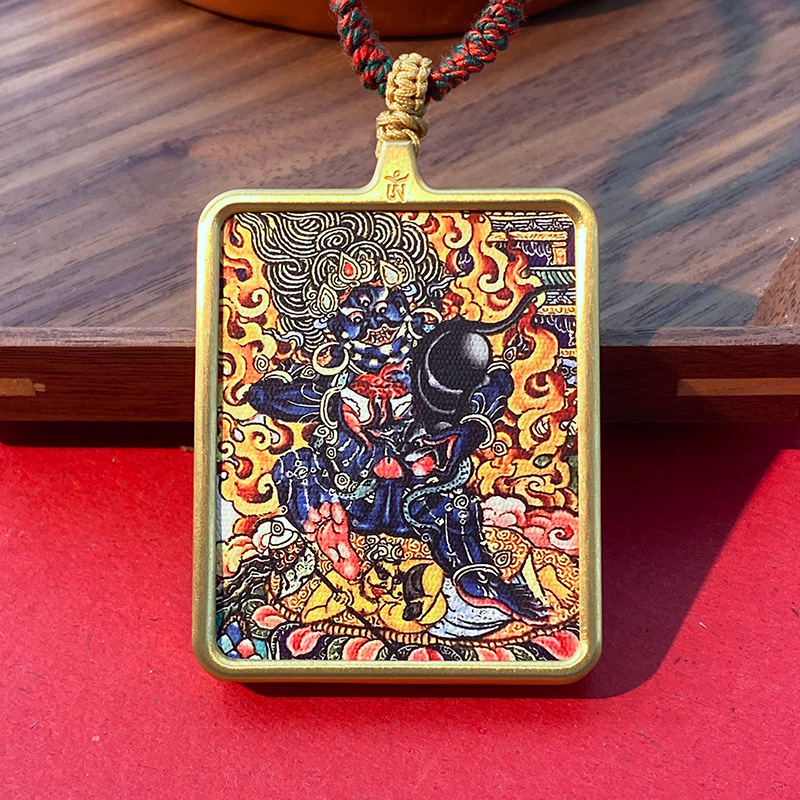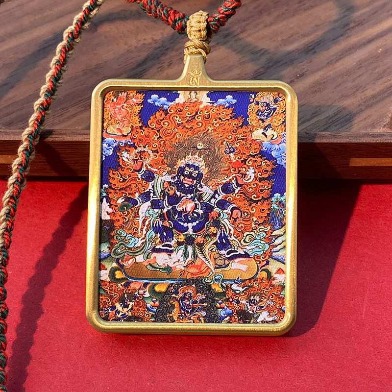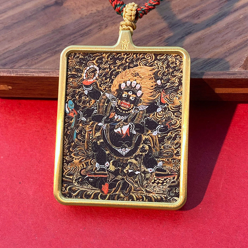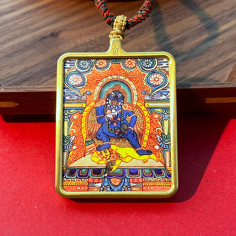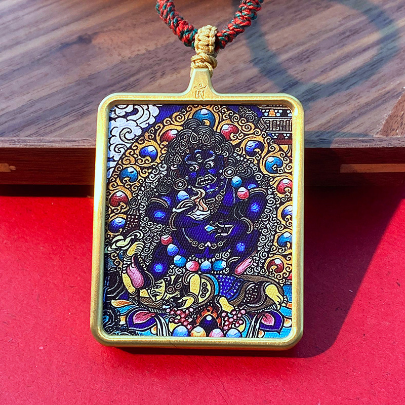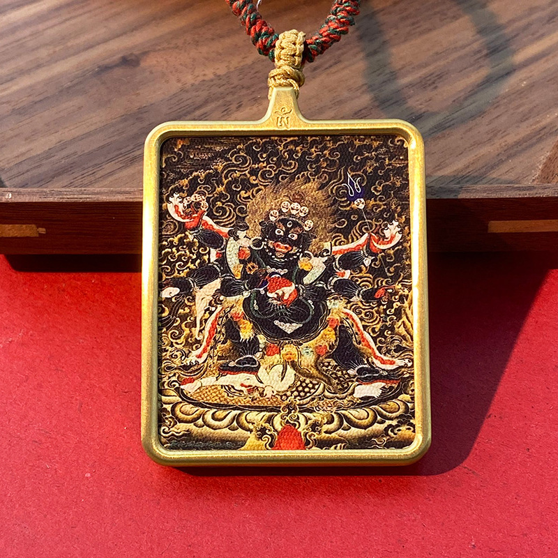 Кулон в тибетском стиле Тхангка с рисунком из шести рук большой черный день Вид Кинг Конг Черный Бог Богатства Тибетский Квадратный Золотой Кулон