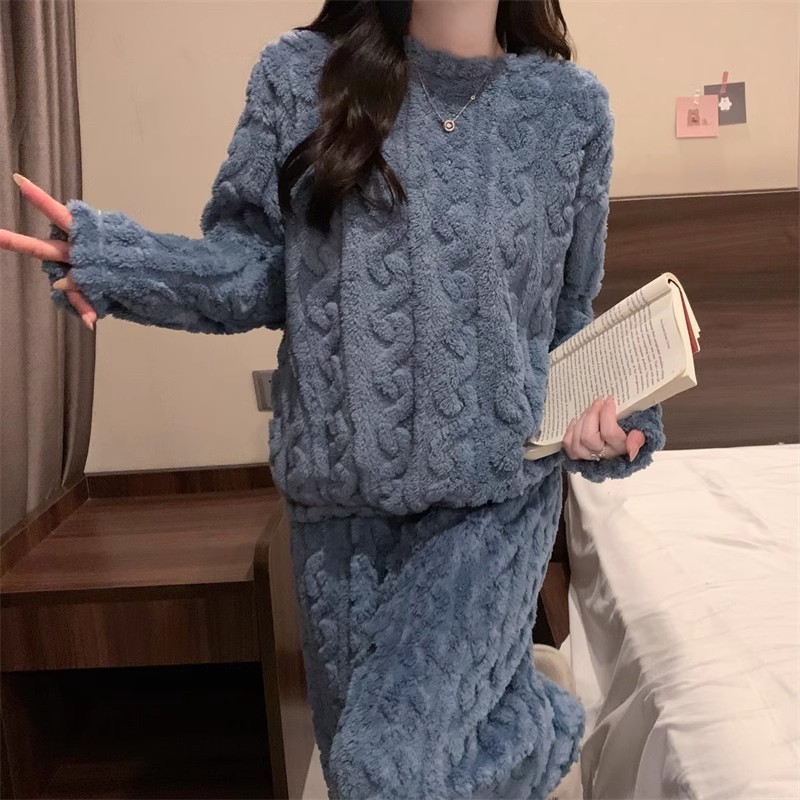 Коралловый бархат жаккардовый теплый набор пижамы плюс бархат утолщение осенью и зимой
