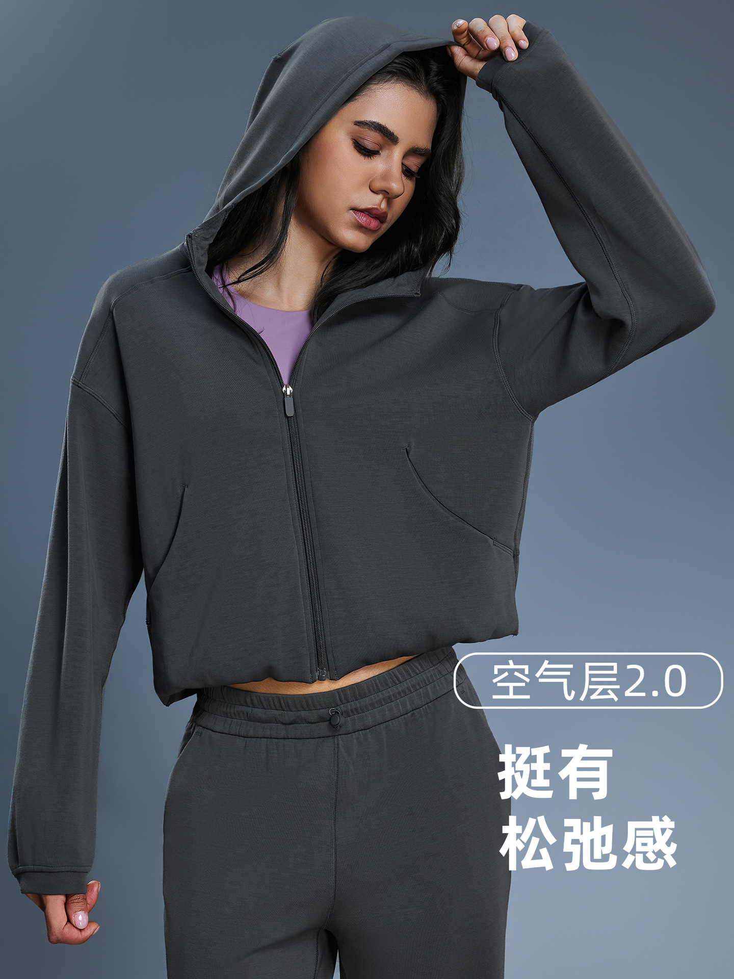 Кардиган с капюшоном на молнии куртка женская осень-зима новый продукт свободный повседневный свитер бег фитнес-топ DAW166