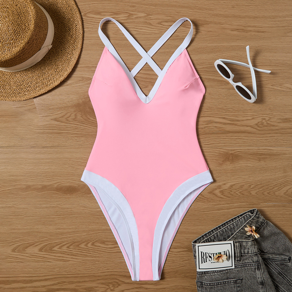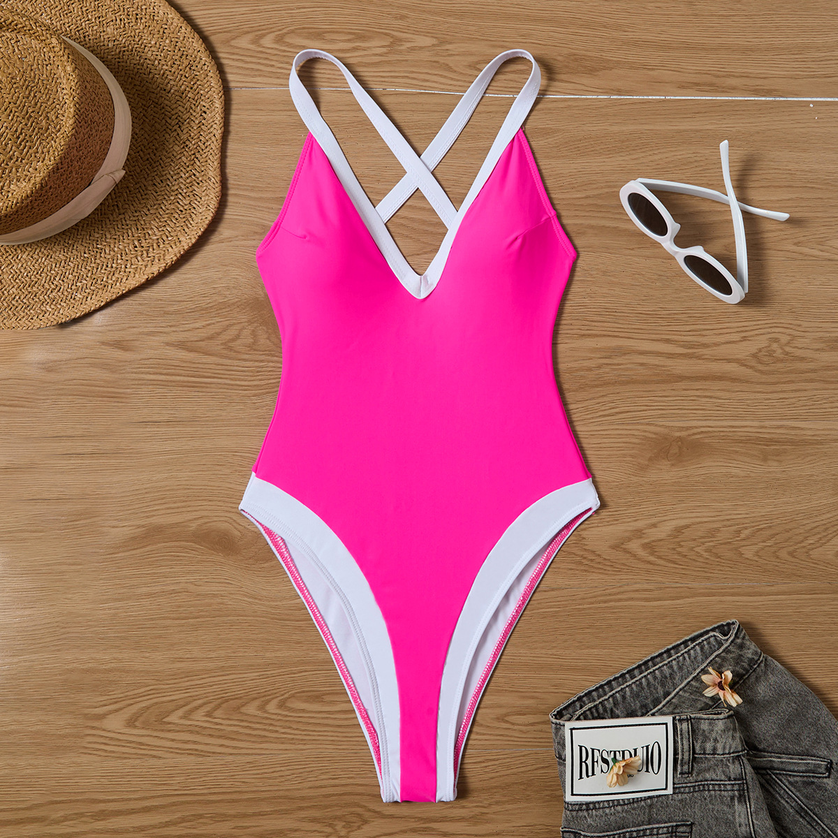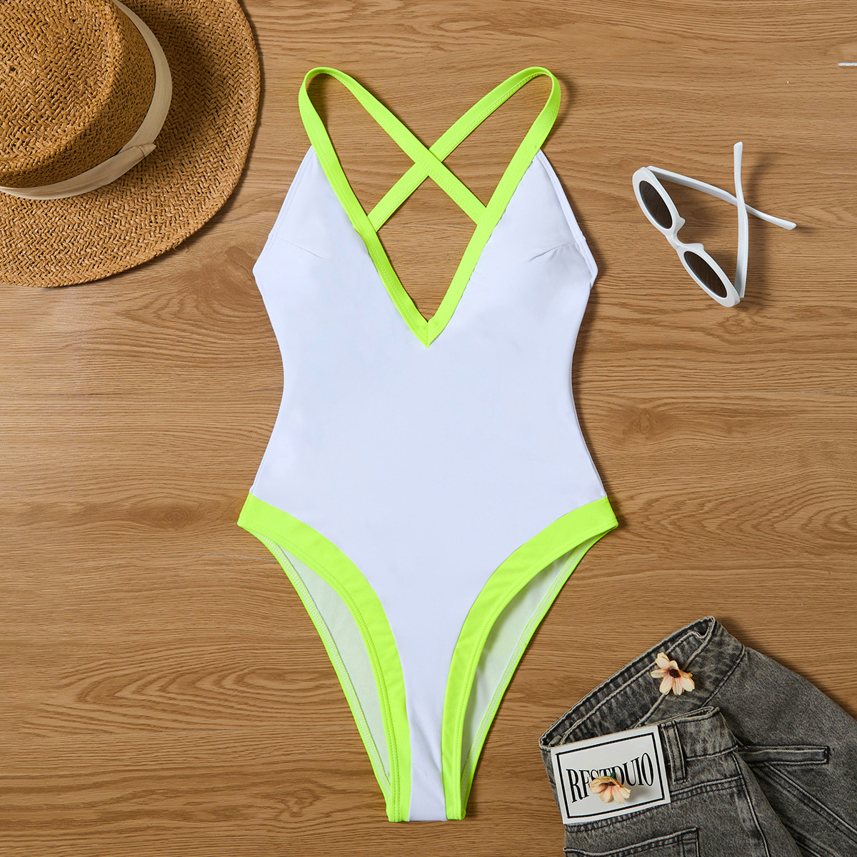 2024 новый европейский и американский бикини обтягание сексуальный сплошной цвет цельный купальник трансграничный Lazada горячий купальник женский