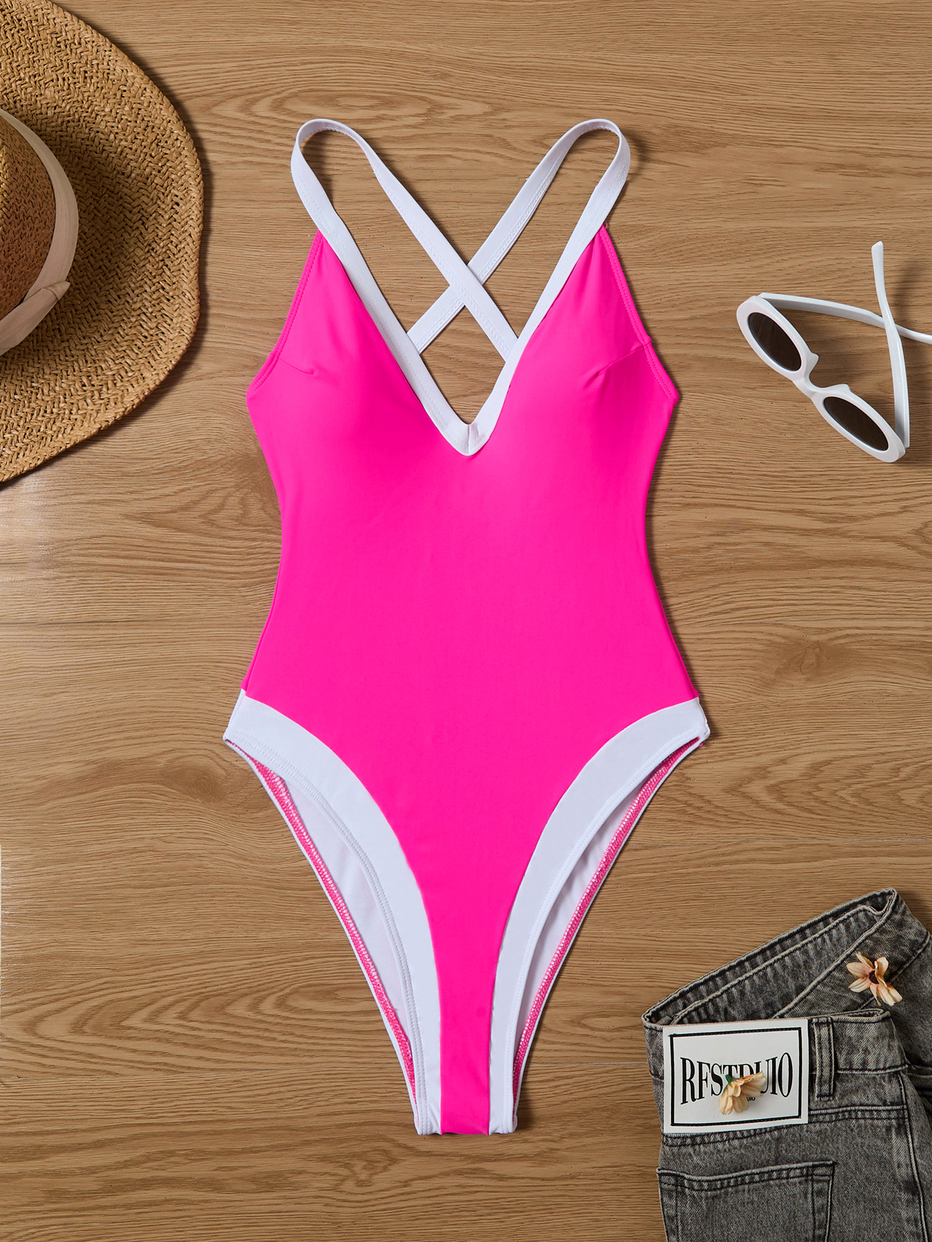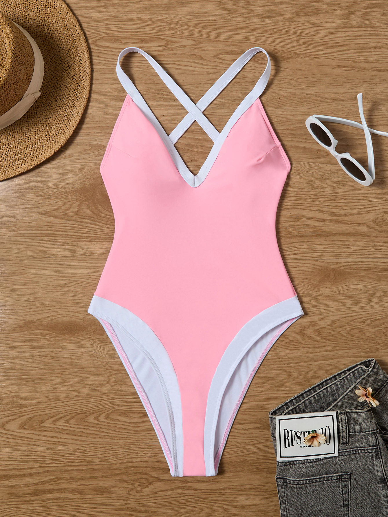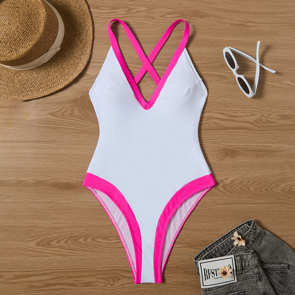 2024 новый европейский и американский бикини обтягание сексуальный сплошной цвет цельный купальник трансграничный Lazada горячий купальник женский