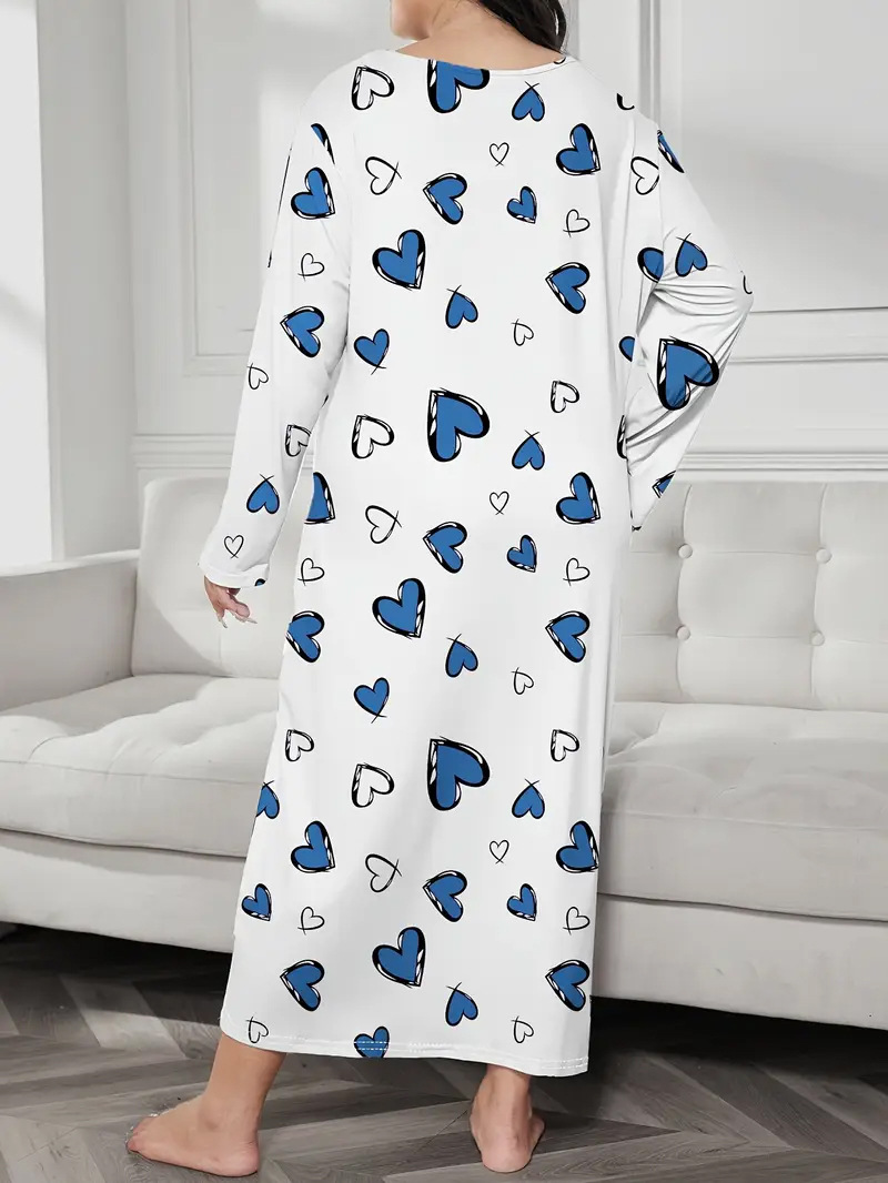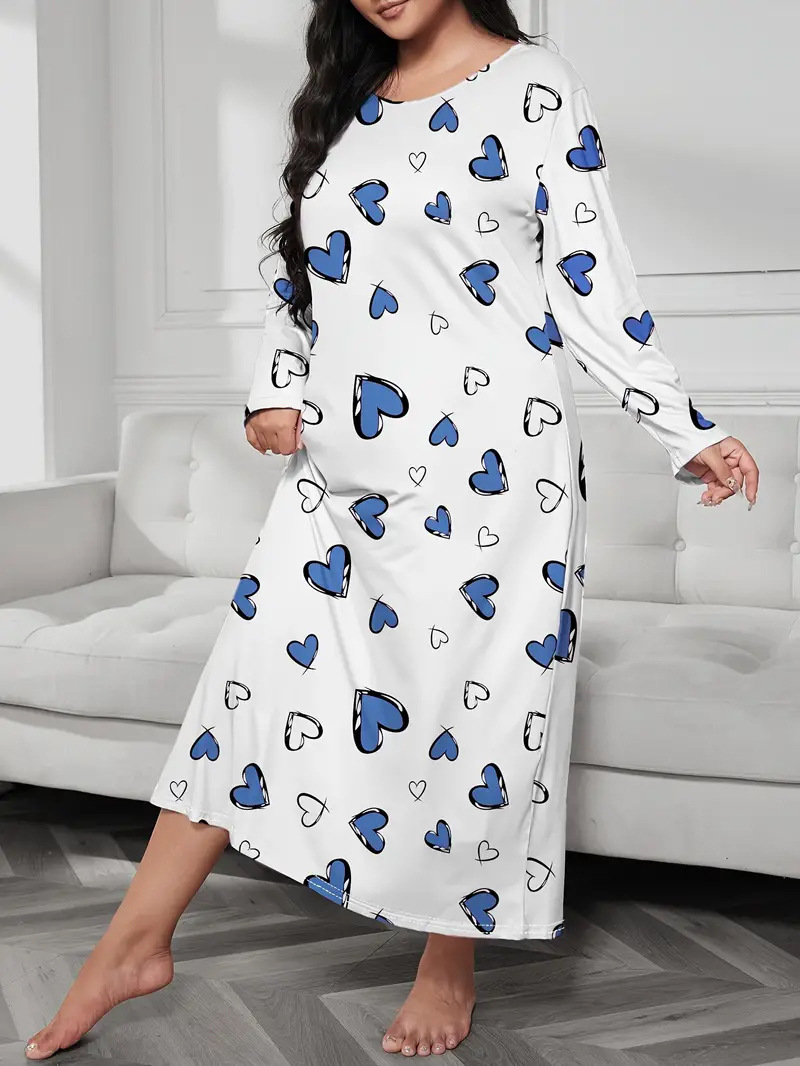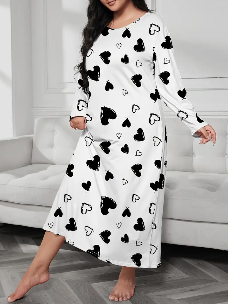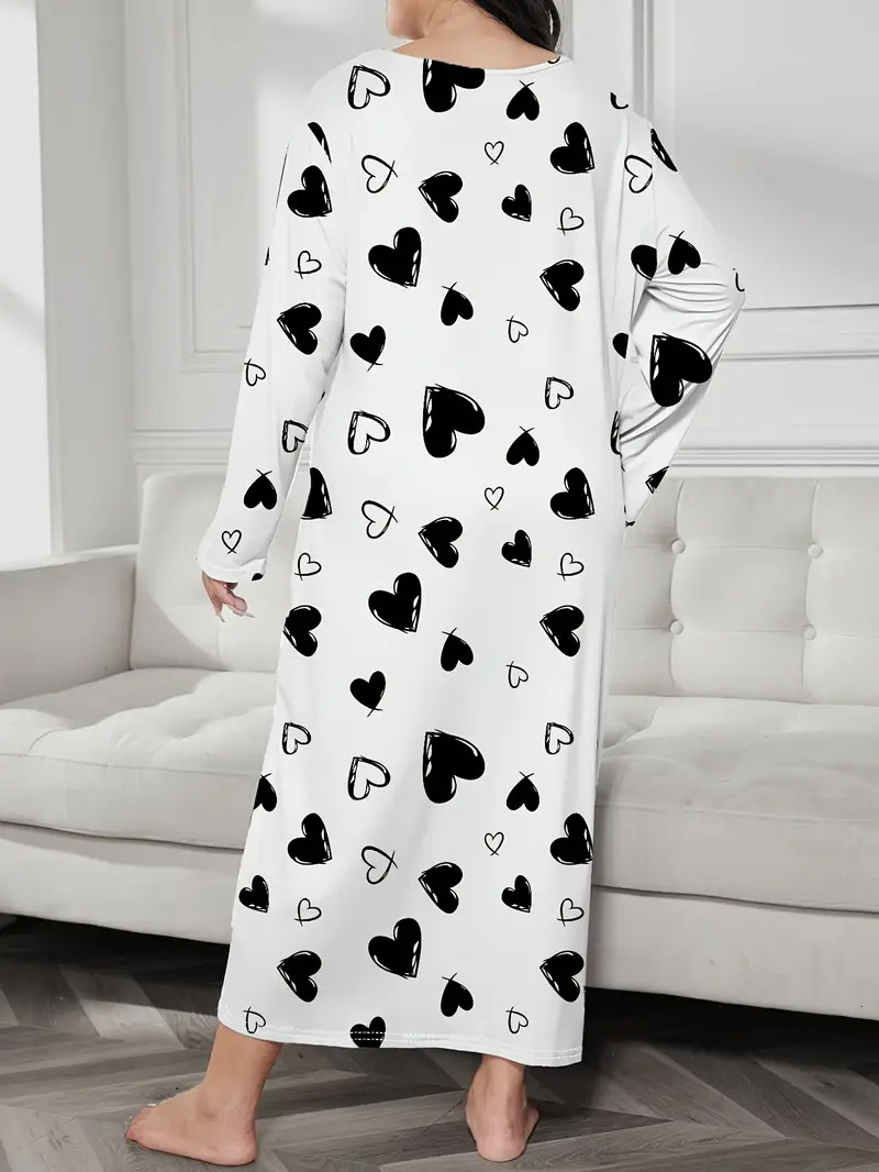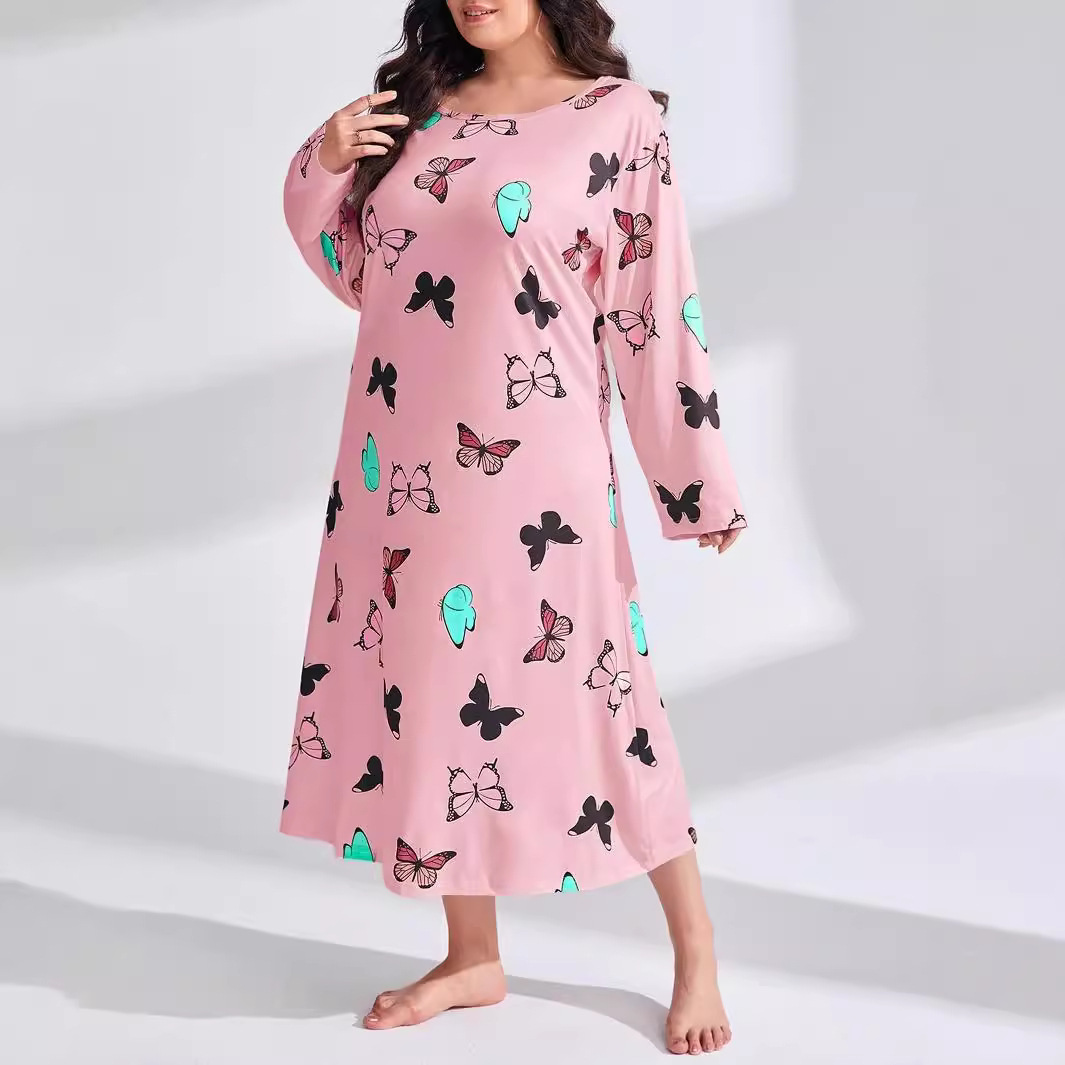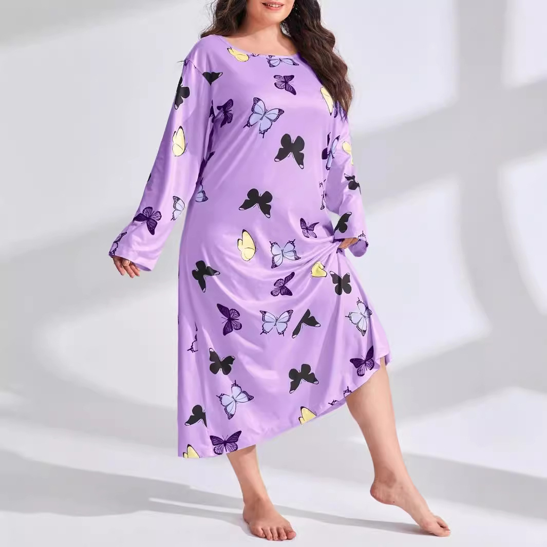 2025 Европейская и американская ночная сорочка с длинными рукавами, принтом бабочки, сердца и леопарда, с открытыми плечами, большого размера, для полных женщин