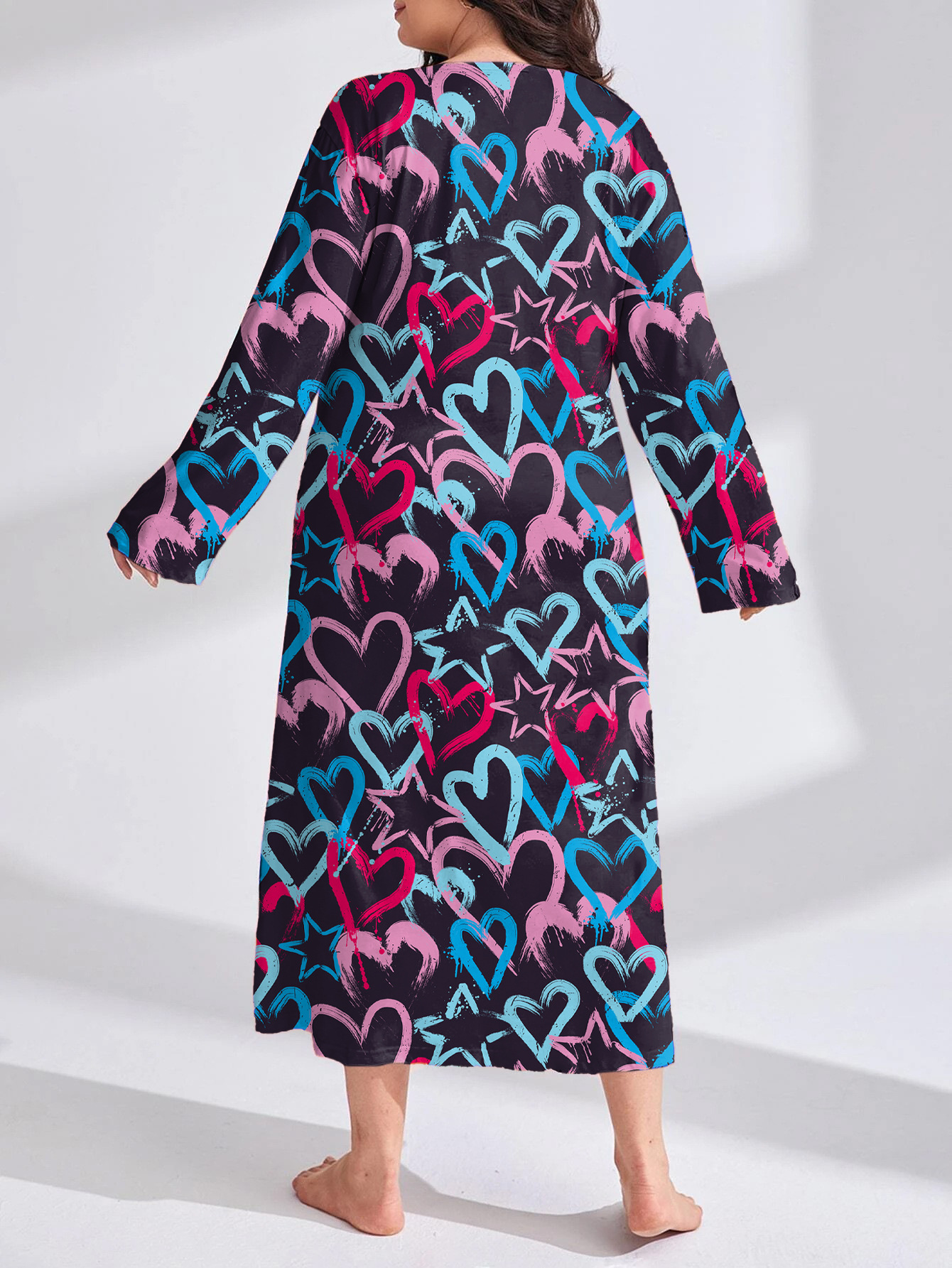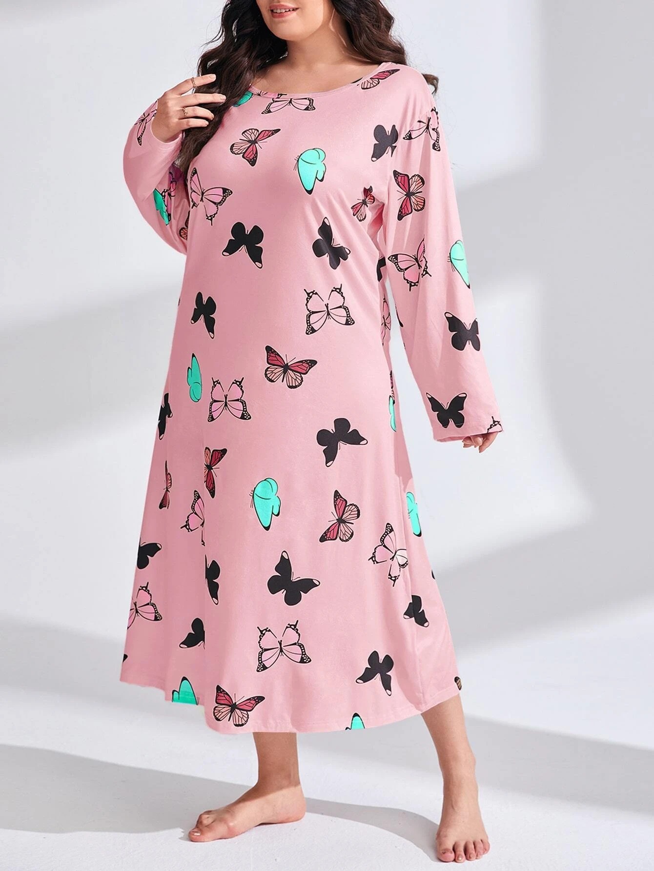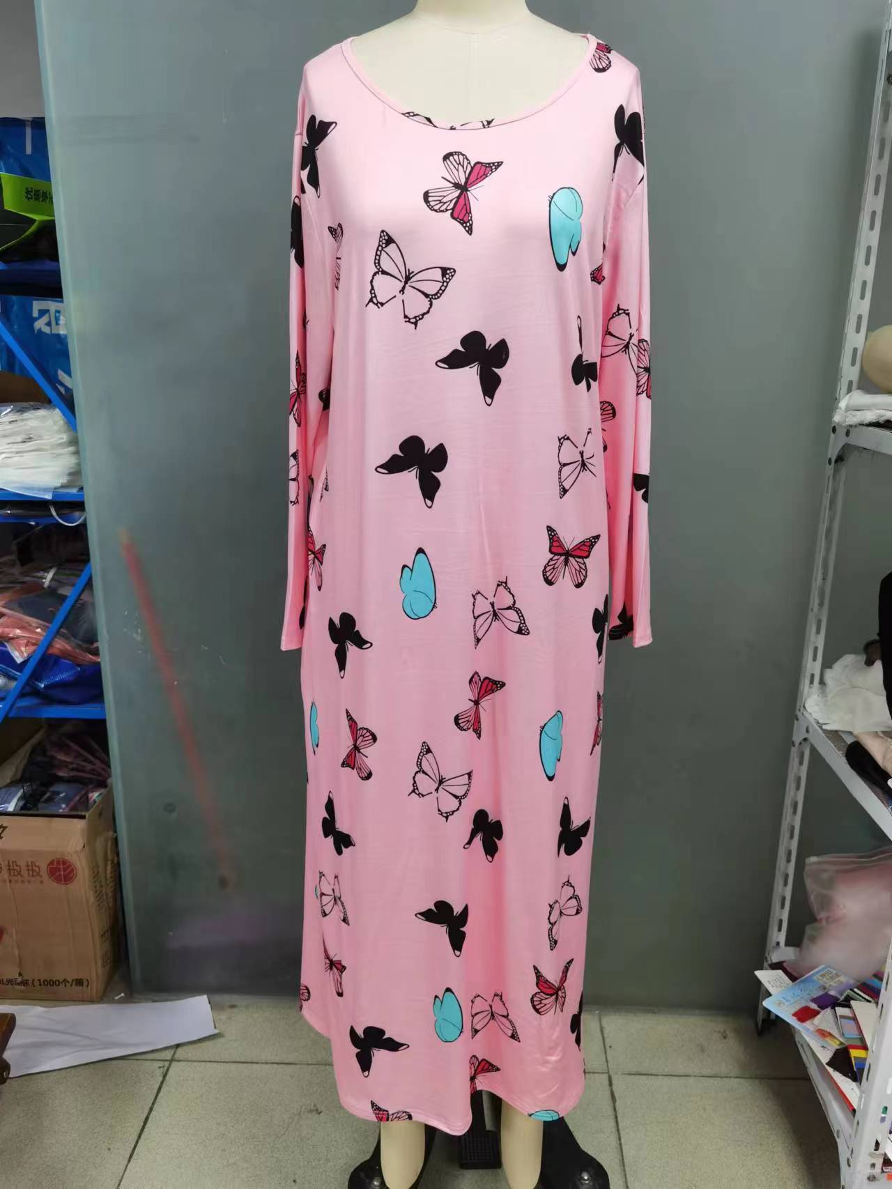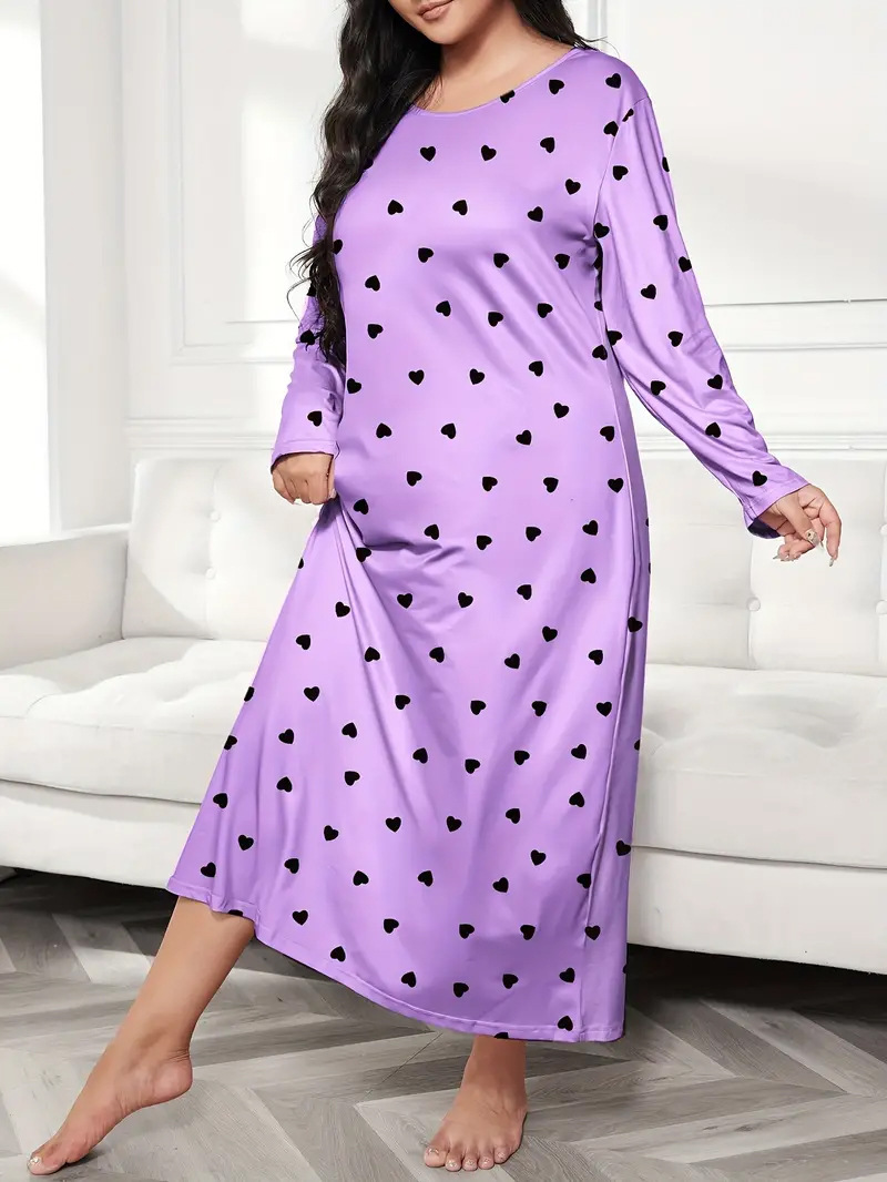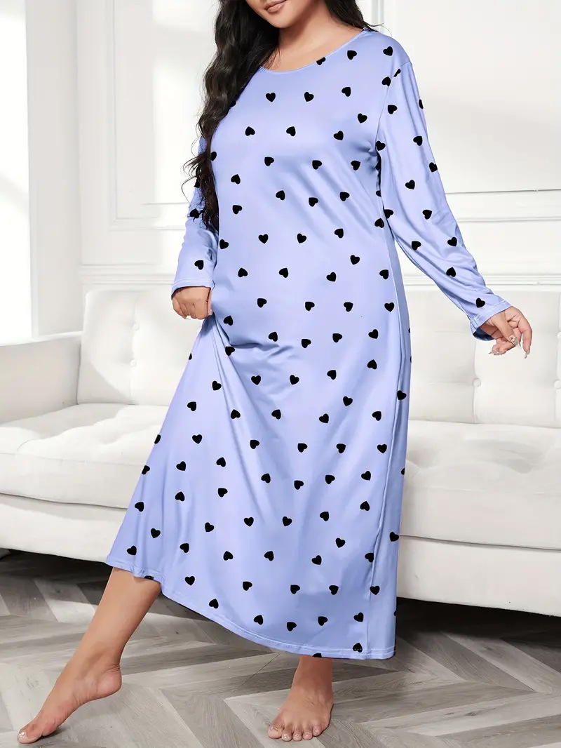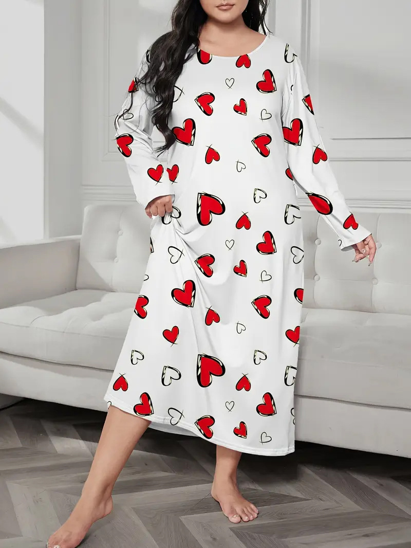 2025 Европейская и американская ночная сорочка с длинными рукавами, принтом бабочки, сердца и леопарда, с открытыми плечами, большого размера, для полных женщин