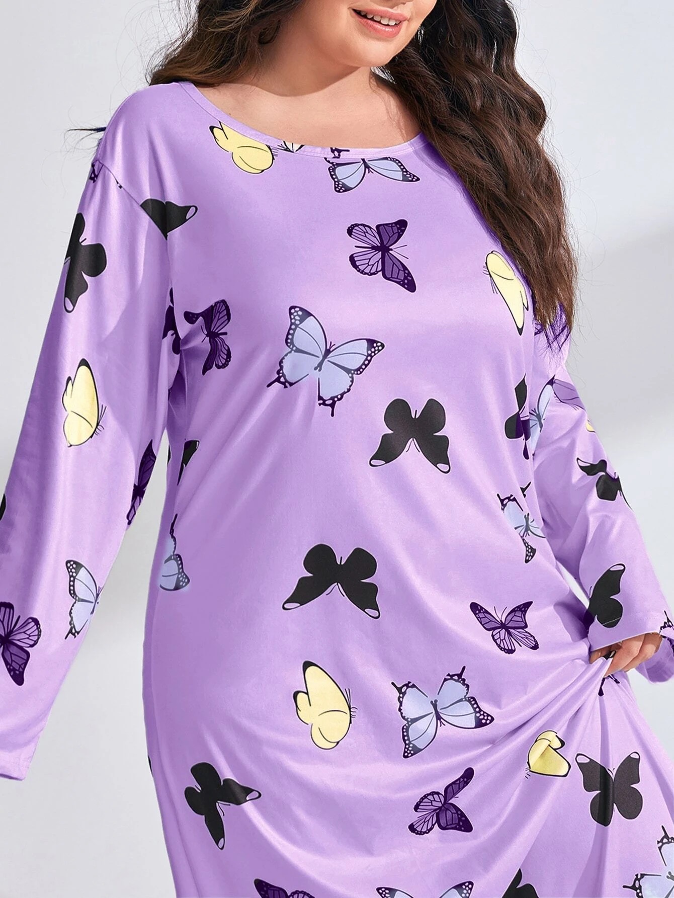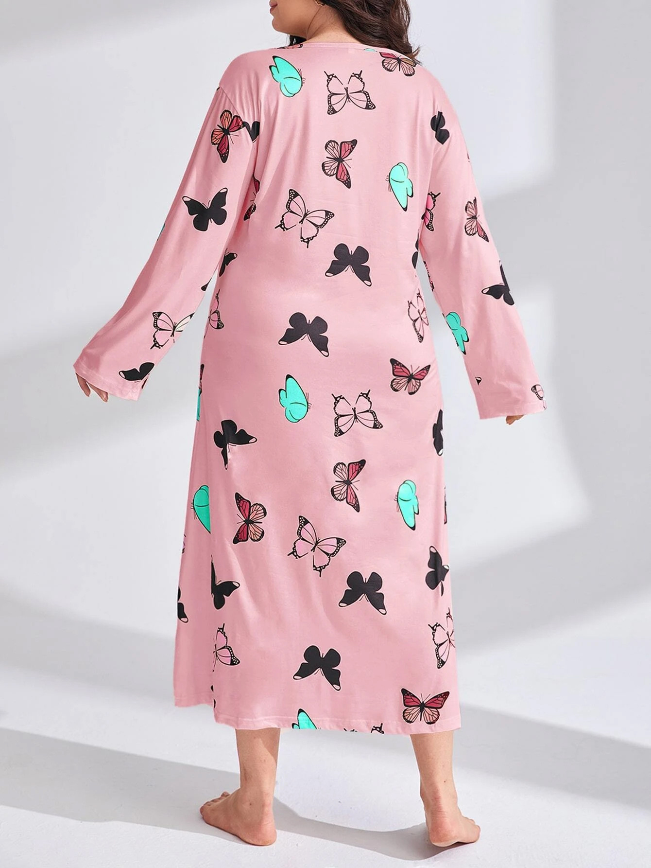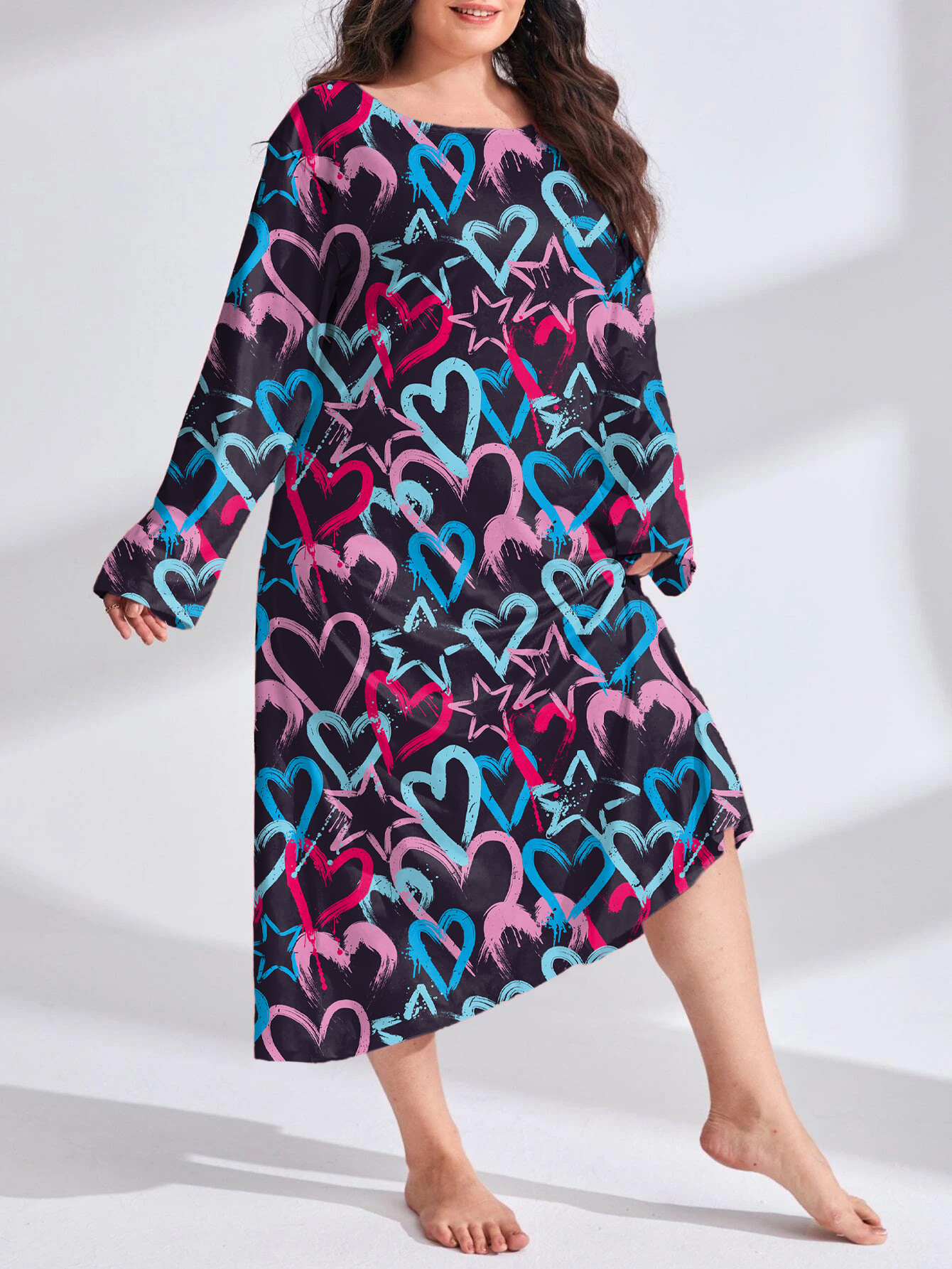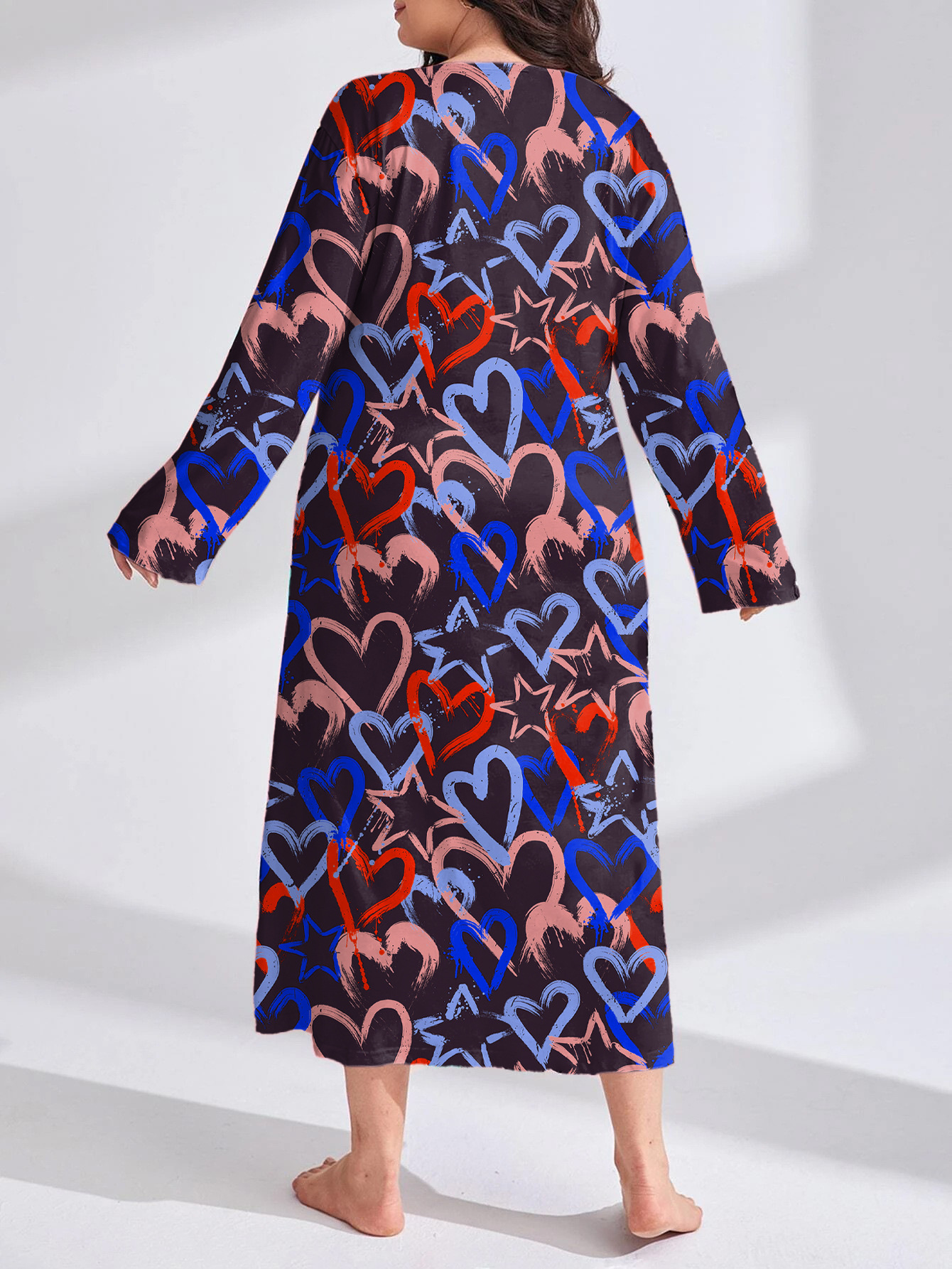2025 Европейская и американская ночная сорочка с длинными рукавами, принтом бабочки, сердца и леопарда, с открытыми плечами, большого размера, для полных женщин