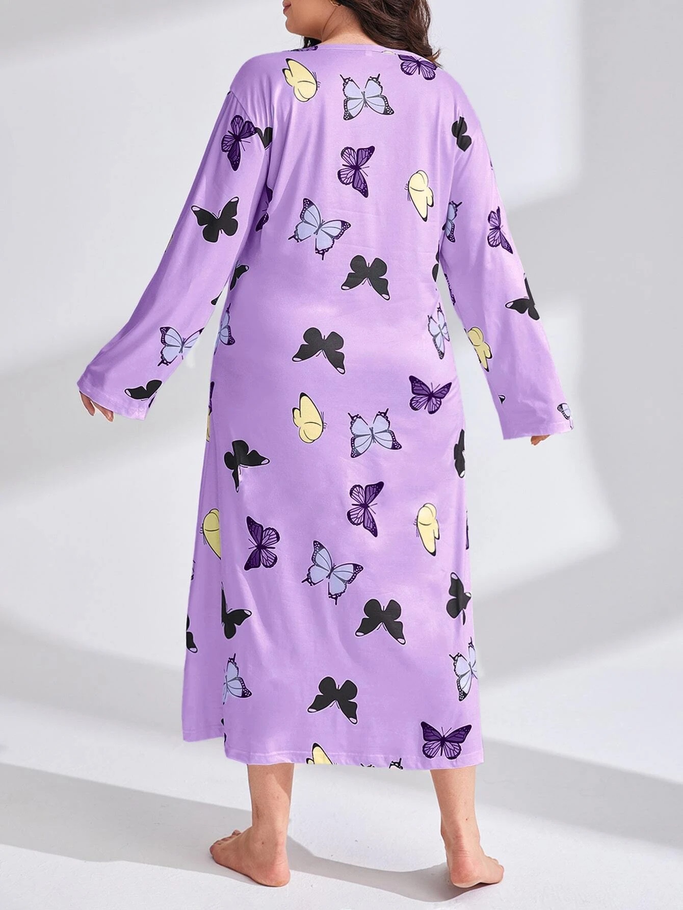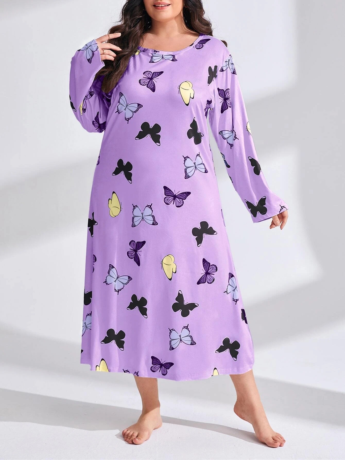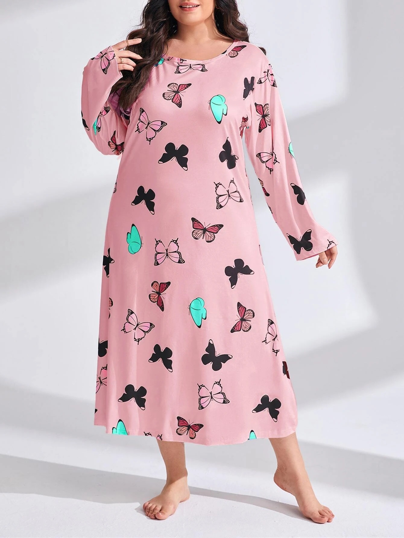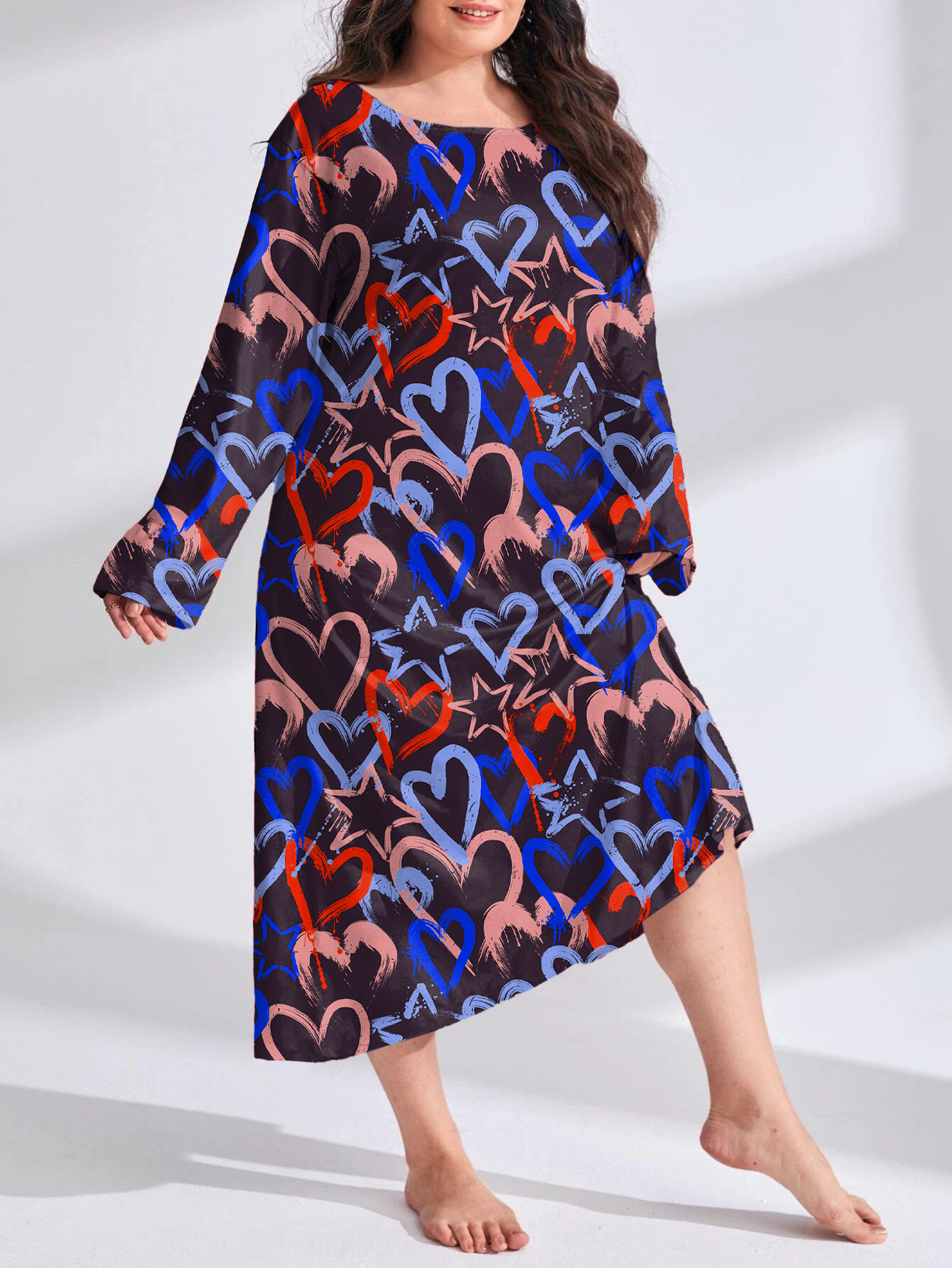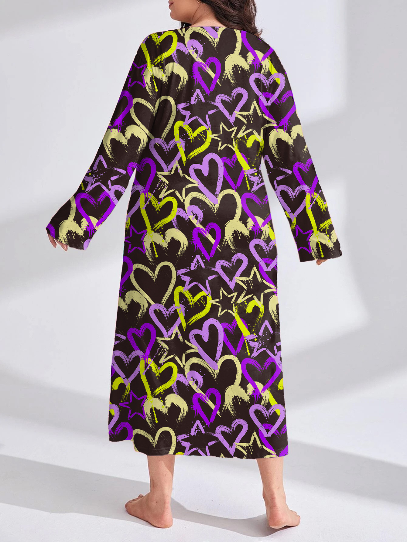 2025 Европейская и американская ночная сорочка с длинными рукавами, принтом бабочки, сердца и леопарда, с открытыми плечами, большого размера, для полных женщин