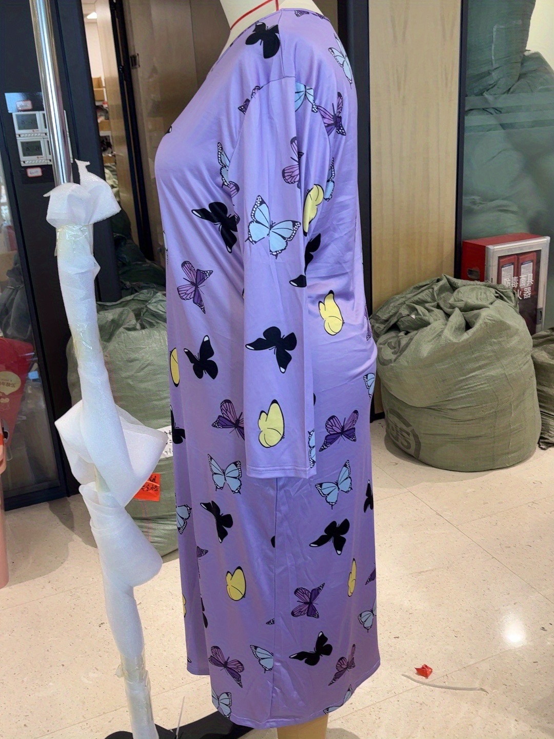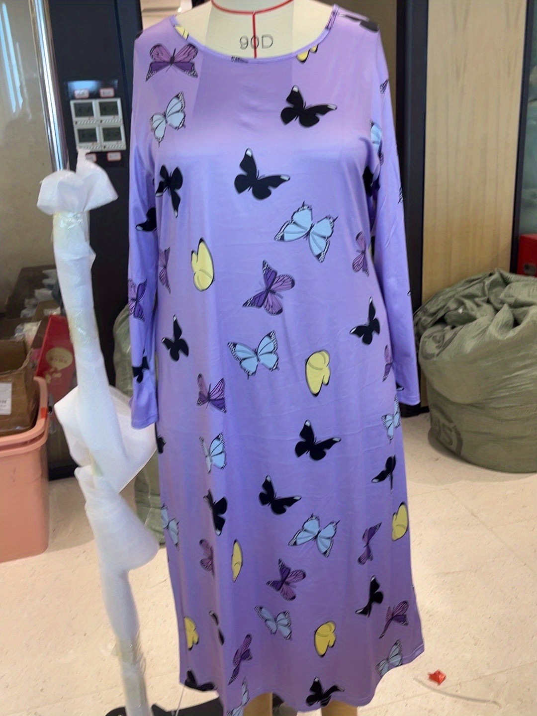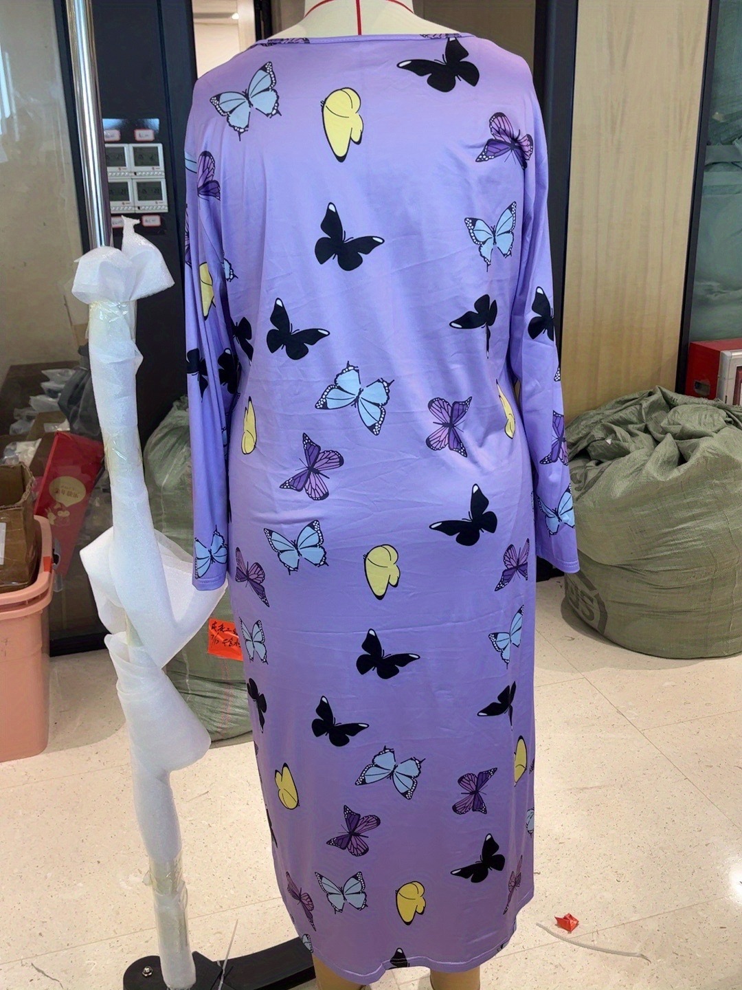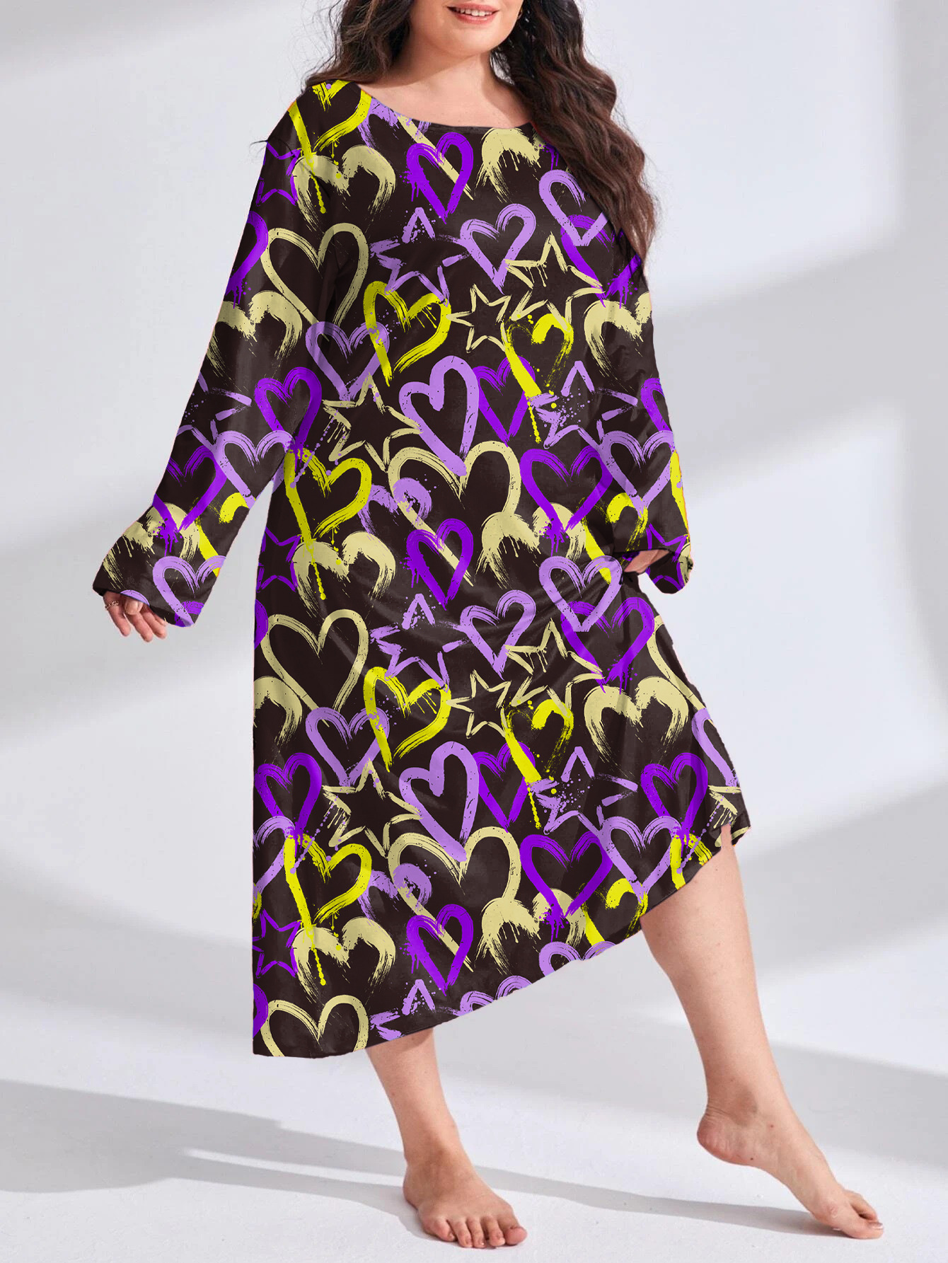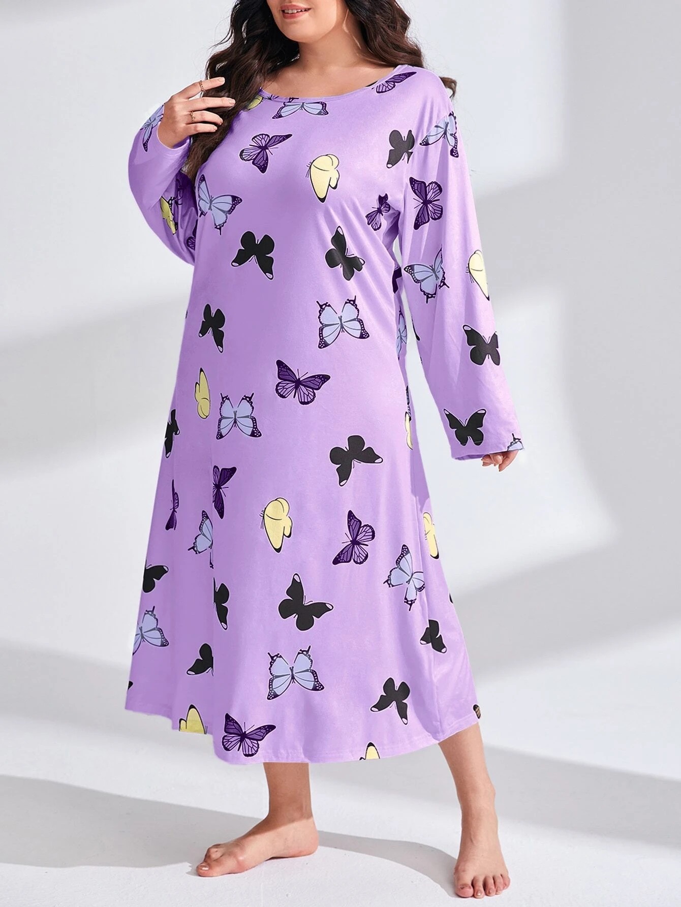 2025 Европейская и американская ночная сорочка с длинными рукавами, принтом бабочки, сердца и леопарда, с открытыми плечами, большого размера, для полных женщин