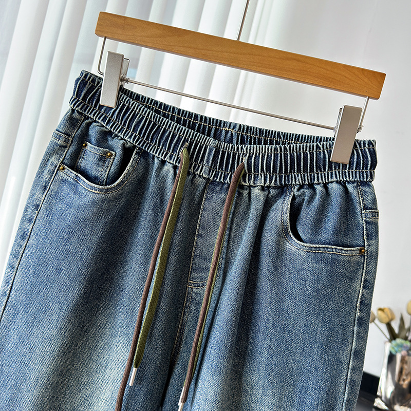 Осень специальный большой размер 300 фунтов свободные повседневные джинсы с высокой талией и широкими ножками