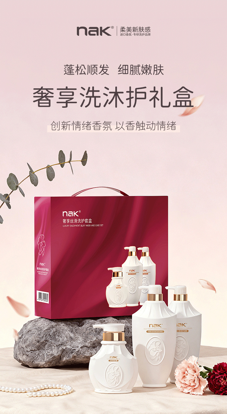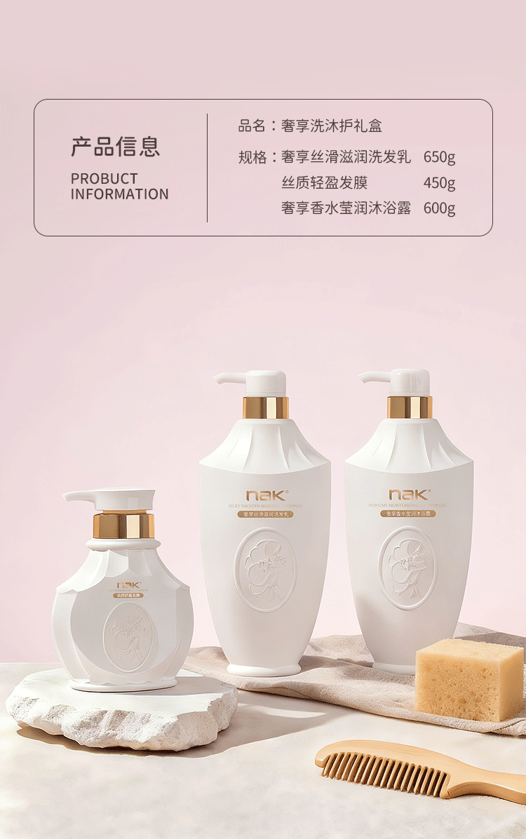 Подарочный набор NAK: гель для душа, шампунь, маска для волос, парфюм, стойкий аромат, набор для ухода в подарочной упаковке