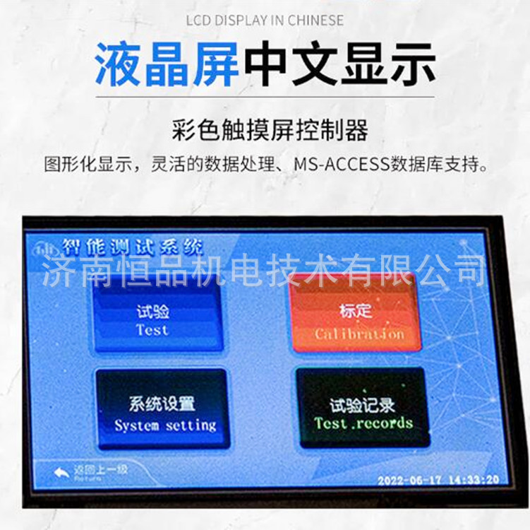 2、触摸键操作方式,液晶显示器实时显示。显示界面可显示试验方法选择界面、试验参数选择界面、试验操作及结果显示界面和曲线显示界面,方便快捷。