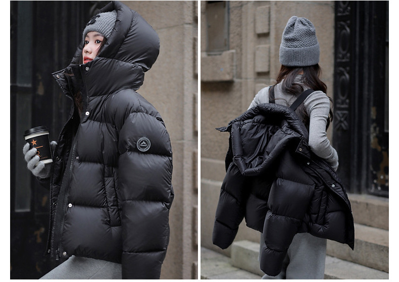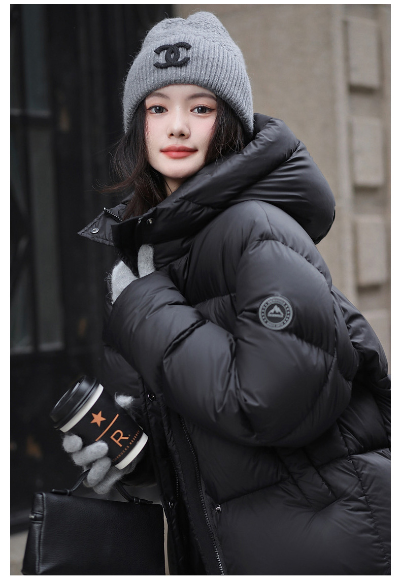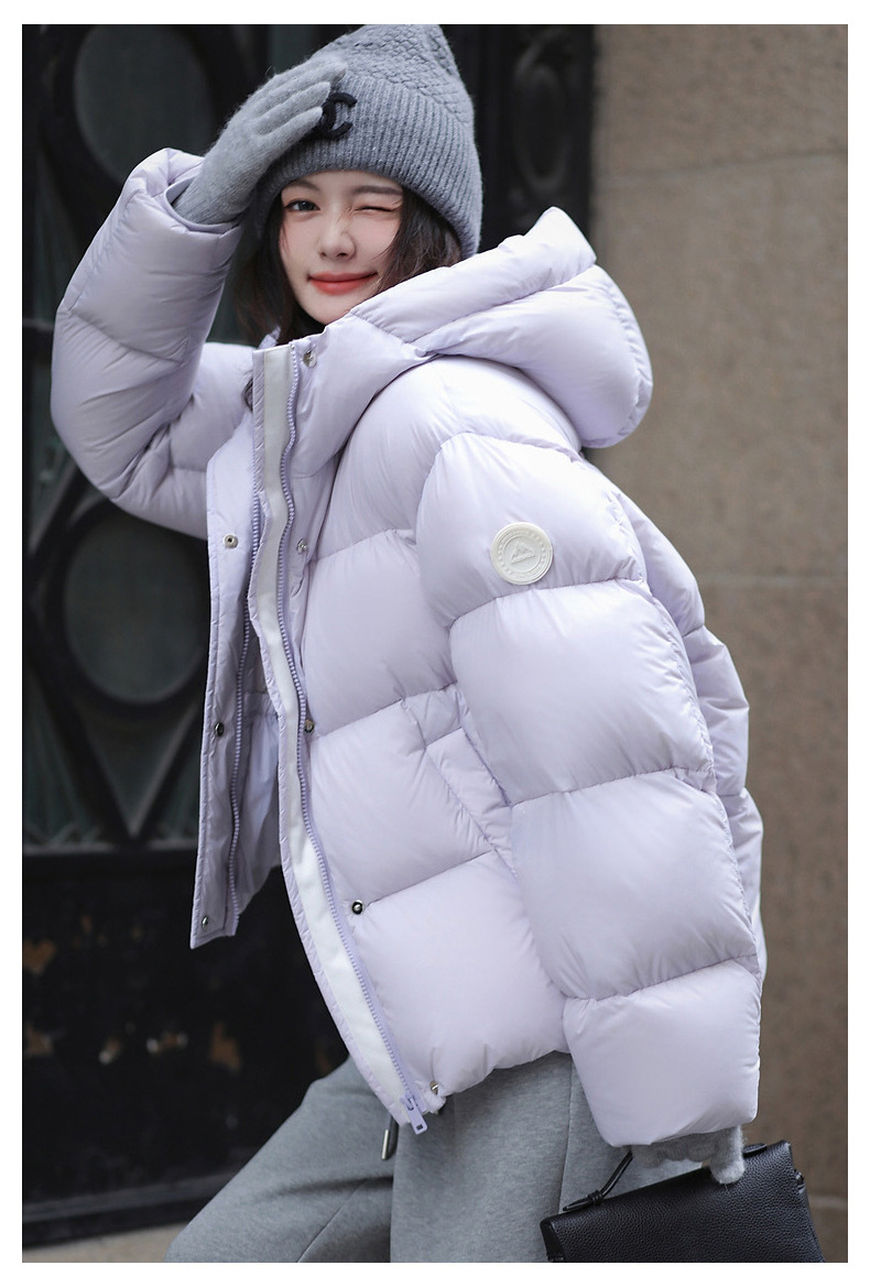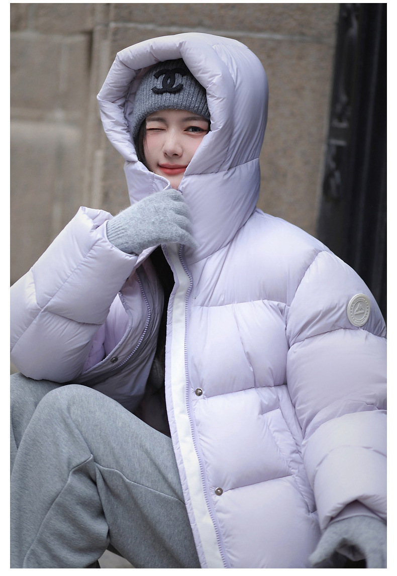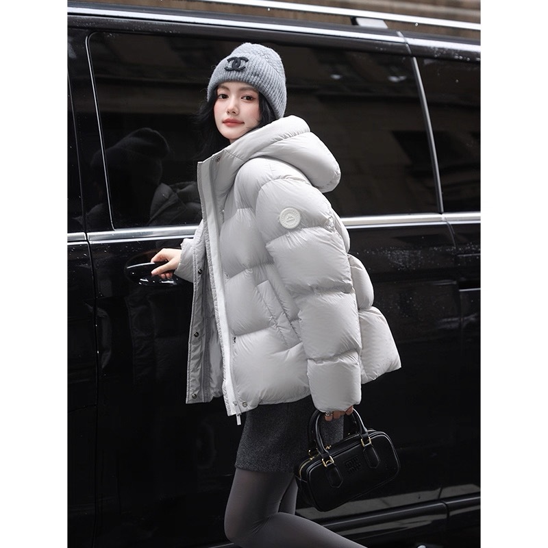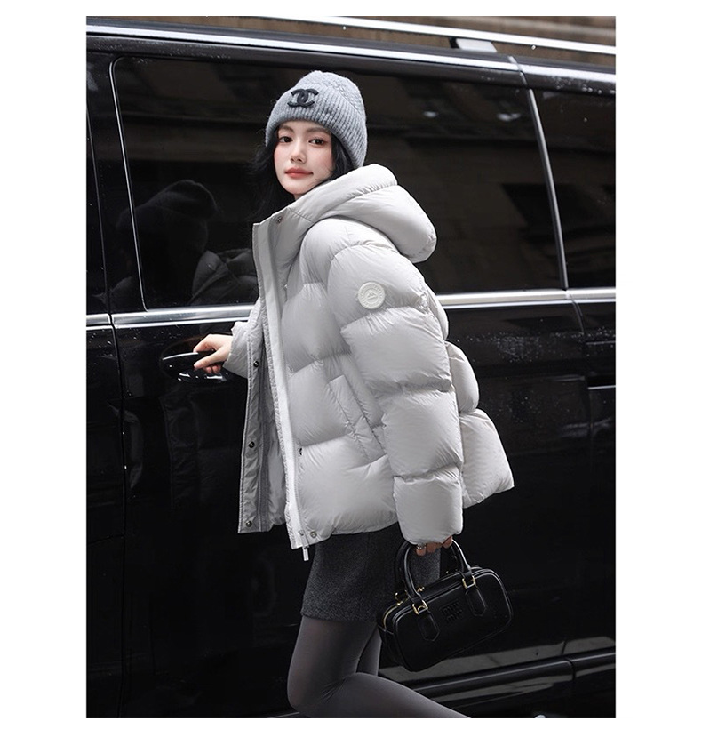 Женская пуховая куртка 2025 года, новая модная модель с нашивками на рукавах, с капюшоном, из белого утиного пуха, утепленная, длинная и укороченная, парная куртка-пуховик.