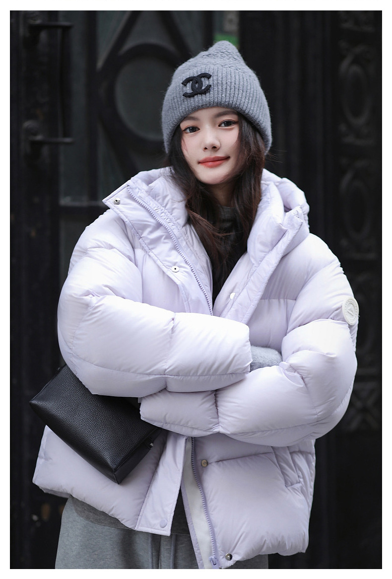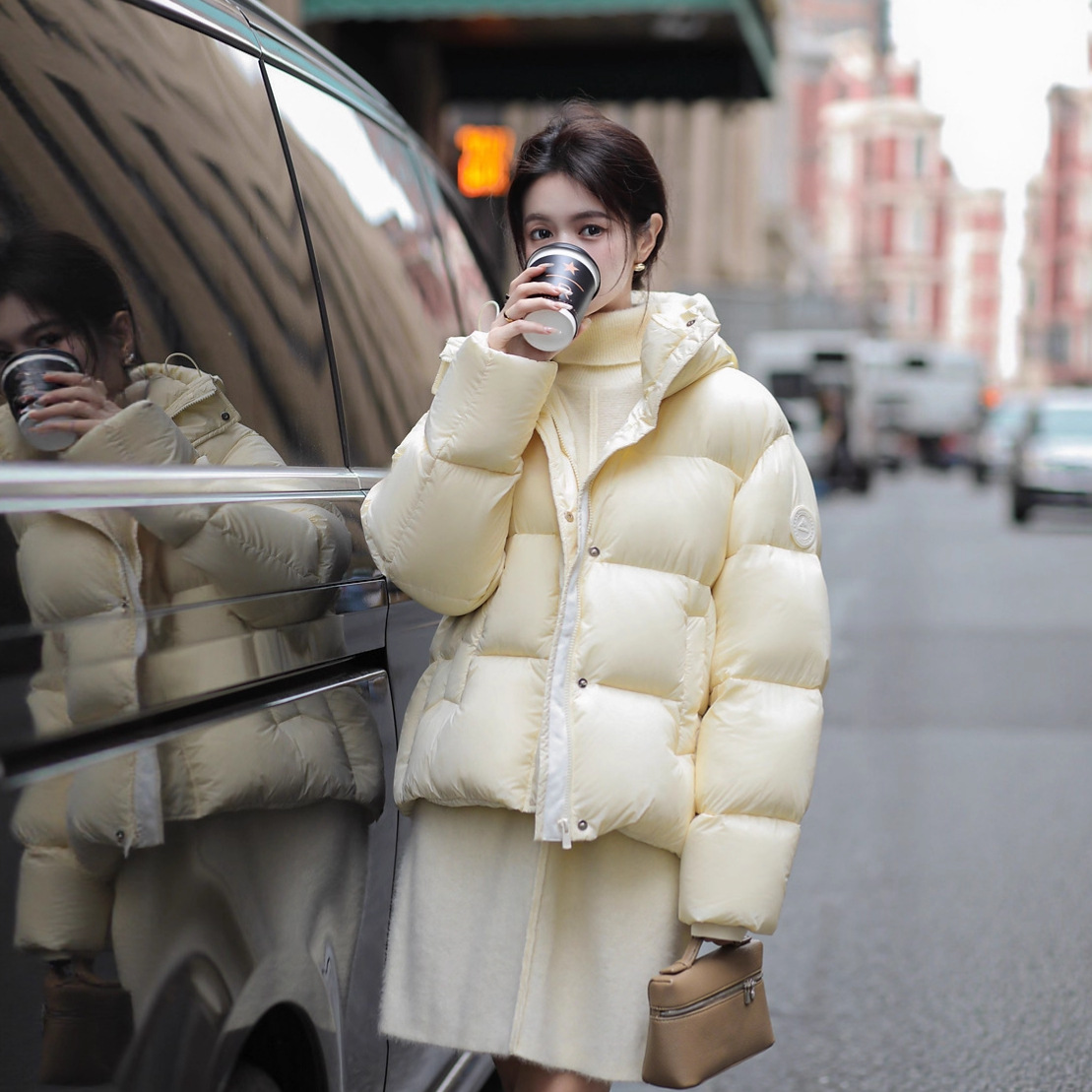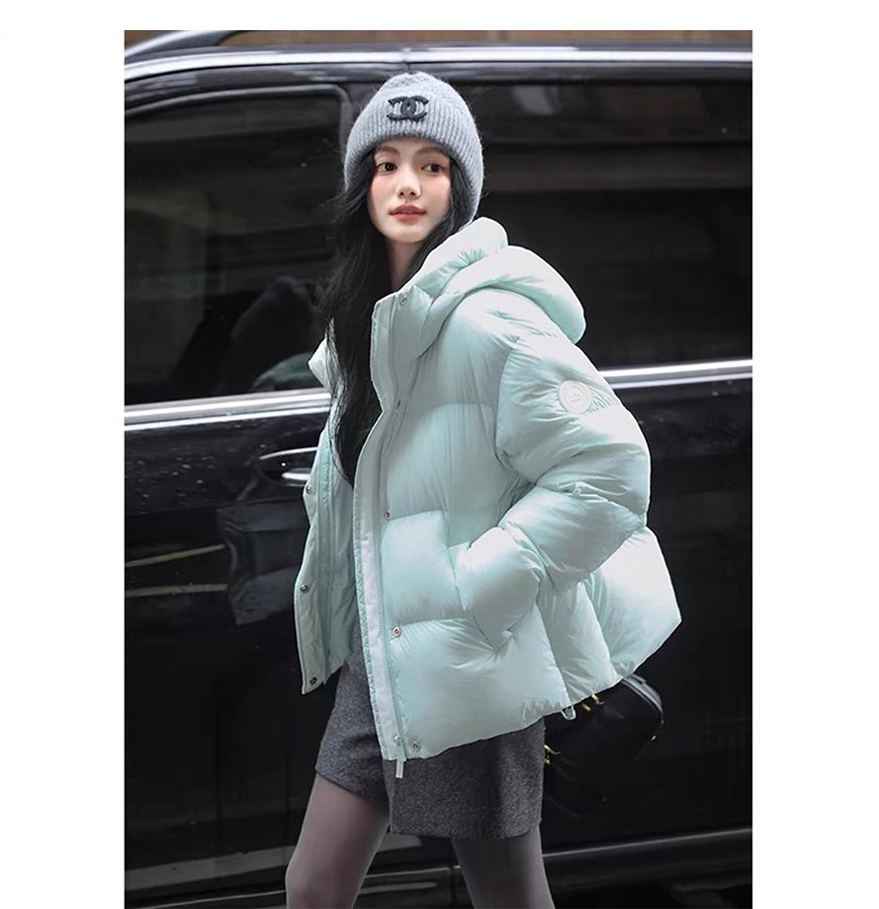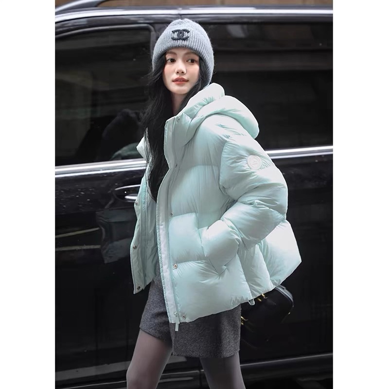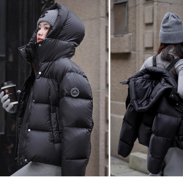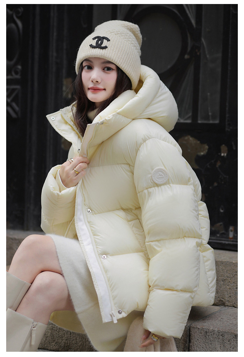 Женская пуховая куртка 2025 года, новая модная модель с нашивками на рукавах, с капюшоном, из белого утиного пуха, утепленная, длинная и укороченная, парная куртка-пуховик.