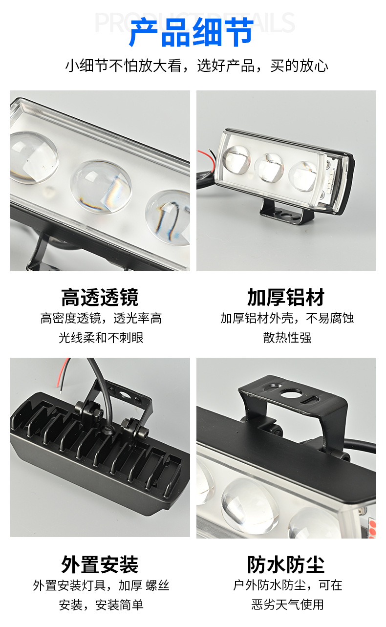 Трансграничные светодиодные мотоциклы короткие, три стороны, три бусинные прожектора